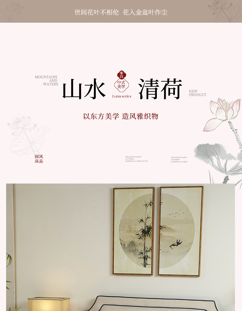 50S50支长绒棉刺绣四件套专版花型独家特供直播爆款 山水清荷米白