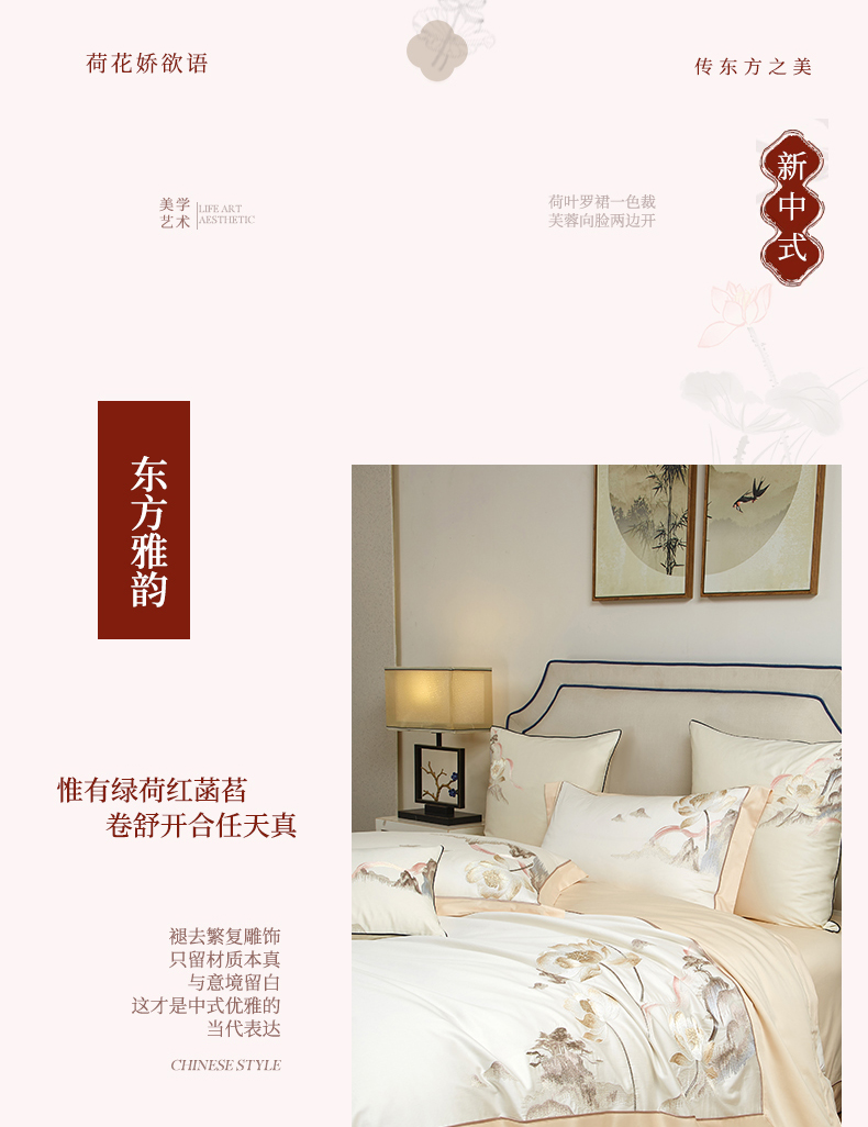 (总)50支50S长绒棉刺绣四件套新中式工艺款,荷塘月色粉 控价478-498元,荷塘月色玉 控价478-498元,翩翩起舞 控价478-498元,温馨满园粉玉 控价478-498元,温馨满园芋紫 控价478-498元,玉露清华 控价478-498元