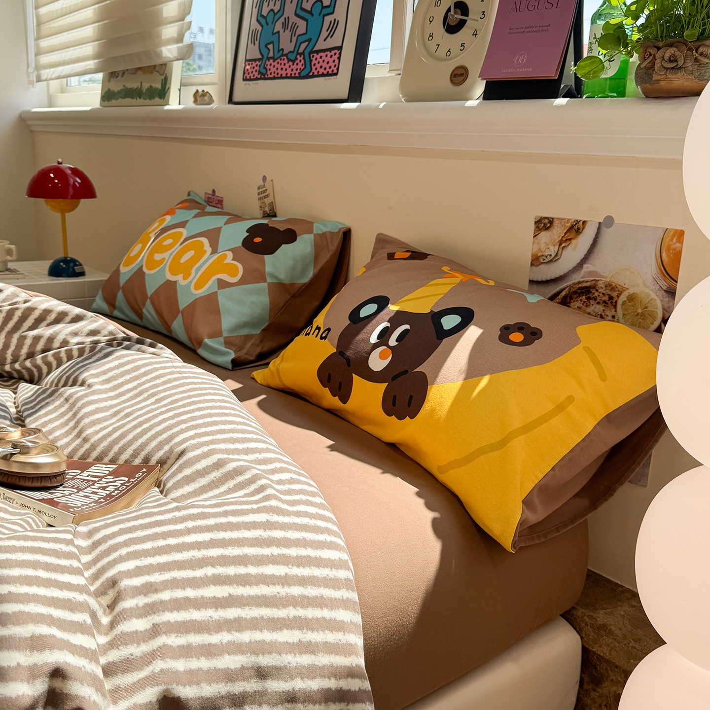 珺柔家纺 2025新款数码印花枕套全棉磨毛毛巾绣卡通四件套 樱桃小熊