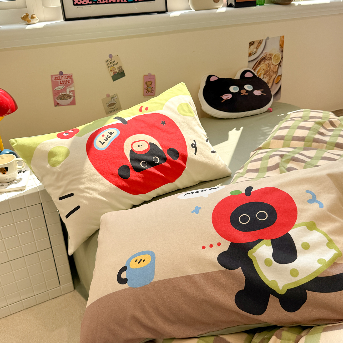 商品名称:珺柔家纺 2025新款数码印花枕套全棉磨毛毛巾绣卡通四件套 樱桃小熊
