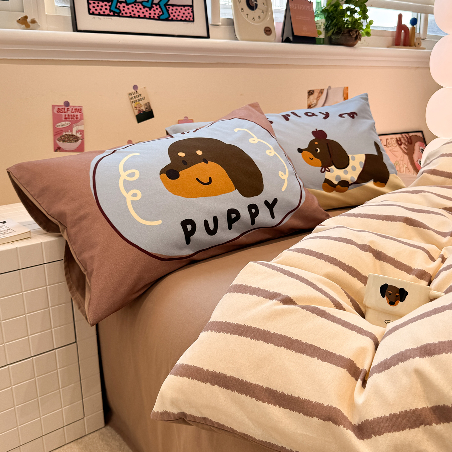 (总)珺柔家纺 2025新款全棉双层纱印花四件套,粉豹纹,焦糖小曲奇,礼物女孩,猫狗日记,奶油星空,线条苹果猫,小飞象,小狗的家,樱桃,樱桃西高地