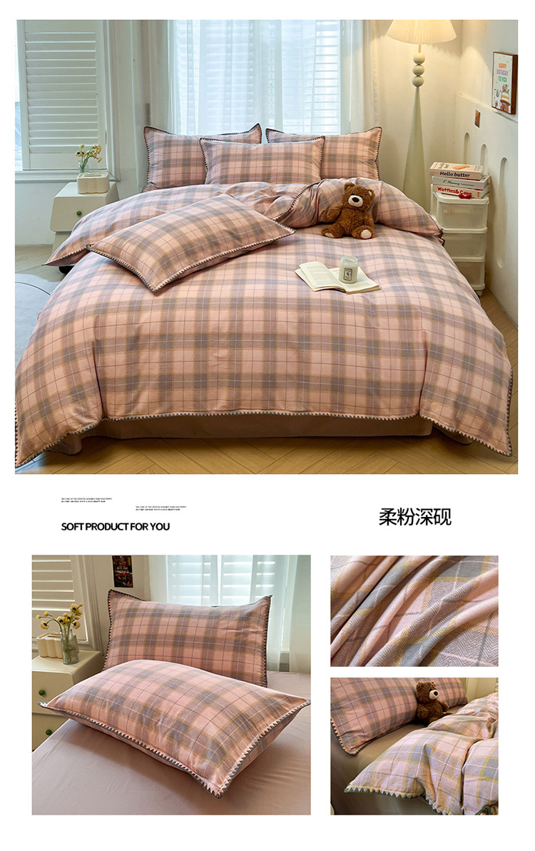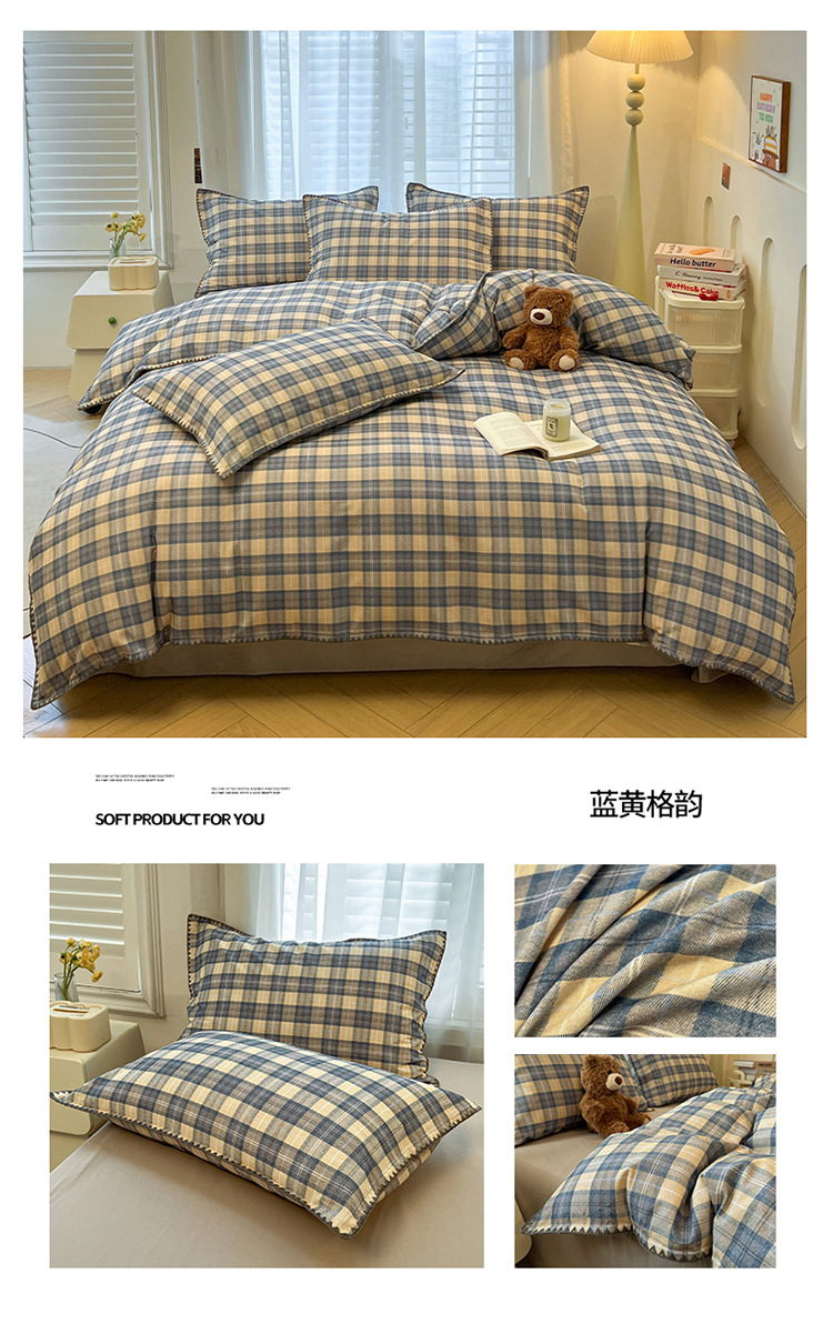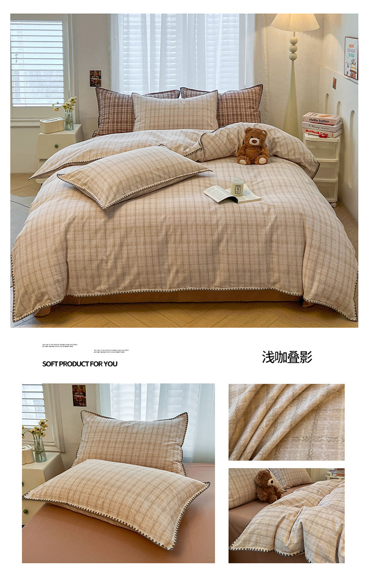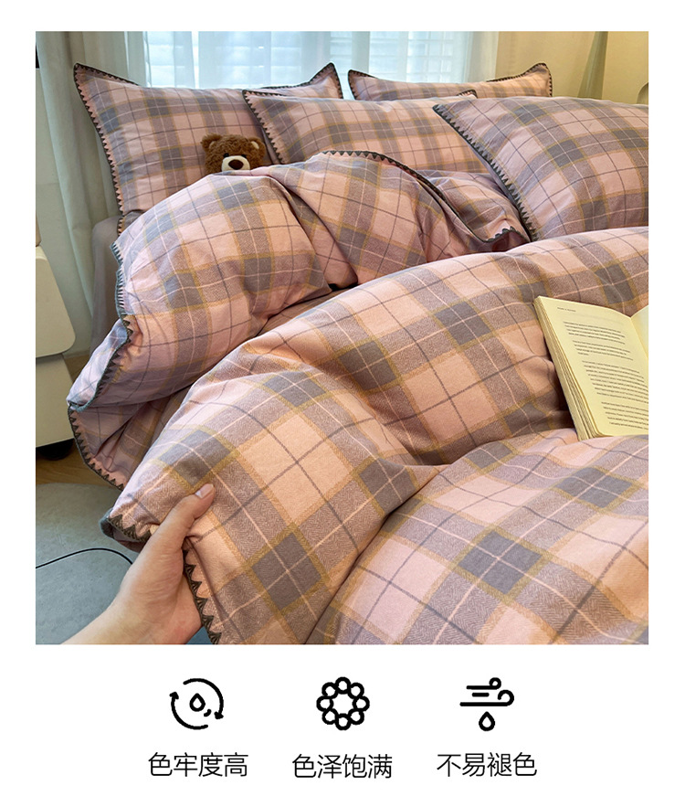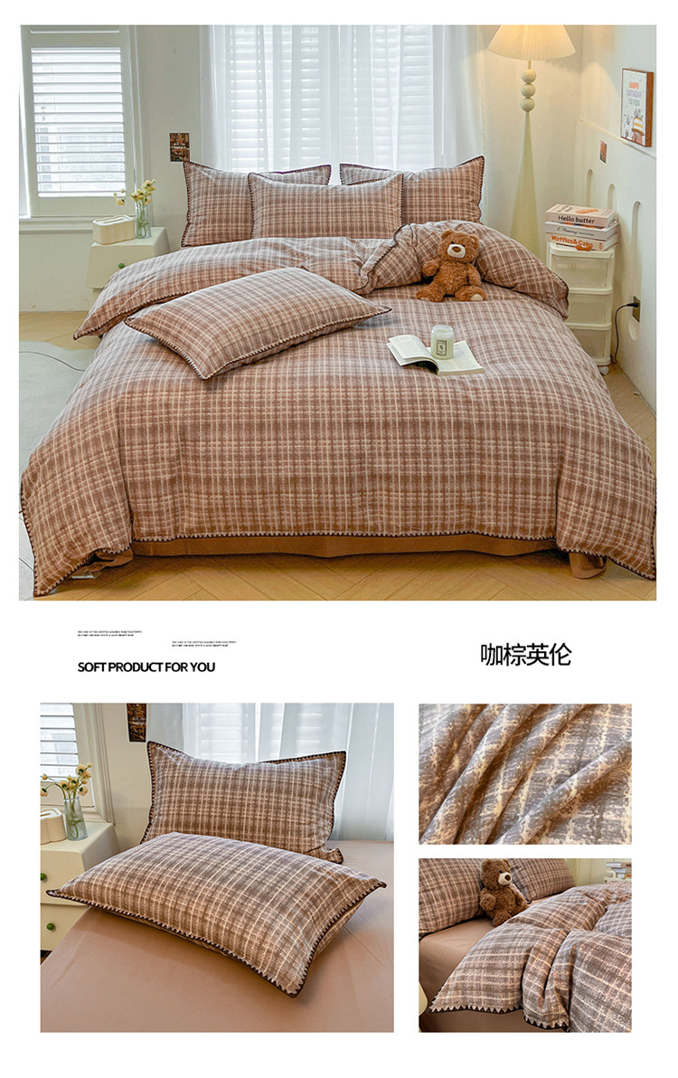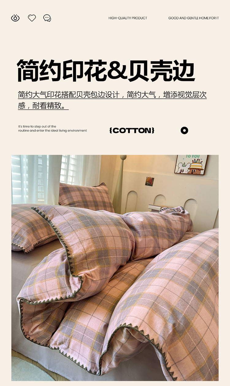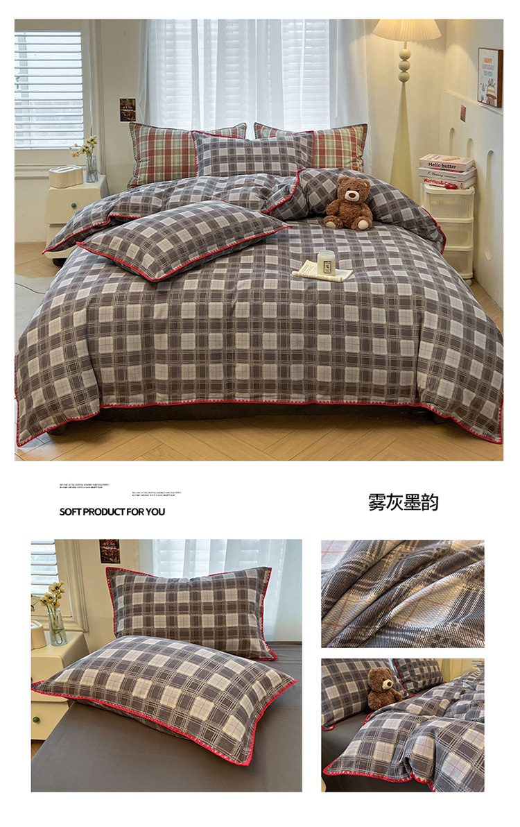 商品名称:(总)良品汇馆 2025【全棉磨毛四件套格纹】英伦格纹复古风贝壳边套件