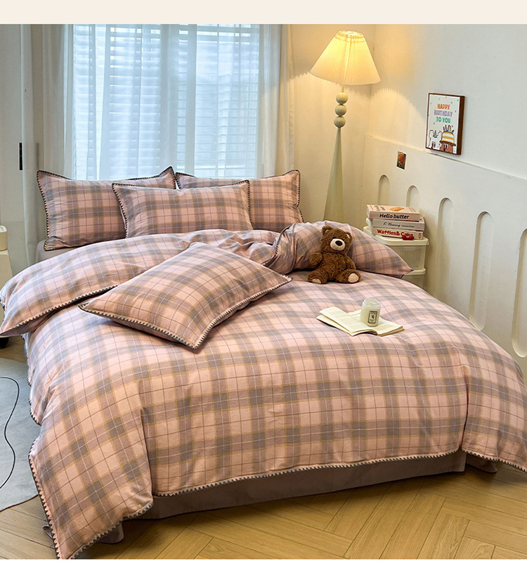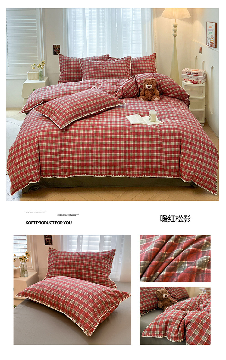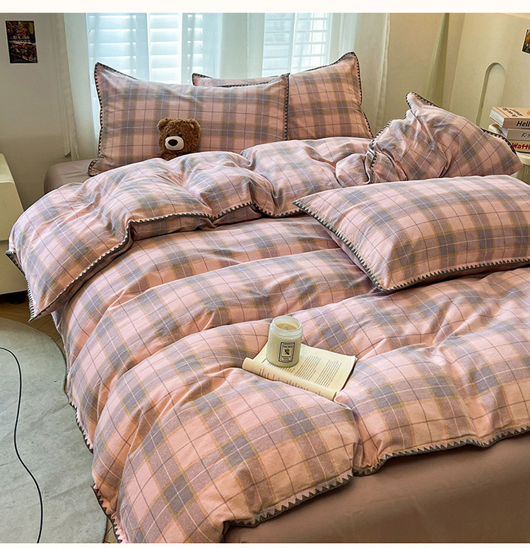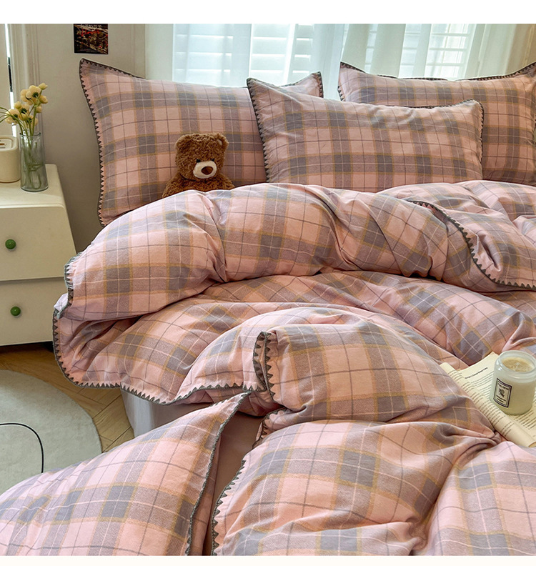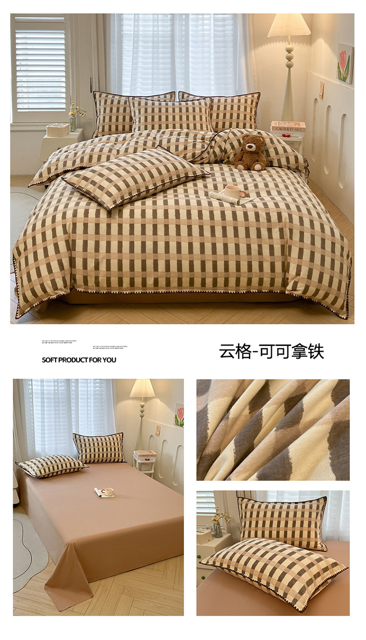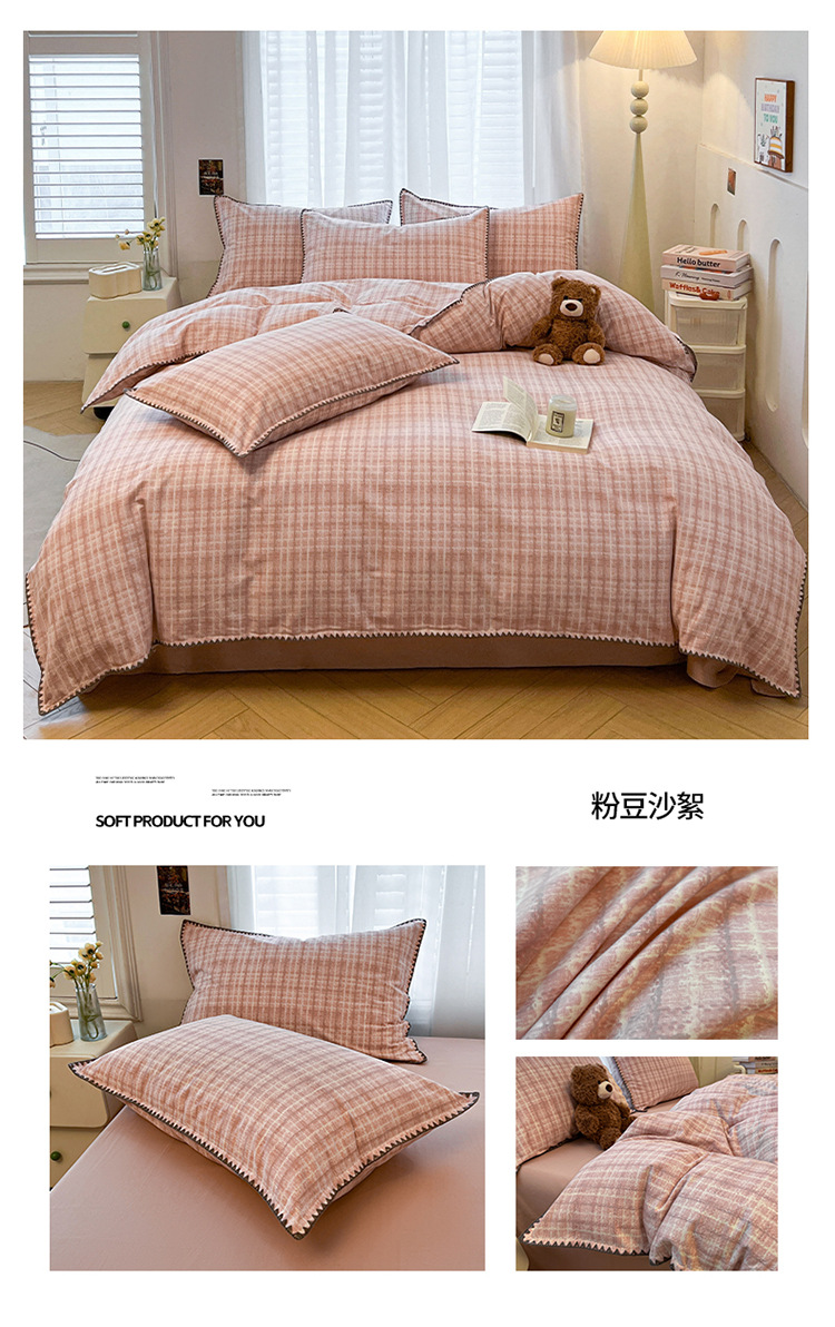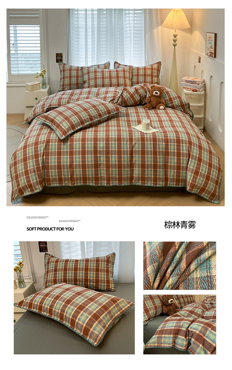 商品名称:(总)良品汇馆 2025【全棉磨毛四件套格纹】英伦格纹复古风贝壳边套件