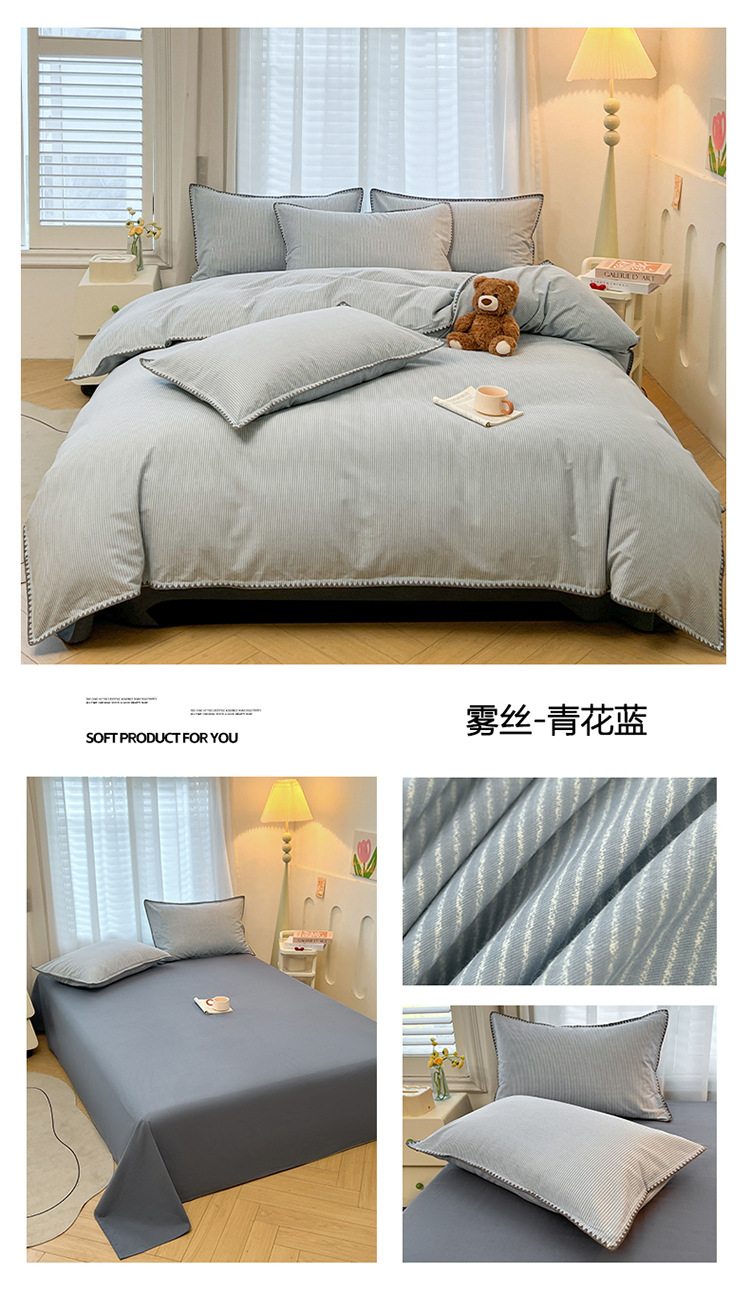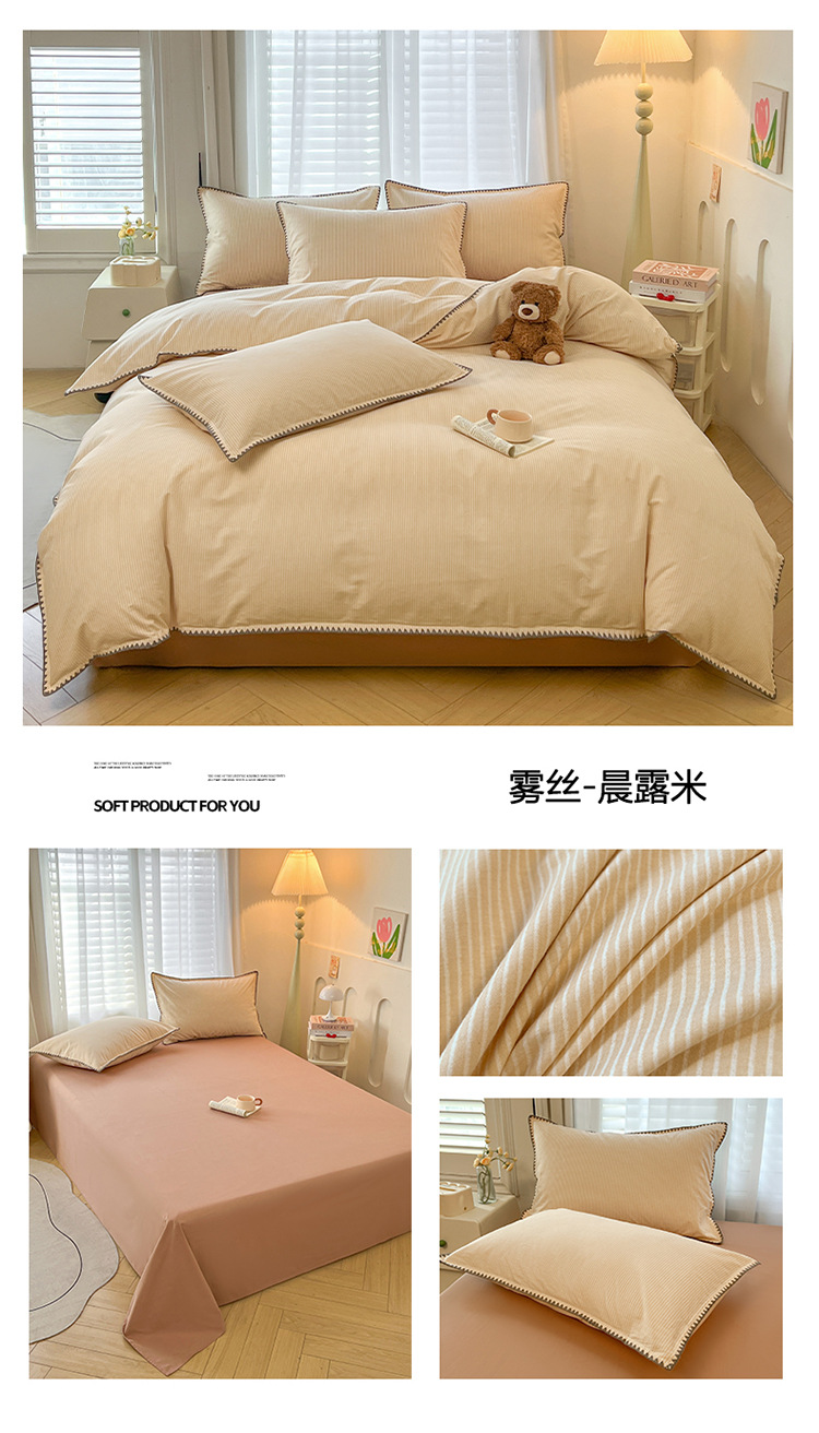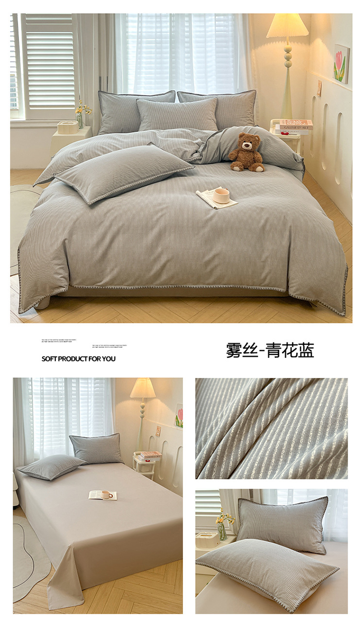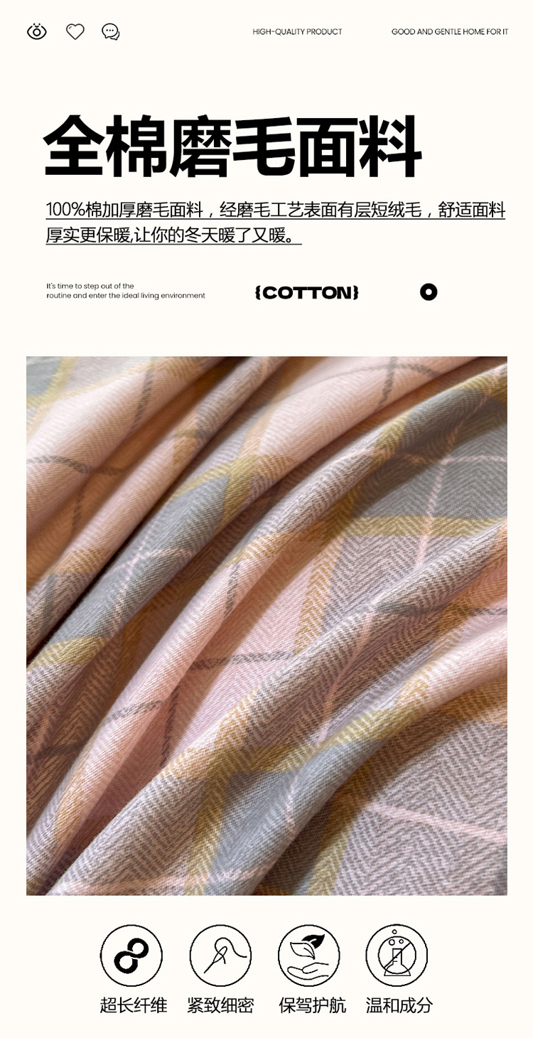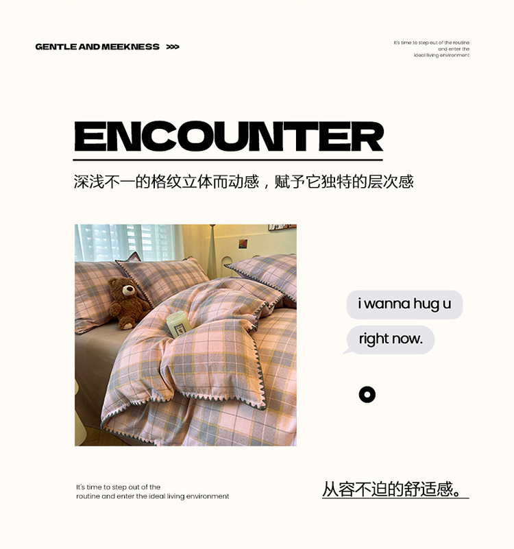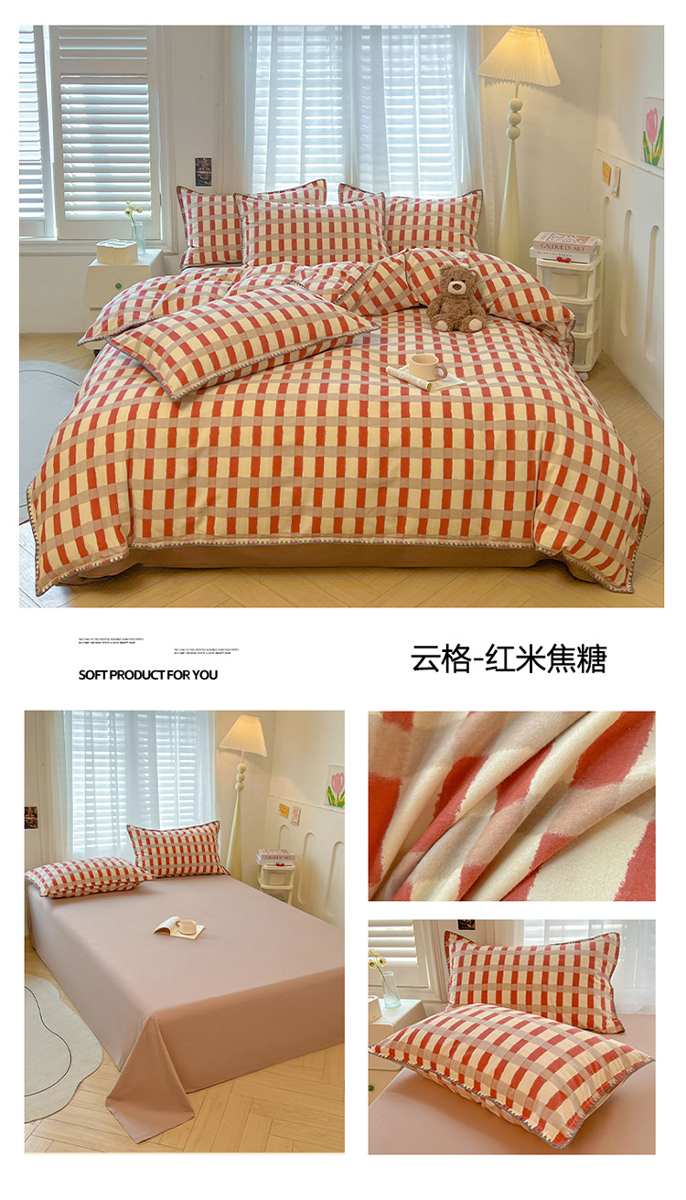 商品名称:(总)良品汇馆 2025【全棉磨毛四件套格纹】英伦格纹复古风贝壳边套件