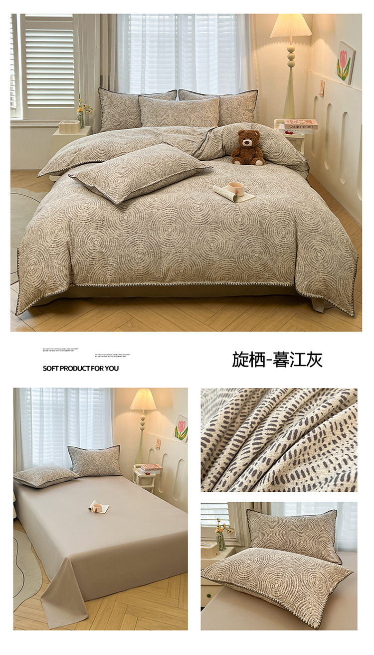 (总)良品汇馆 2025【全棉磨毛四件套格纹】英伦格纹复古风贝壳边套件