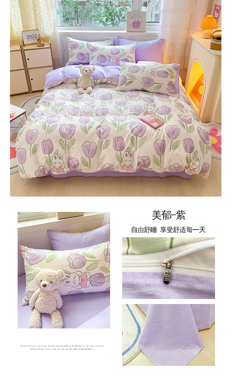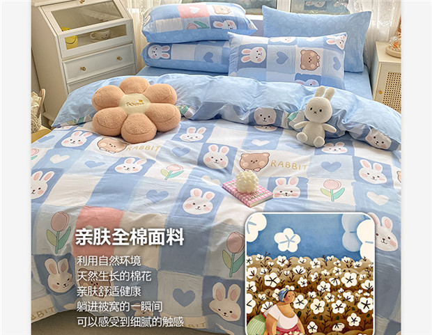 当前位置: 91家纺网 > 商品网购 > 床品套件 > 四件套 > 全棉普通四件套 > 琪格格纺织 2025新款全棉纯棉13372小清新四件套 白兔与熊