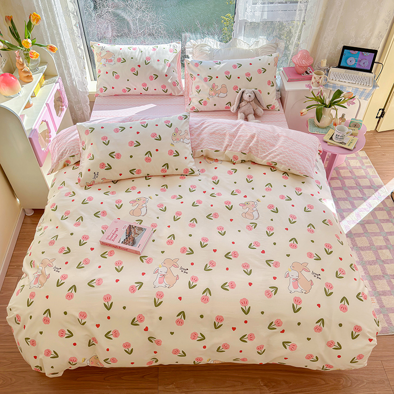(总)琪格格纺织 2025新款全棉纯棉13372小清新四件套,爱心兔,白兔与熊,彩霞,美郁-紫,萌心兔,皮皮兔,苏珊花园,微雨,小粉兔,熊猫