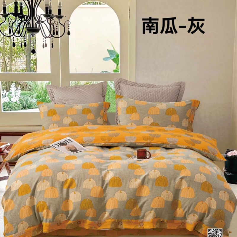 商品名称:鲁爱 2025新款全棉色织双层纱纽扣款四件套 南瓜-灰