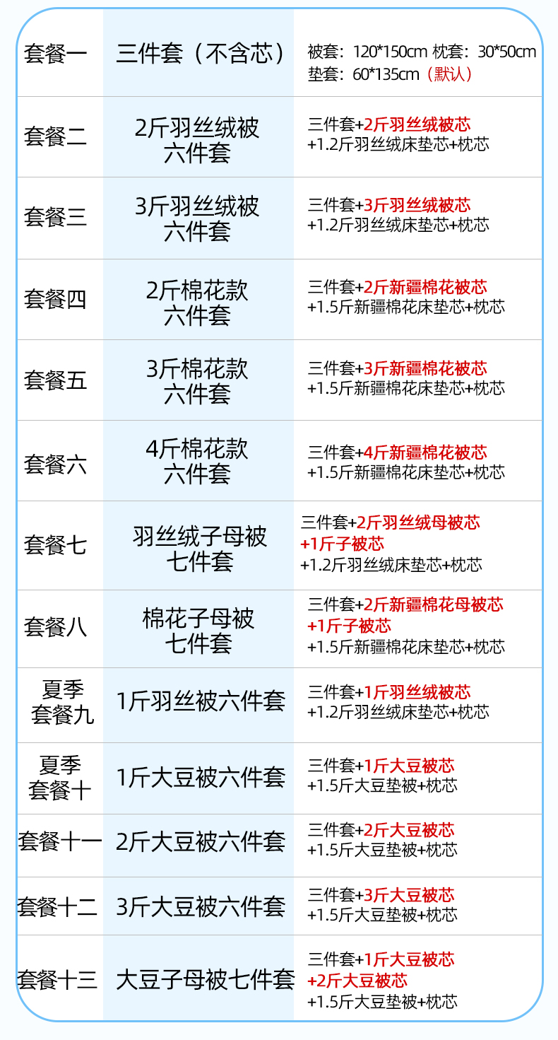 3斤棉花六件套 | ¥135.00 |