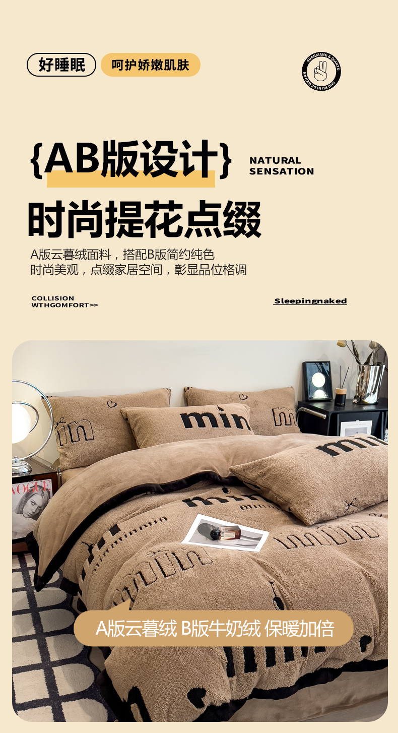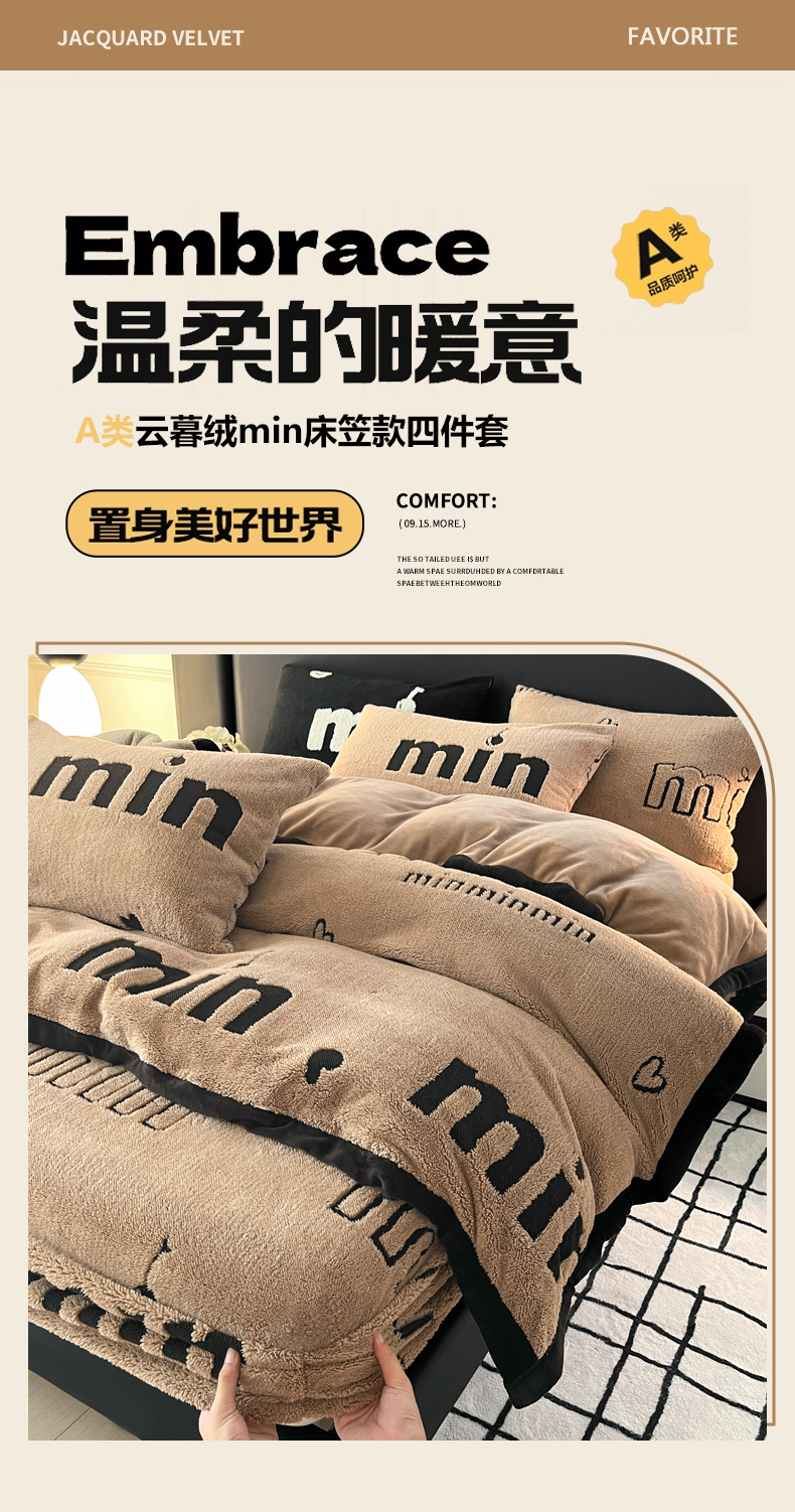 当前位置: 91家纺网 > 商品网购 > 床品套件 > 四件套 > 其它四件套 > 慕木家纺 2025新款A类高克重云暮绒床笠款四件套(跨境专供首选)提供买家秀 云暮绒min床笠四件套-摩卡咖