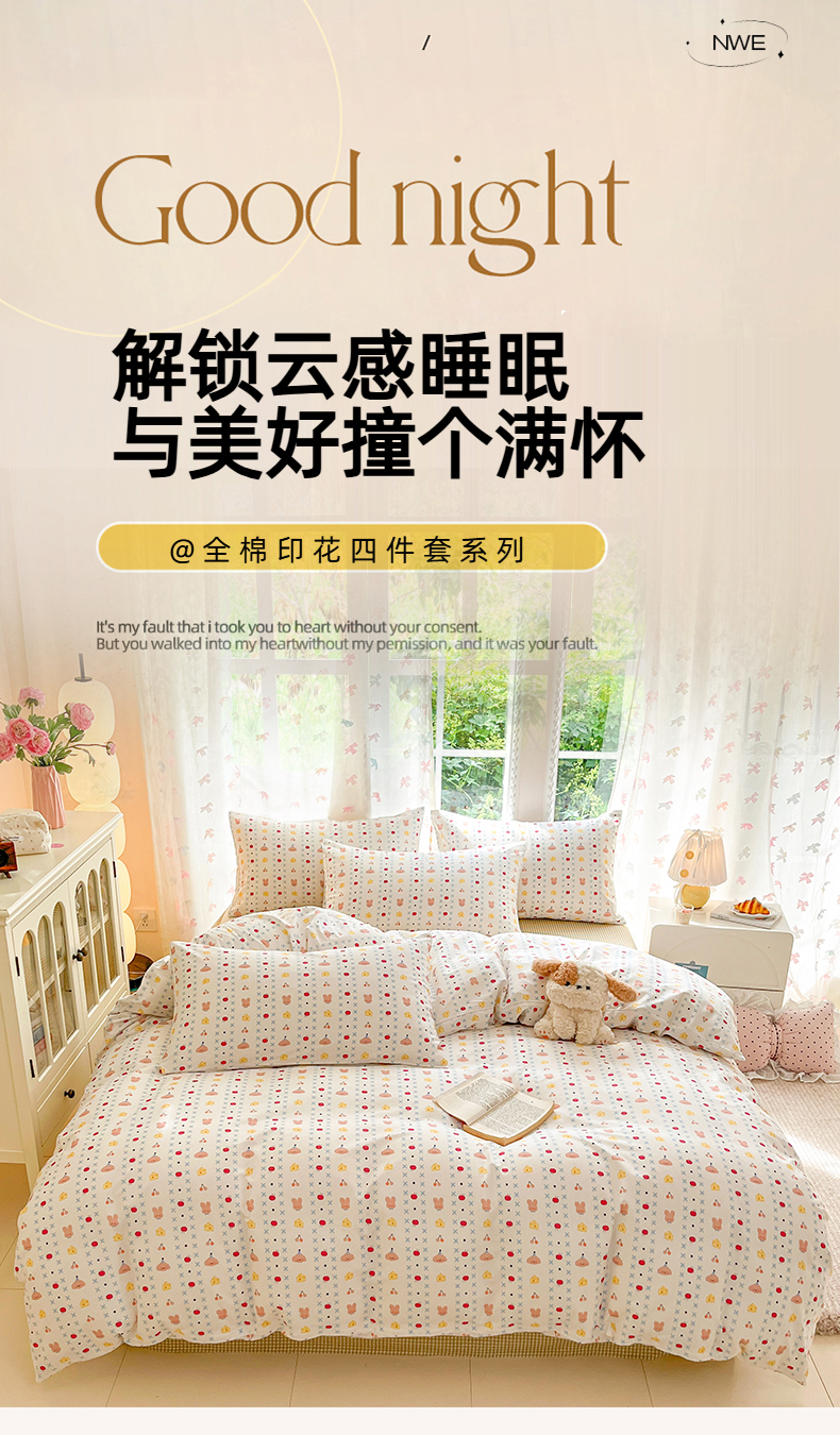 当前位置: 91家纺网 > 商品网购 > 床品套件 > 四件套 > 全棉普通四件套 > 柠馨 2025新款全棉印花四件套安凡妮系列 墨影
