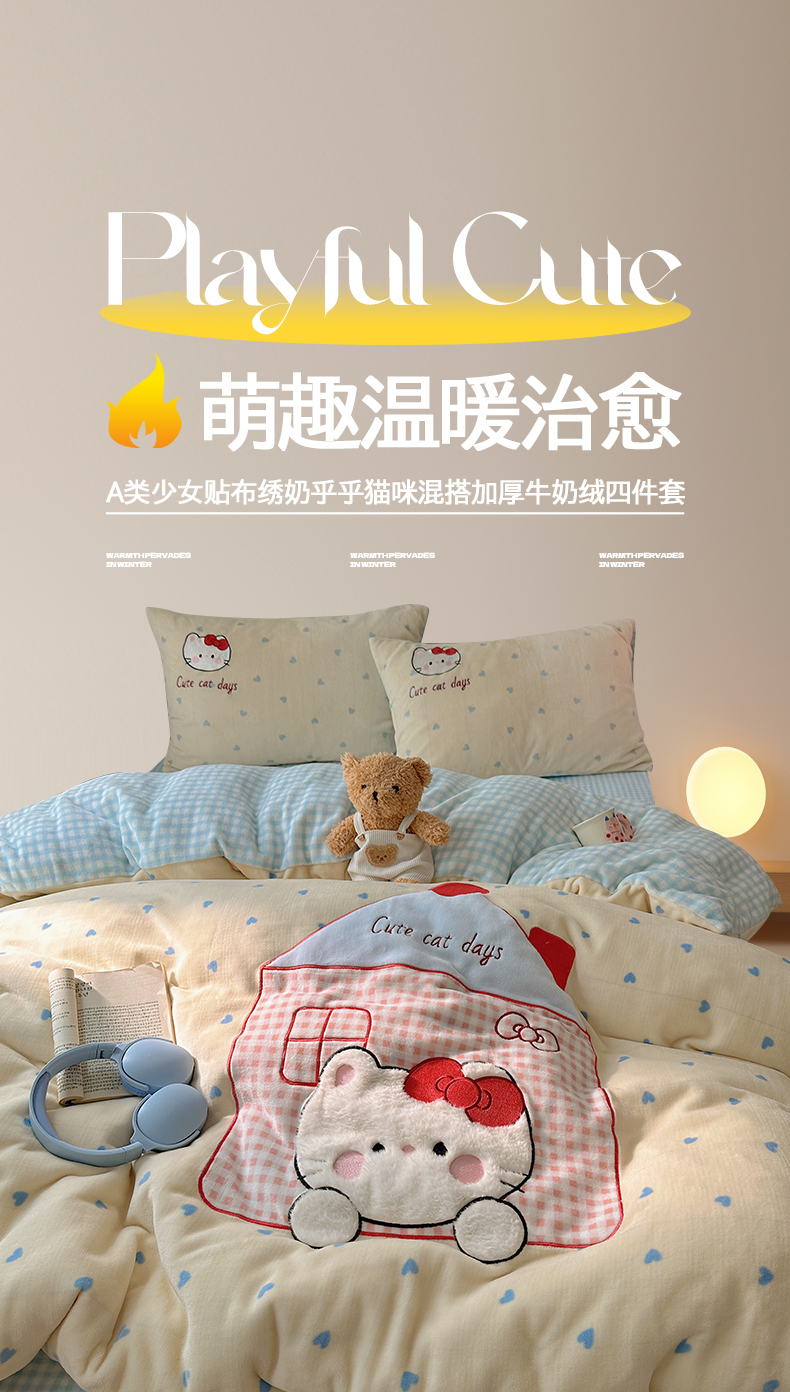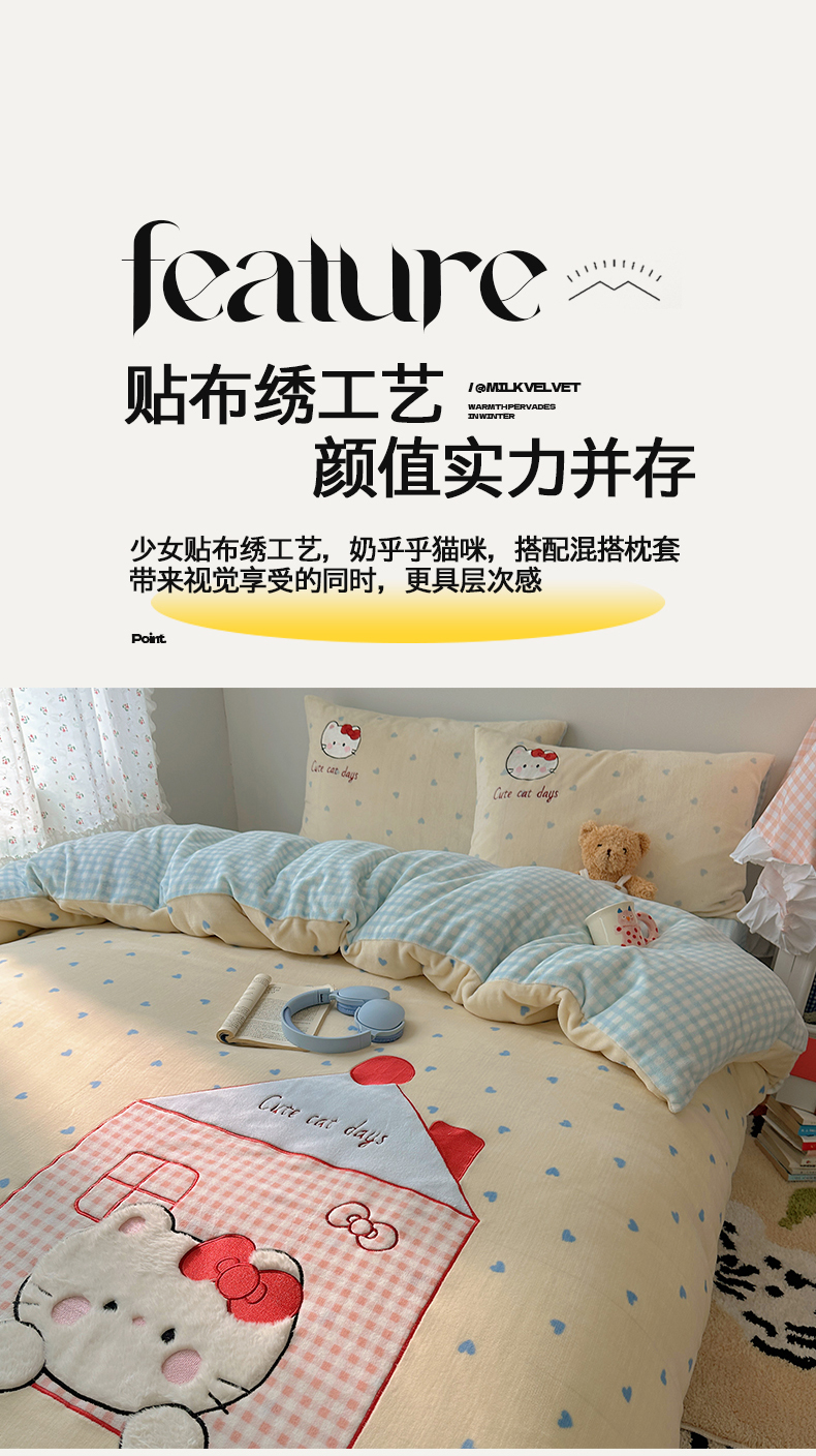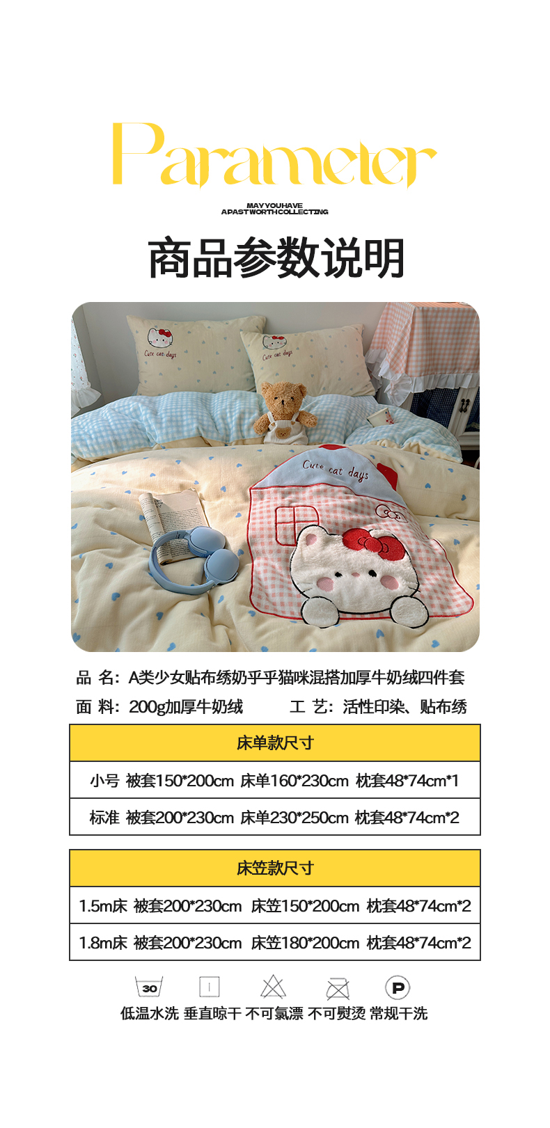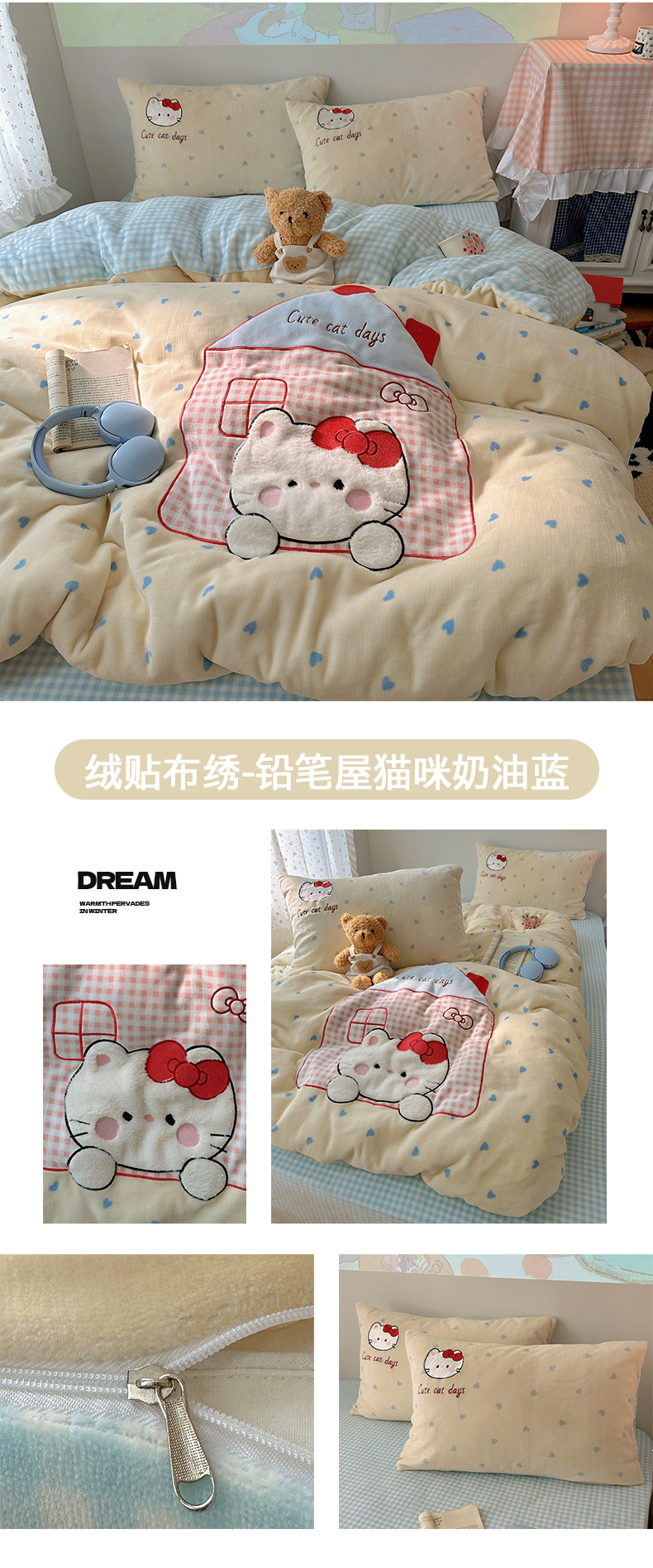 当前位置: 91家纺网 > 商品网购 > 床品套件 > 四件套 > 牛奶绒四件套 > 桃子家居 2025新款A类兔毛贴布绣刺绣牛奶绒四件套 绒贴布绣-铅笔屋猫咪奶油蓝