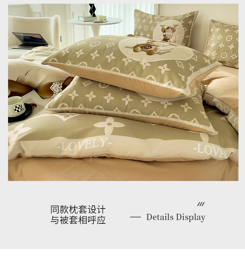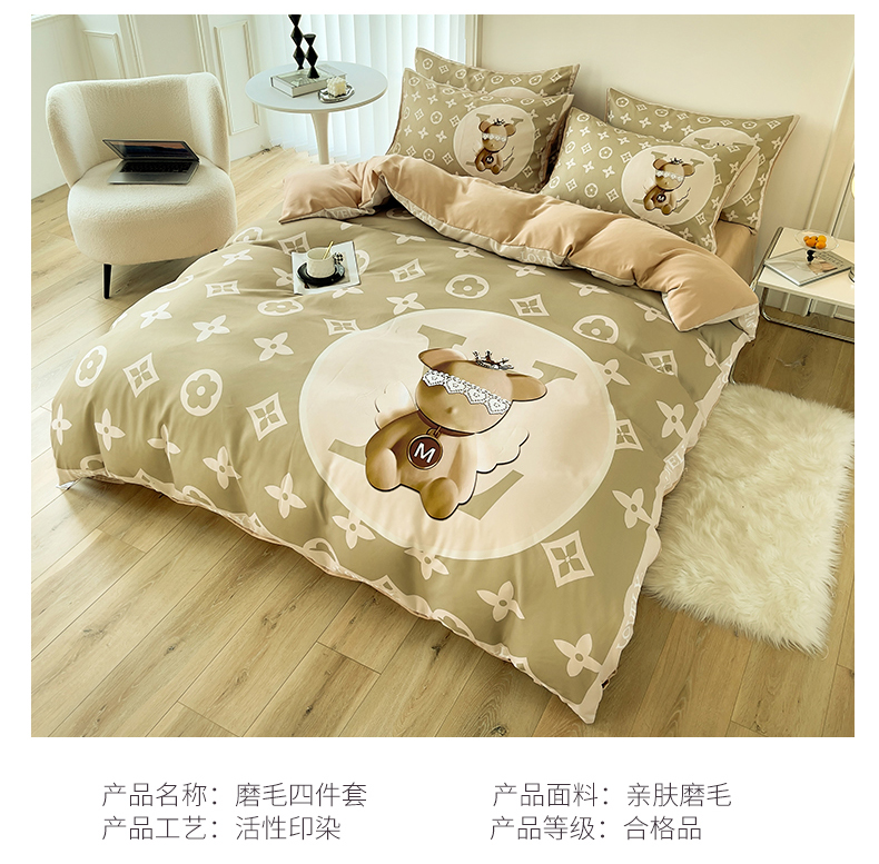 (总)色鬼布艺高端家居主号 2025秋冬新款网红款水洗棉四季款四件套,豹纹熊-粉,豹纹熊-绿,彩虹兔,格子熊,公仔蓝,梦幻粉,梦幻蓝,棋盘格公仔,太阳花粉,天使熊-粉,天使熊-咖,小熊头,熊头白,熊头橙,熊头咖,熊仔白
