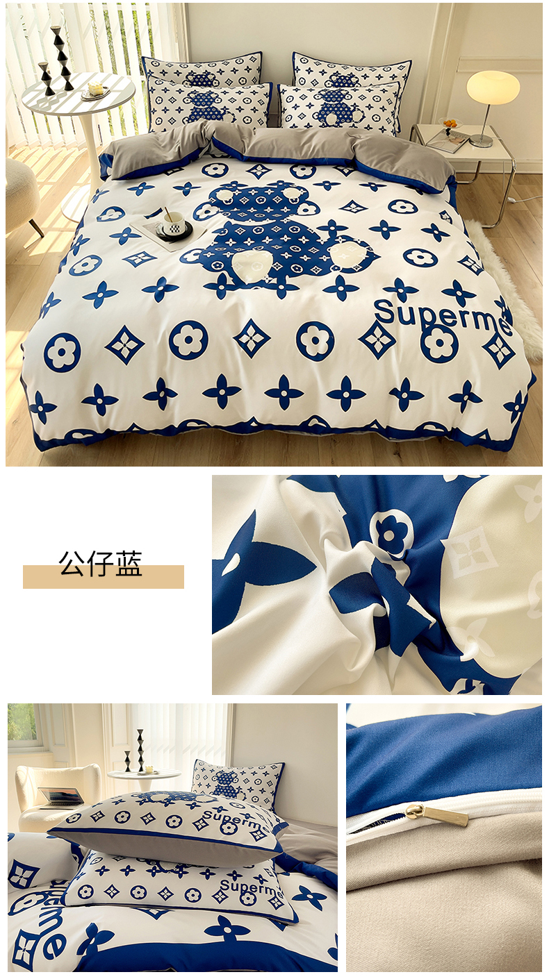 商品名称:色鬼布艺高端家居主号 2025秋冬新款网红款水洗棉四季款四件套 梦幻蓝