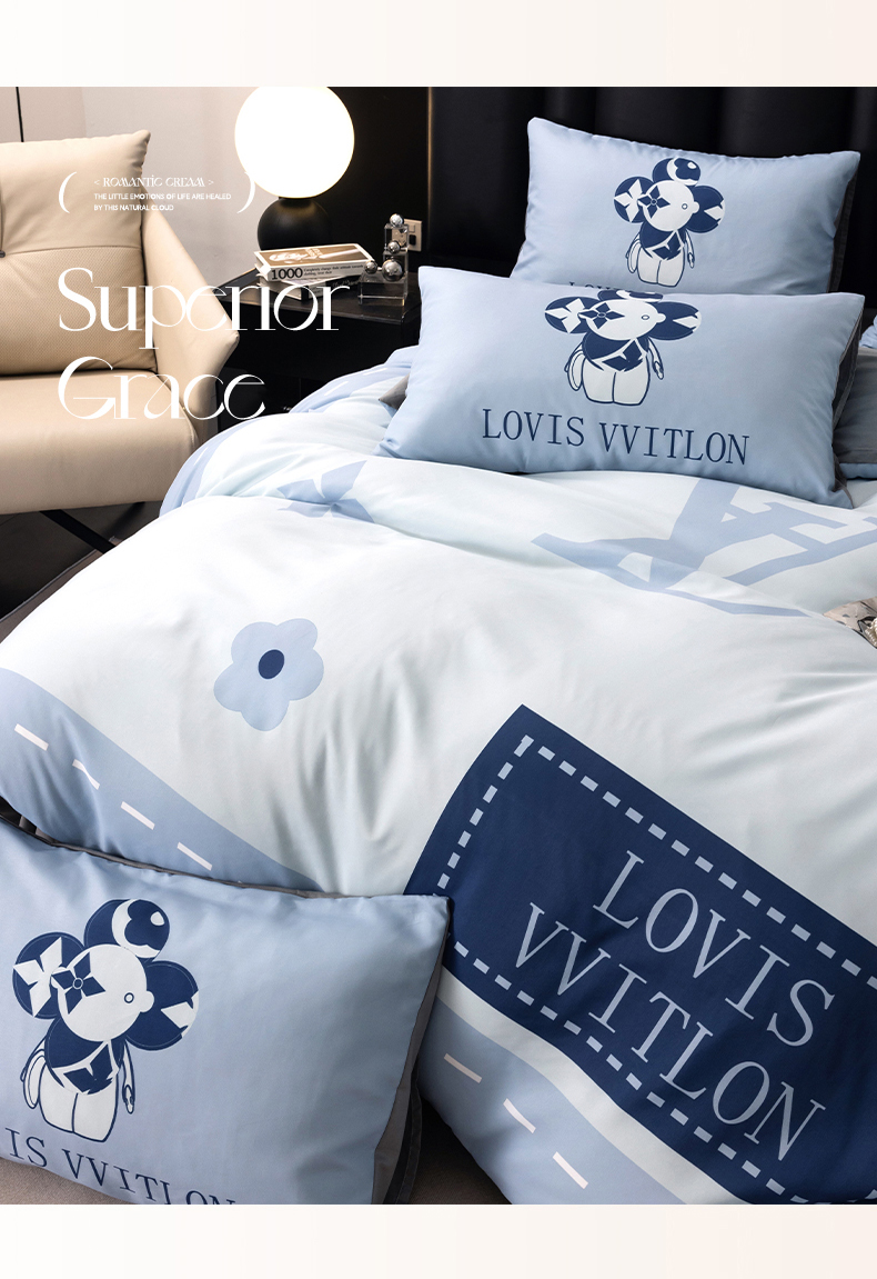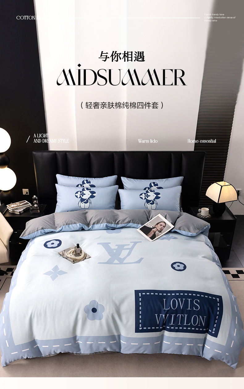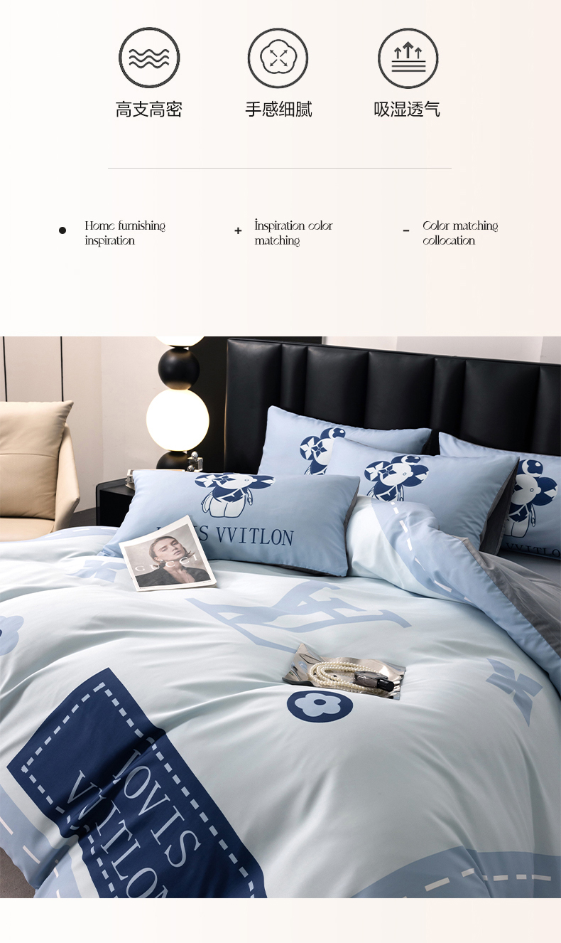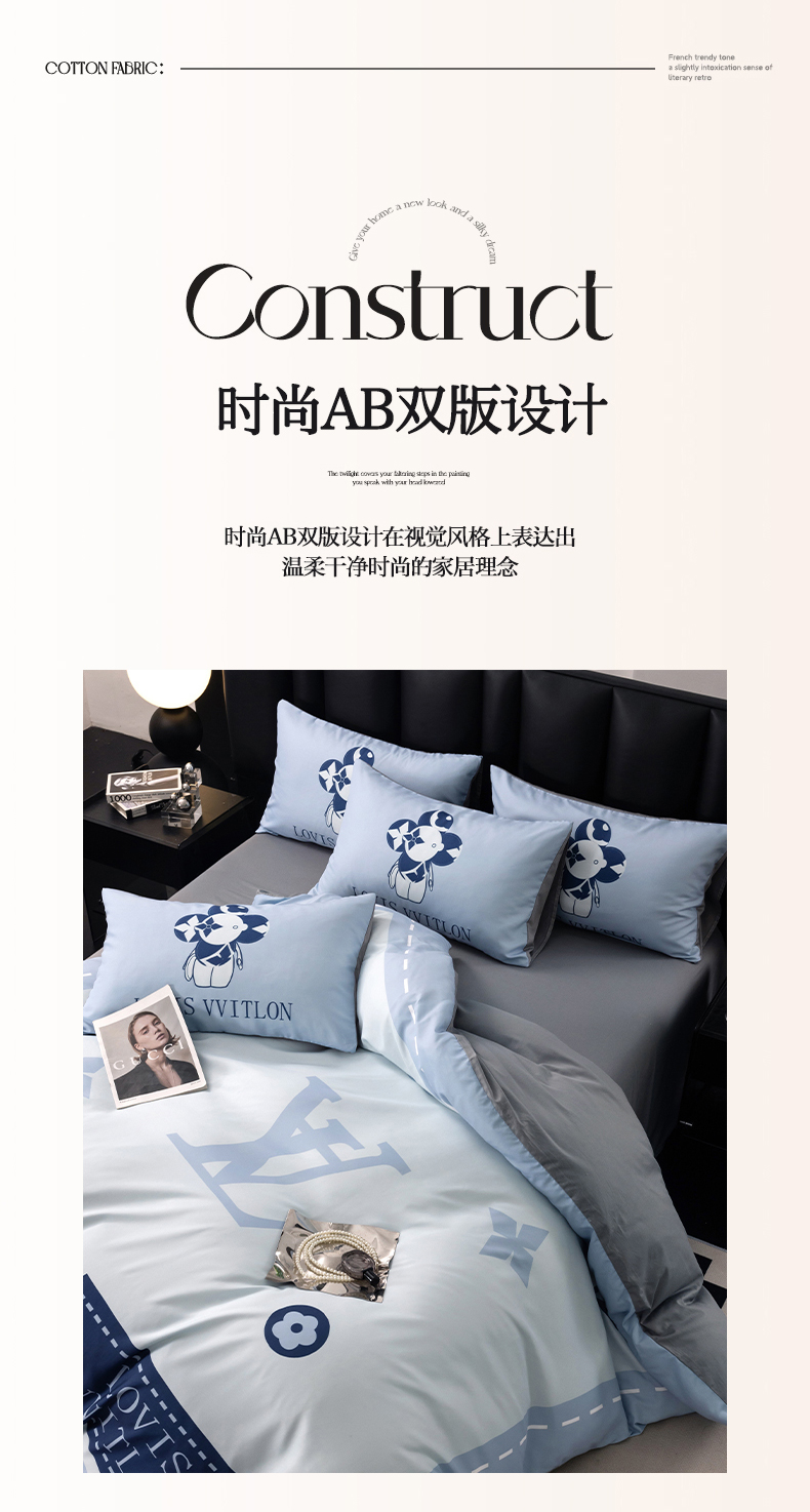 (总)色鬼布艺高端家居主号 2025新款轻奢亲肤纯棉数码印花网红热款四件套,豹纹香,白金V,白香花,大H,黑白迪,黑白V,灰迪,咖古,克莱因,慕斯小姐,山茶花,星空