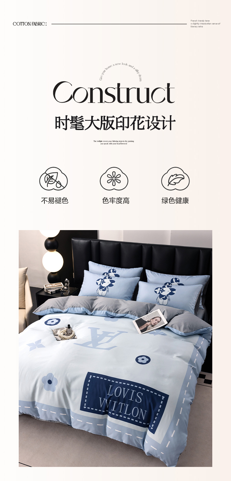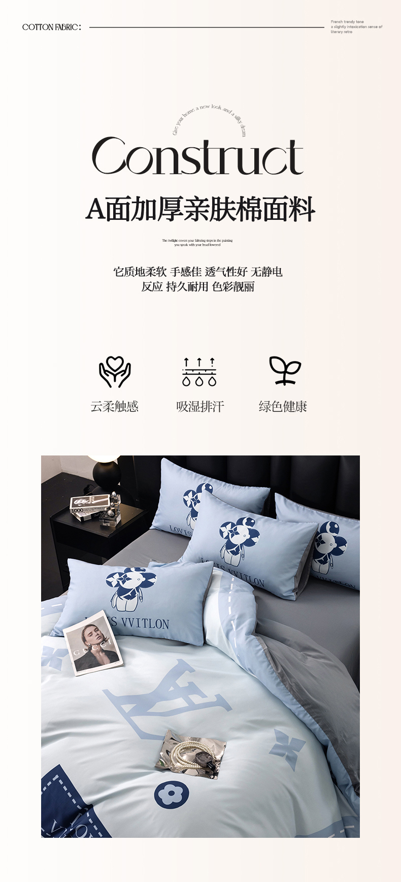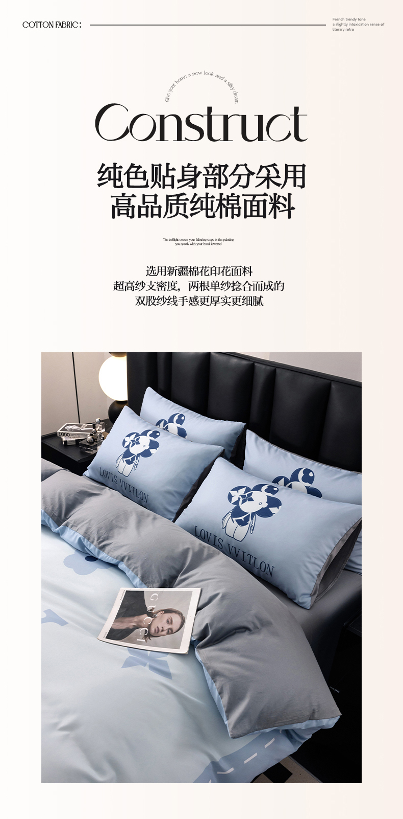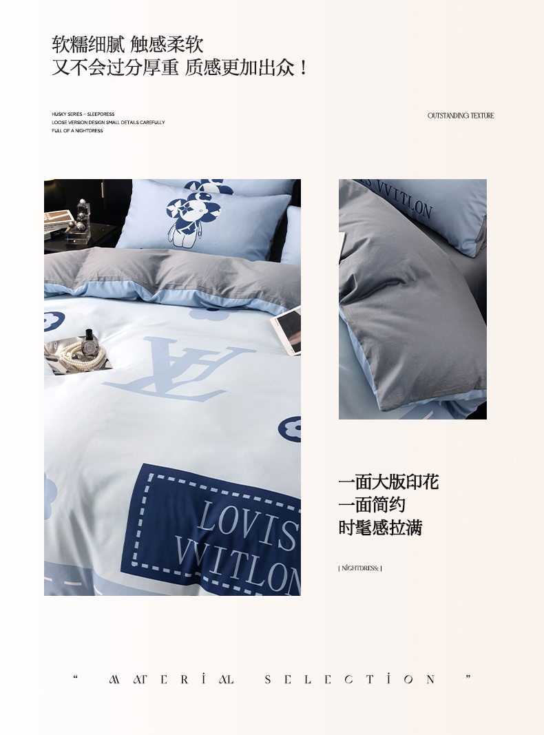 (总)色鬼布艺高端家居主号 2025新款轻奢亲肤纯棉数码印花网红热款四件套,豹纹香,白金V,白香花,大H,黑白迪,黑白V,灰迪,咖古,克莱因,慕斯小姐,山茶花,星空
