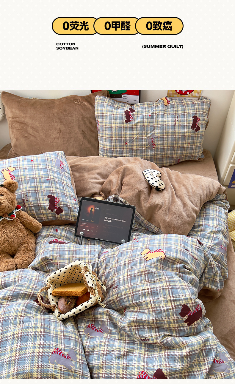 当前位置: 91家纺网 > 商品网购 > 床品套件 > 四件套 > 牛奶绒四件套 > 原素 2025秋冬A类水洗棉+200克牛奶绒四件套 红格喵喵-绒