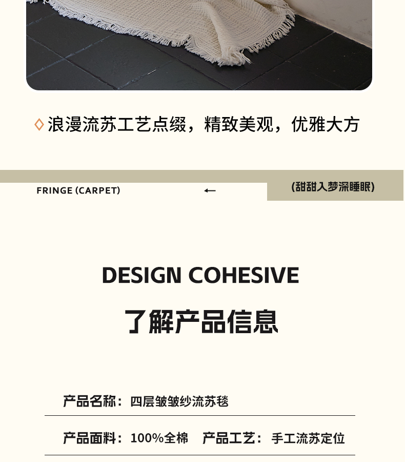 商品名称:沐瑟家纺 2025新款四层全棉纱布流苏毯系列-浪漫 浪漫-月白