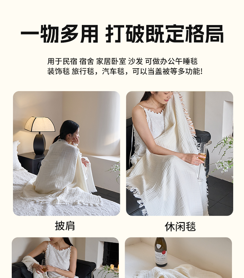 (总)沐瑟家纺 2025新款简约风多功能纱布盖毯纱布毯子毛巾被床盖沙发巾单毯枕巾枕套三件套,H本色,H橙色,H咖色,大马士革本色