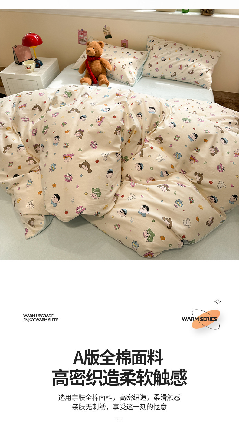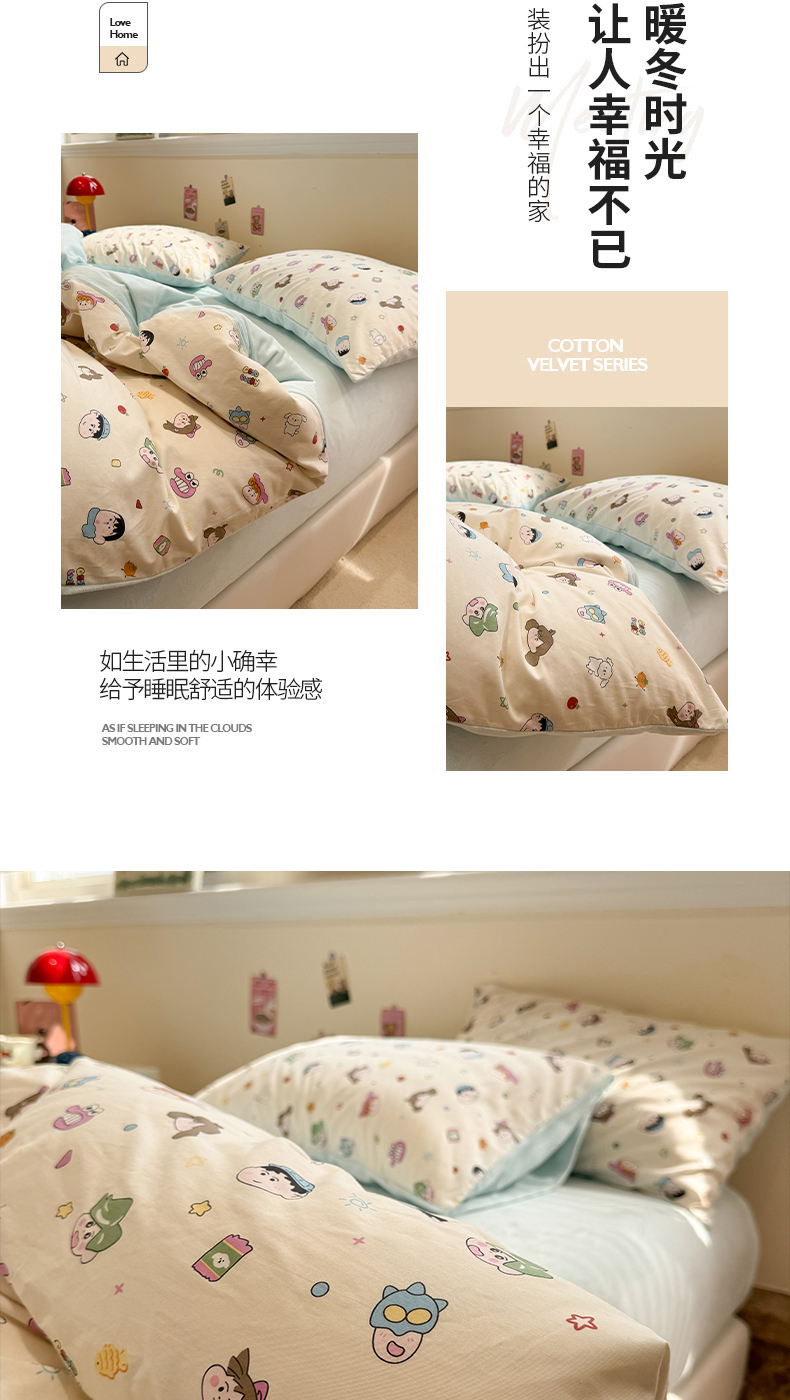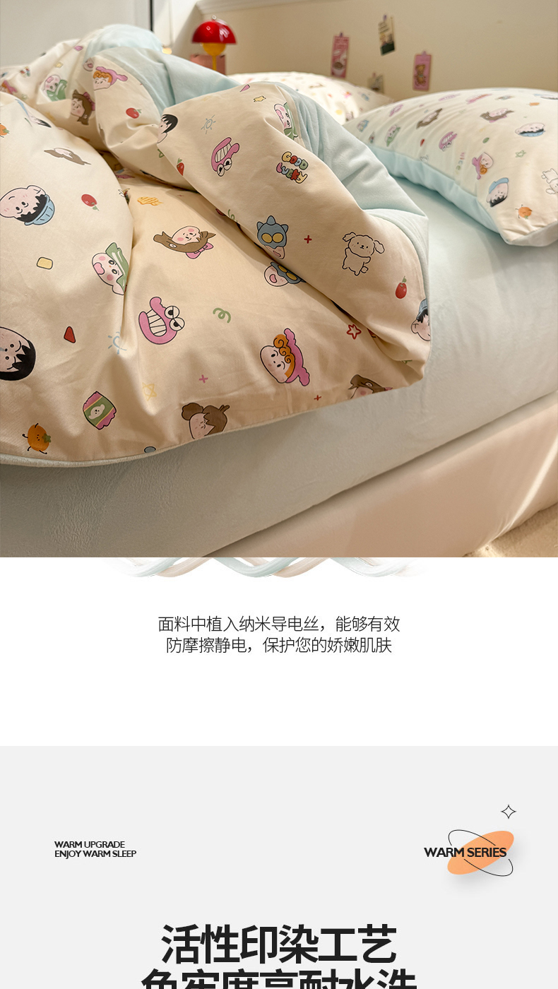 (总)怡家居 2025新款秋冬保暖全棉加绒四件套,爱丽花园,春色,光年,花边兔,蜡笔小新,时光里,小红果-咖,小红果-蓝,小蘑菇,QQ乐园
