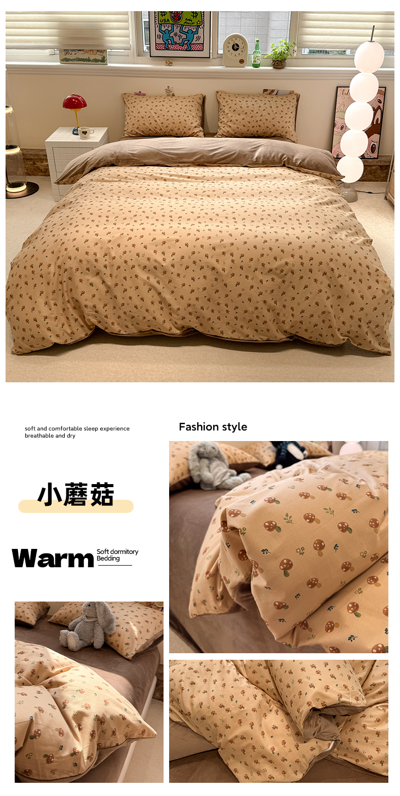 商品名称:怡家居 2025新款秋冬保暖全棉加绒四件套 小蘑菇