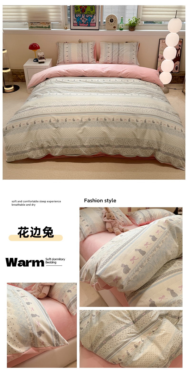 (总)怡家居 2025新款全棉纯棉磨毛绣花四件套-拼接款,格子小兔,可可腊肠,苹果小猫,曲奇饼干,五彩小煤球-咖,五彩小煤球-蓝