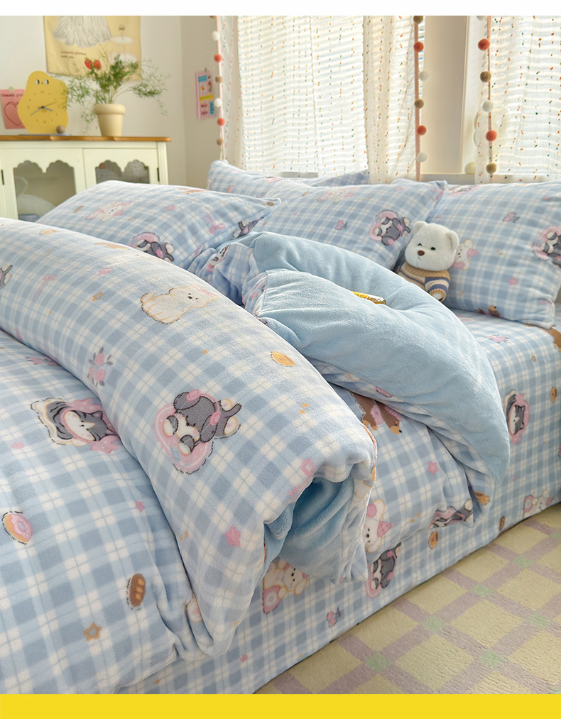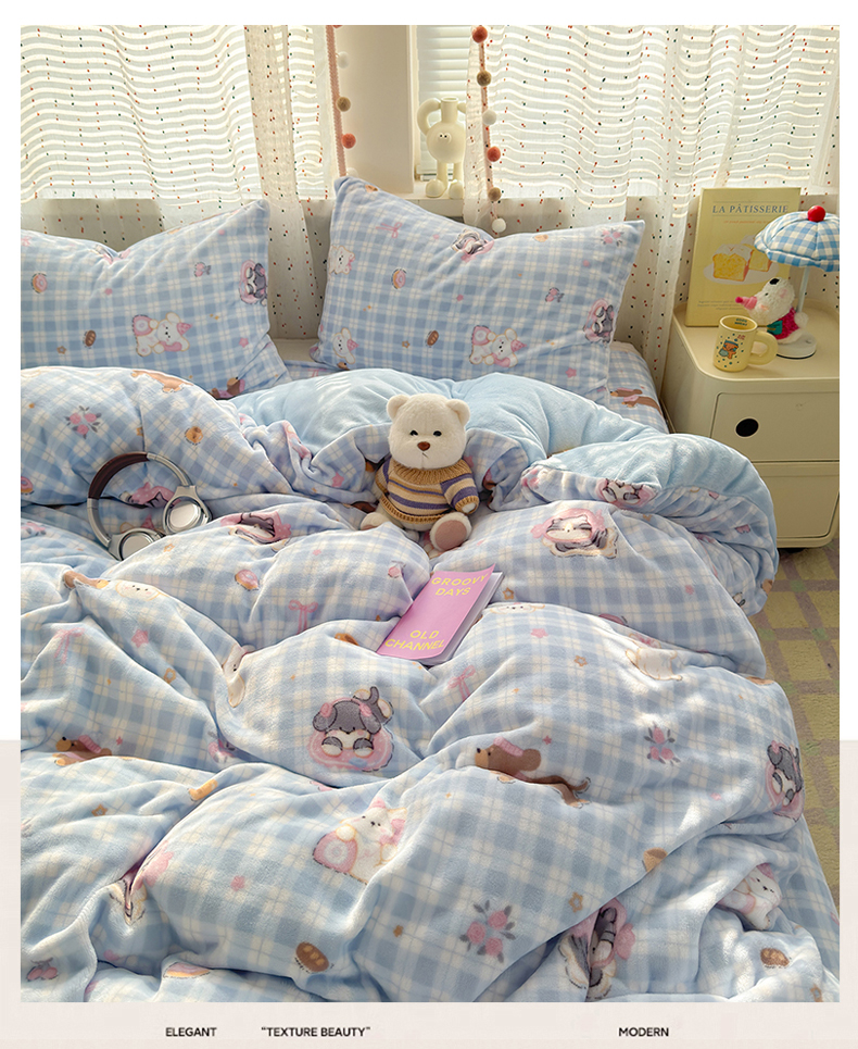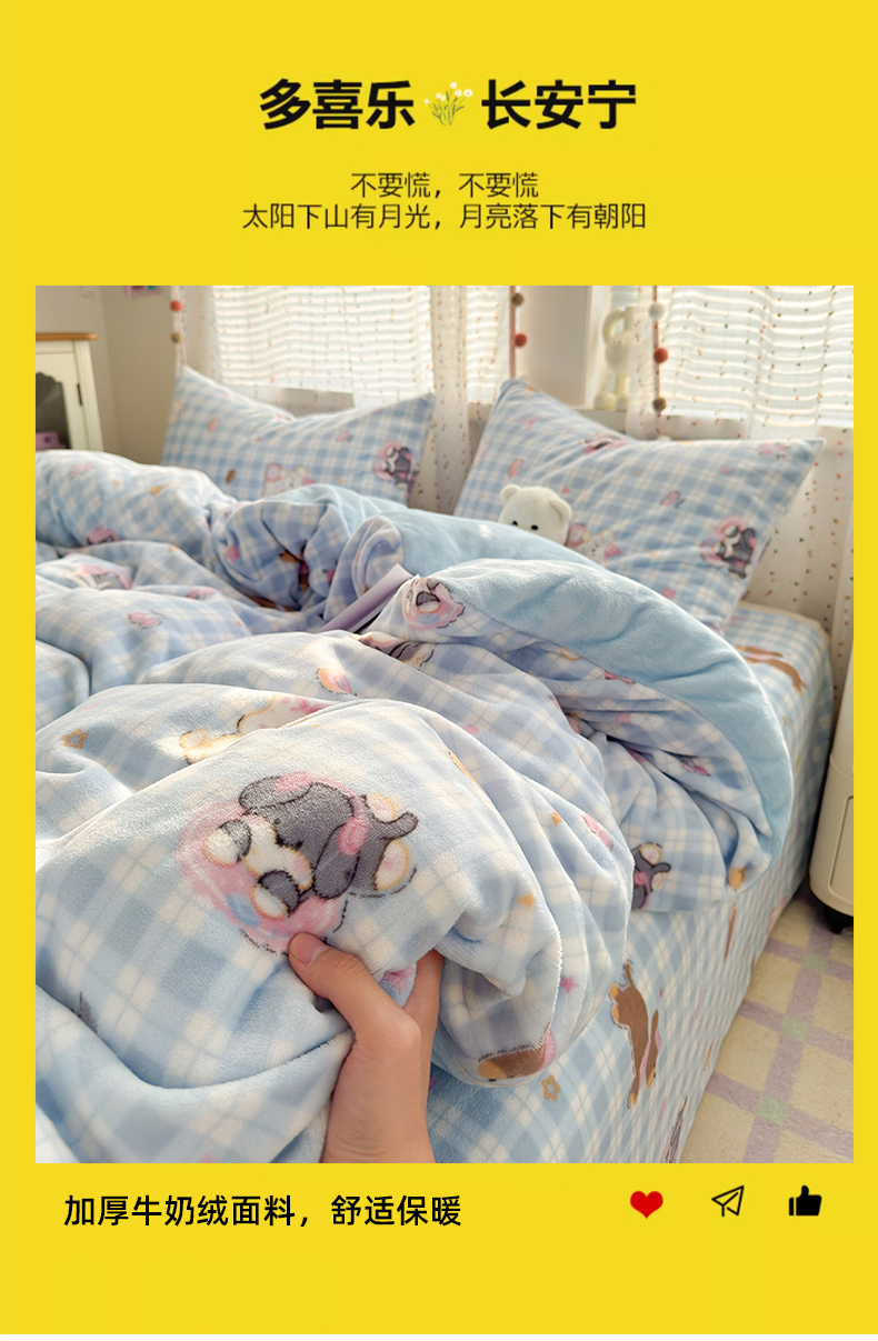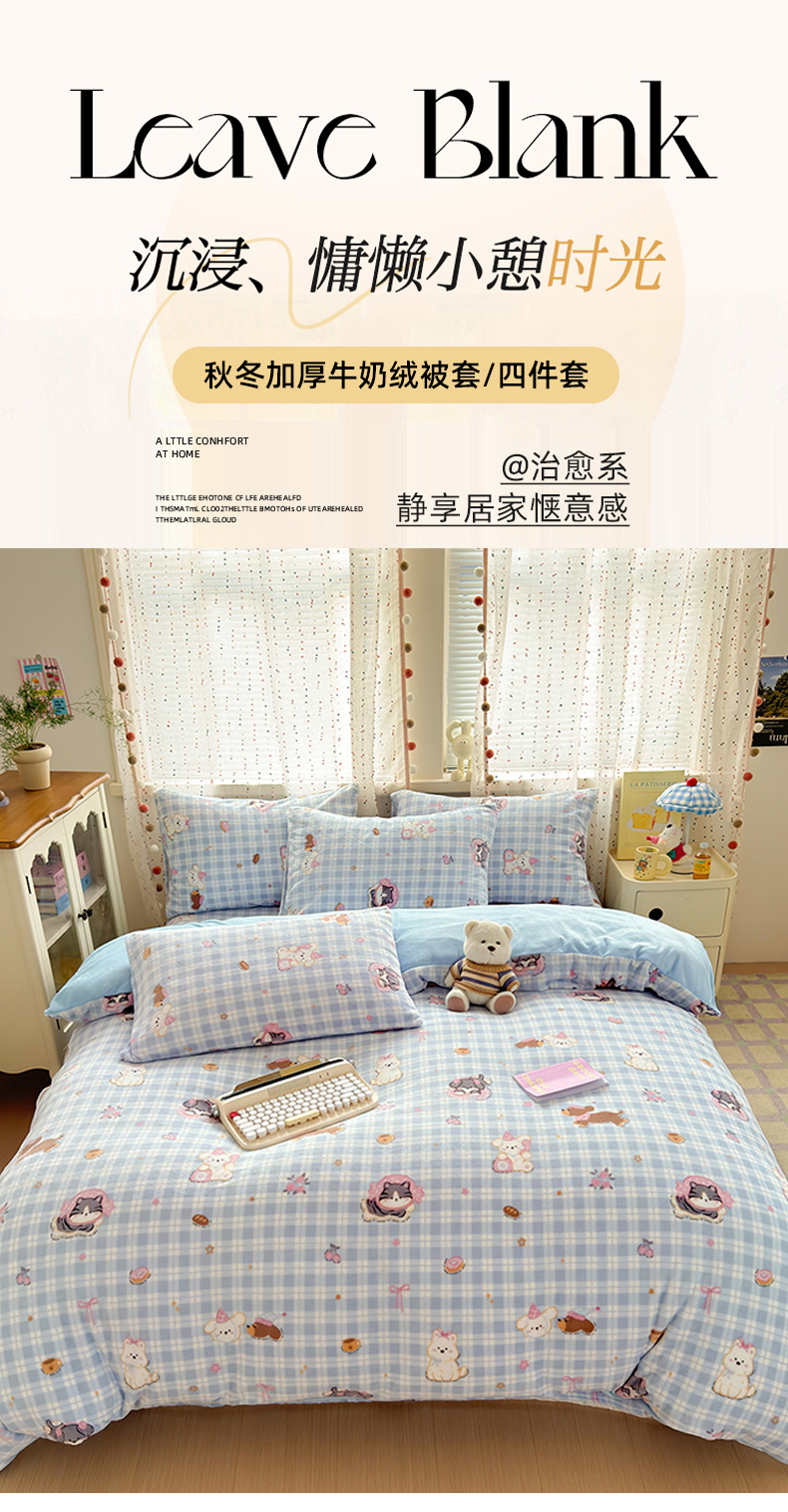 当前位置: 91家纺网 > 商品网购 > 床品套件 > 四件套 > 牛奶绒四件套 > 沐芷 2025 高克重加厚A类牛奶绒四件套珊瑚绒卡通简约三件套 【绒】蓝色小窝