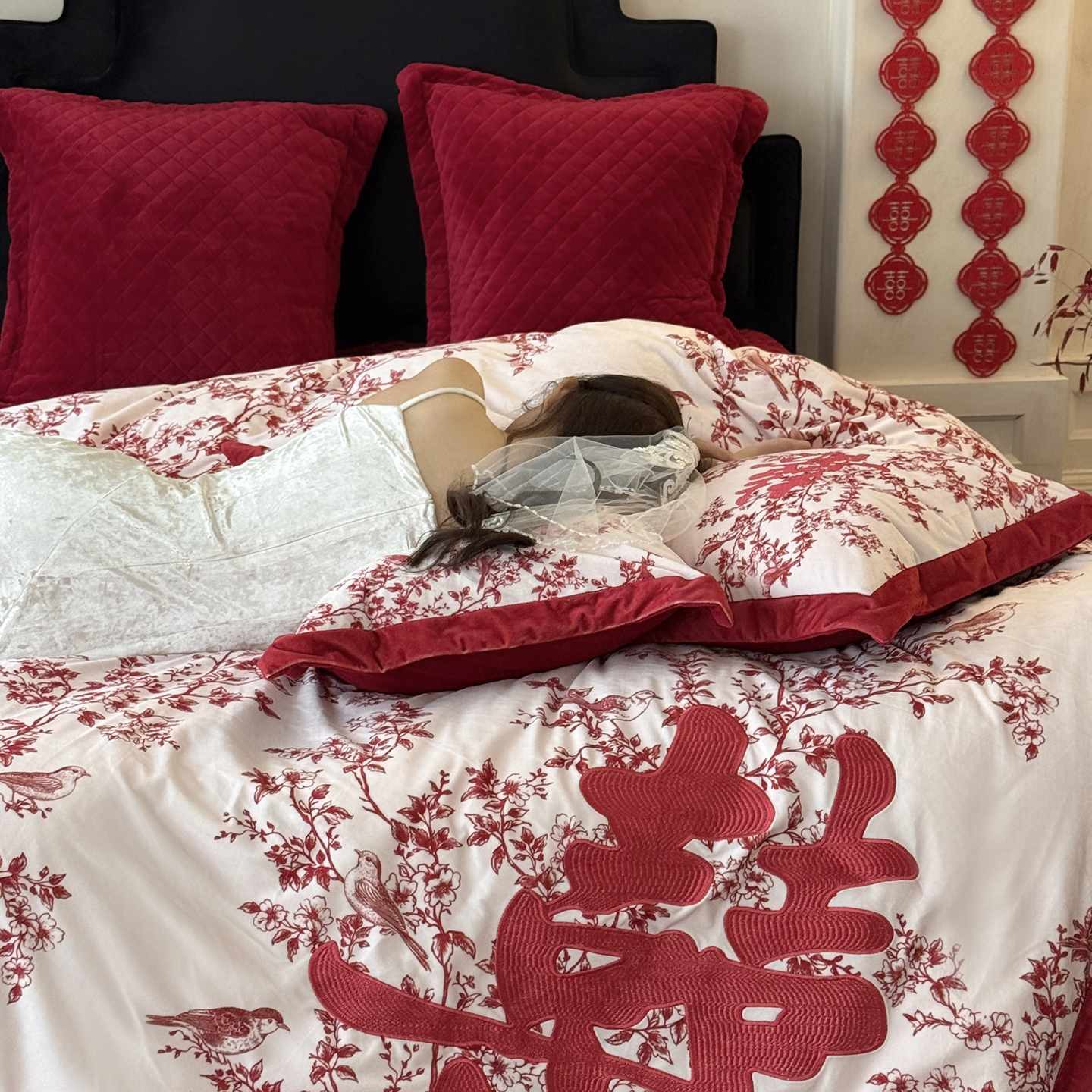 当前位置: 91家纺网 > 商品网购 > 床品套件 > 四件套 > 其它四件套 > 江涞 2025新款高克重婴肤绒数码印花高端刺绣四件套-合欢 合欢-白
