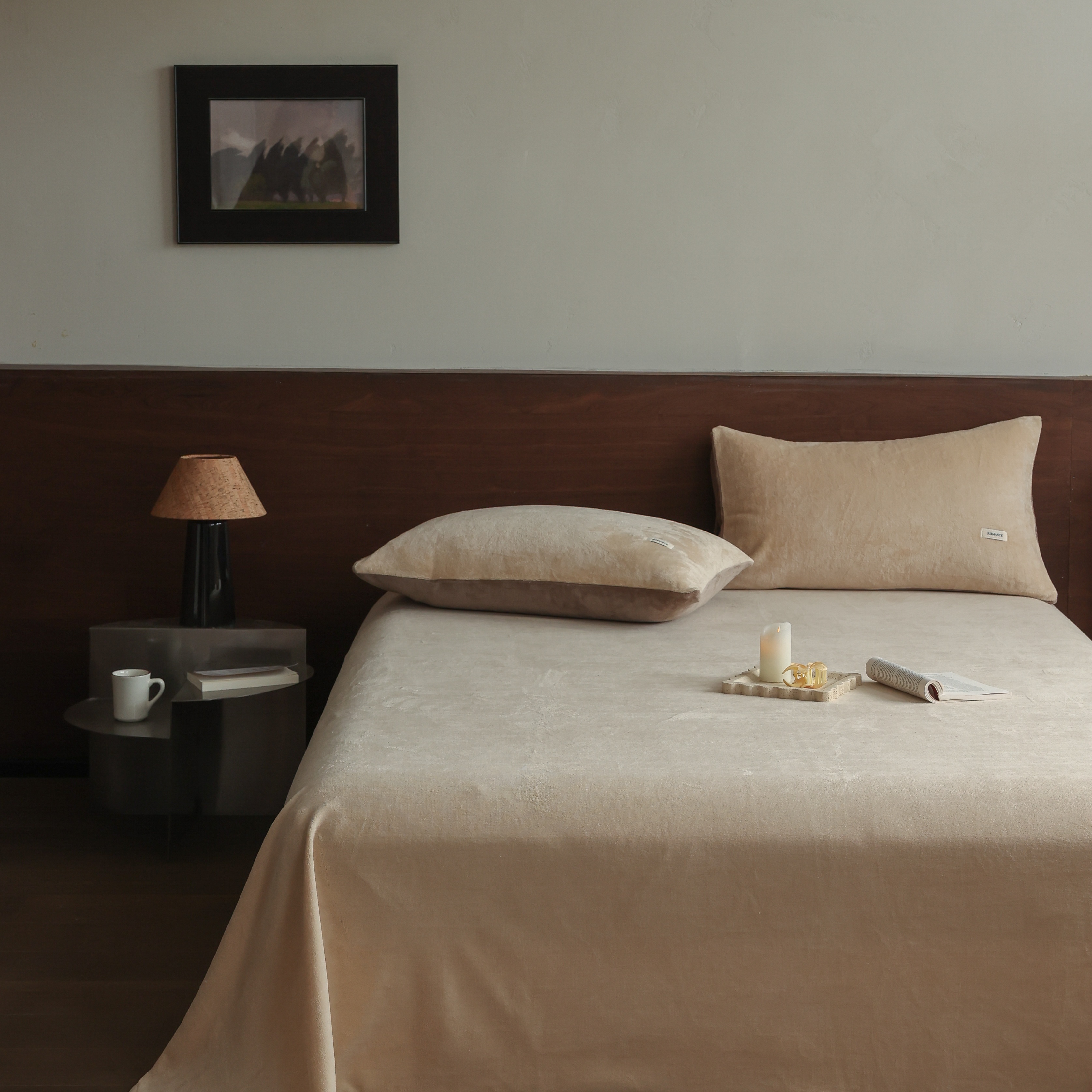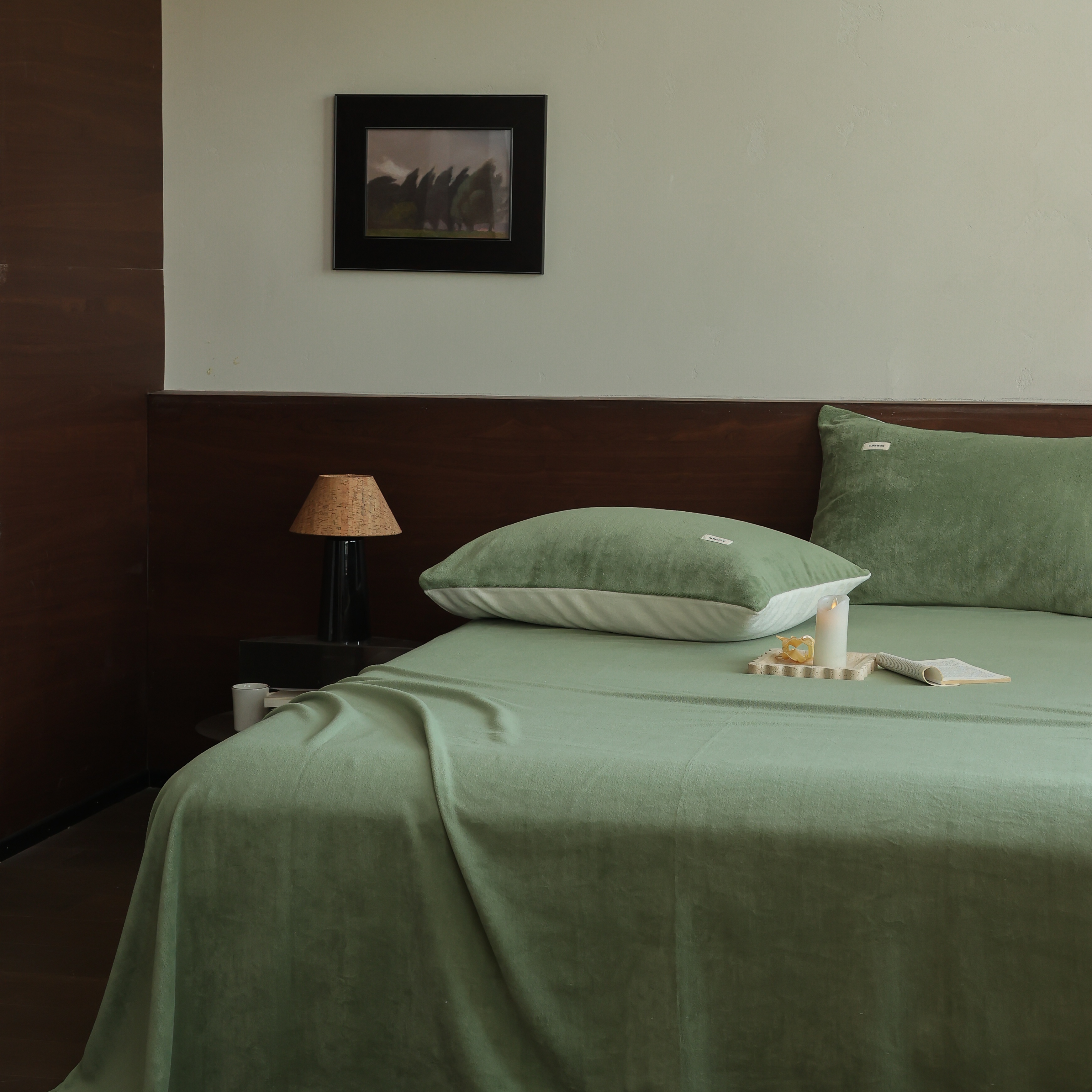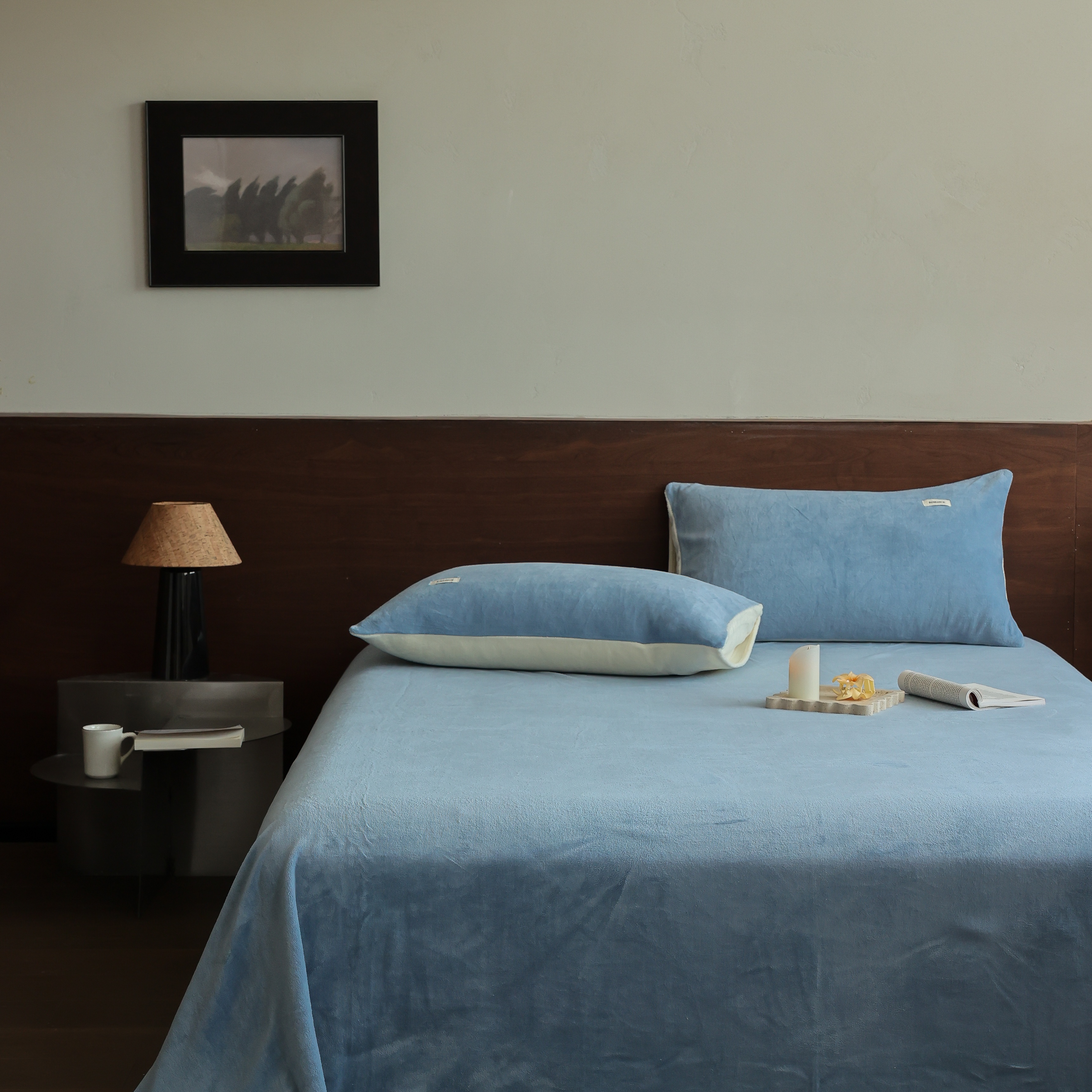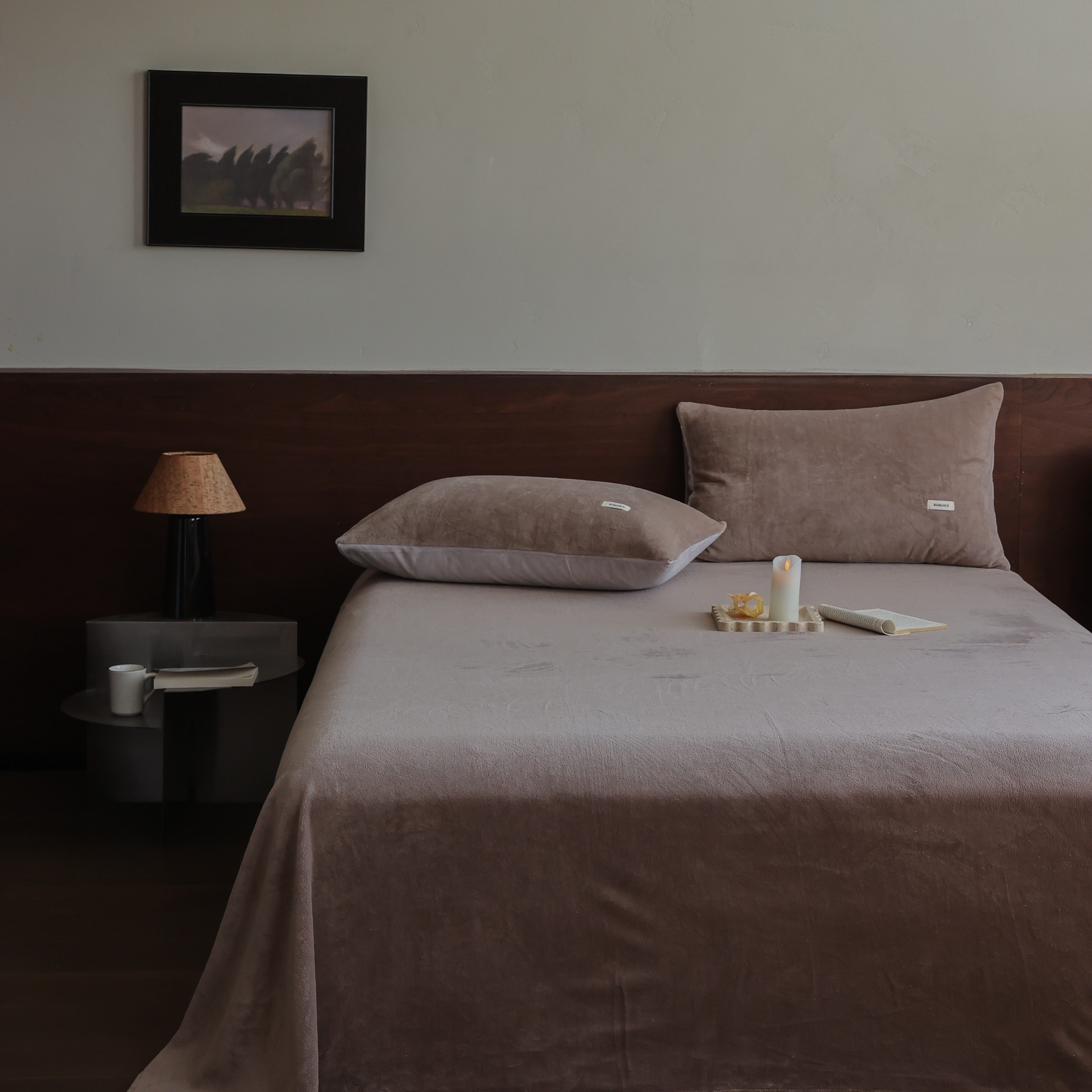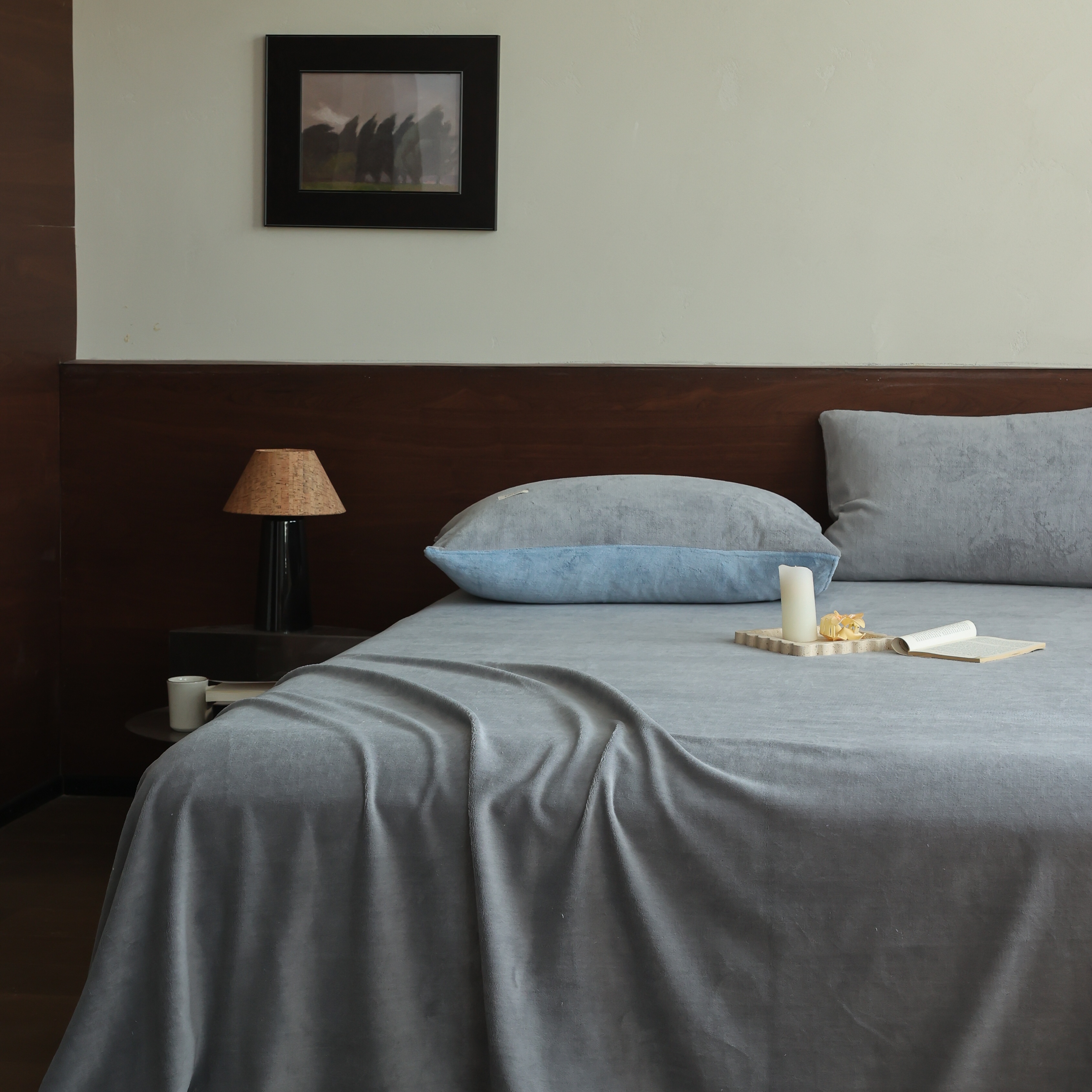 (总)时光里 2025新款230克纯色简约双拼牛奶绒四件套单品床单