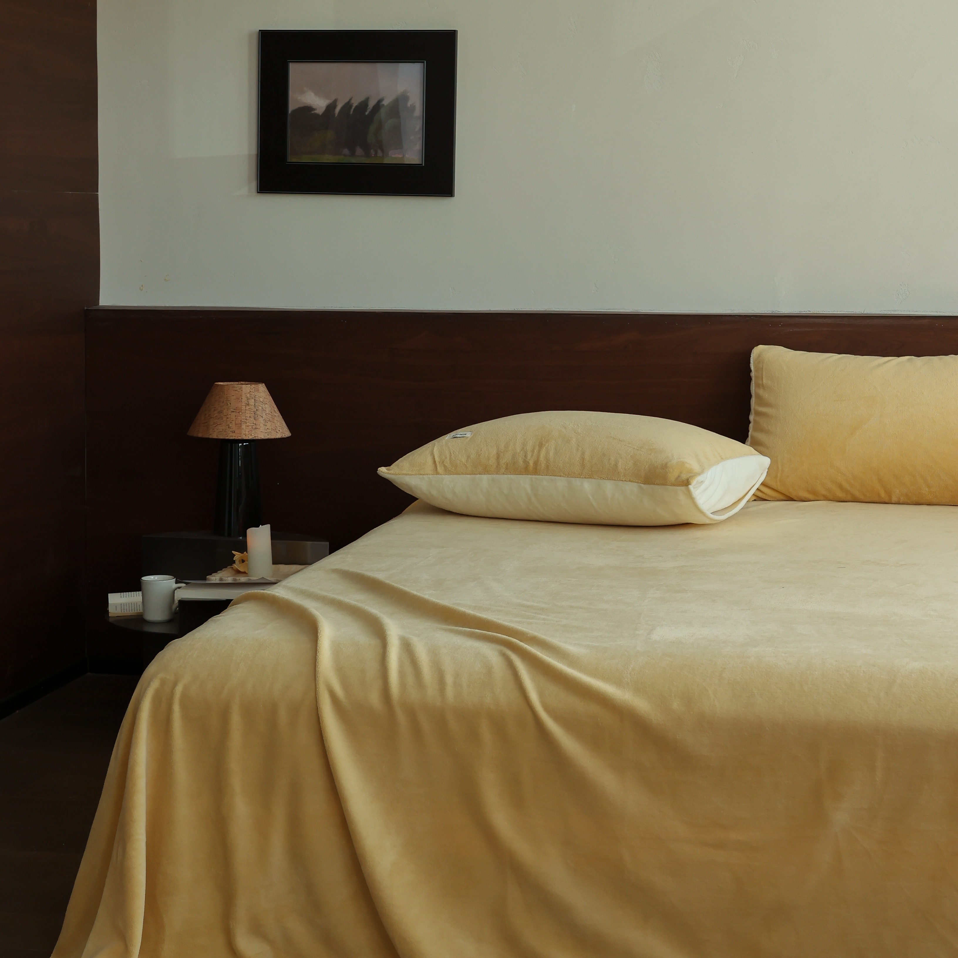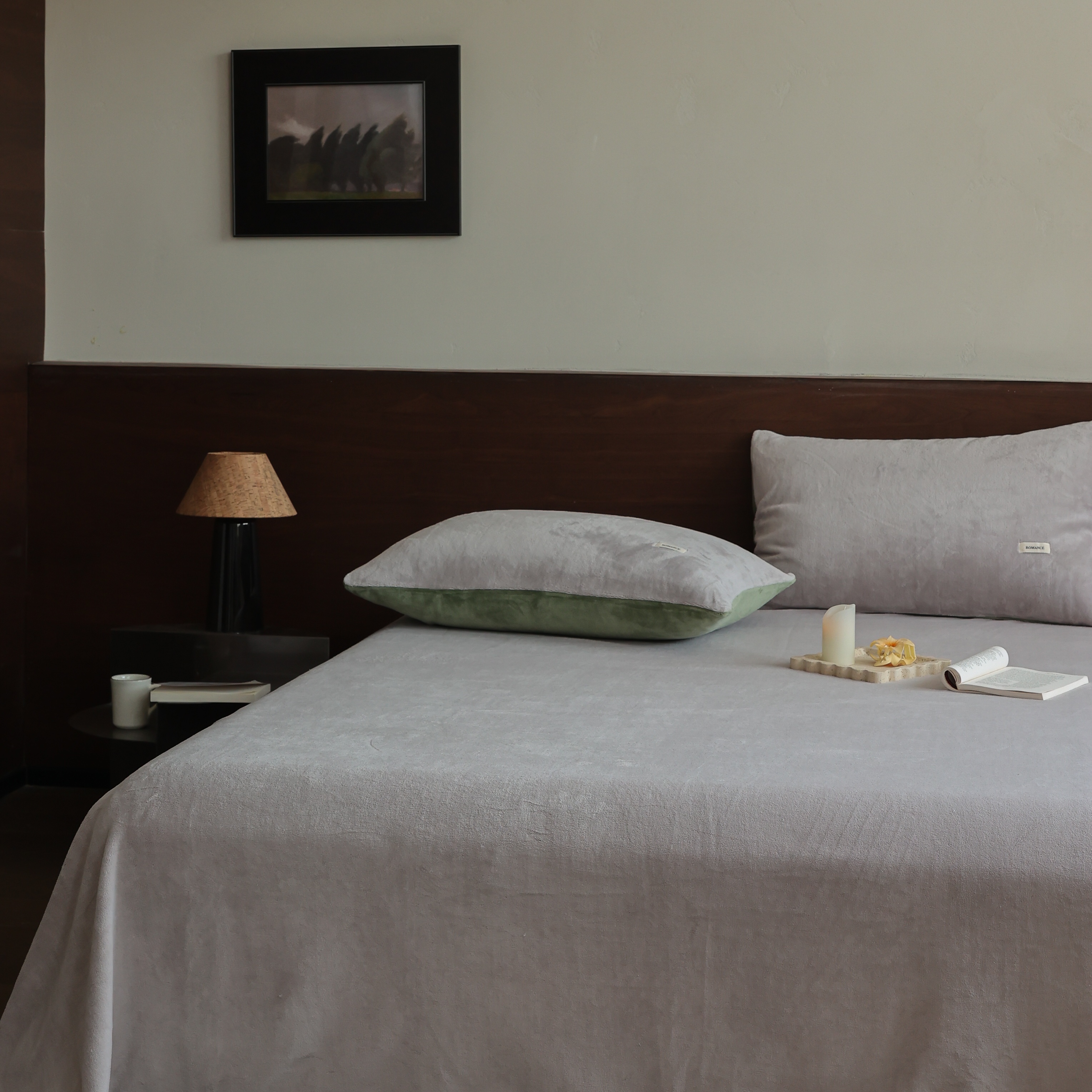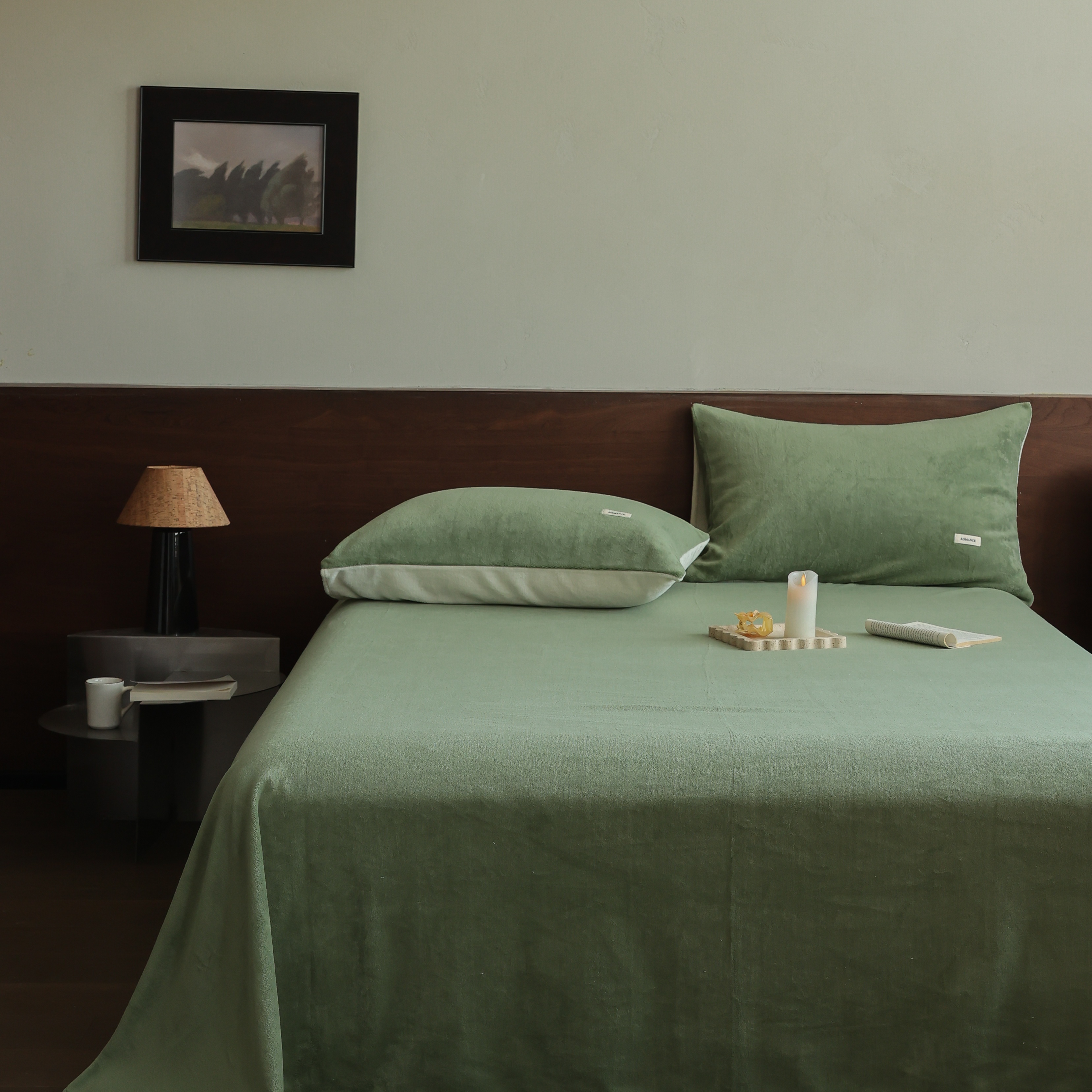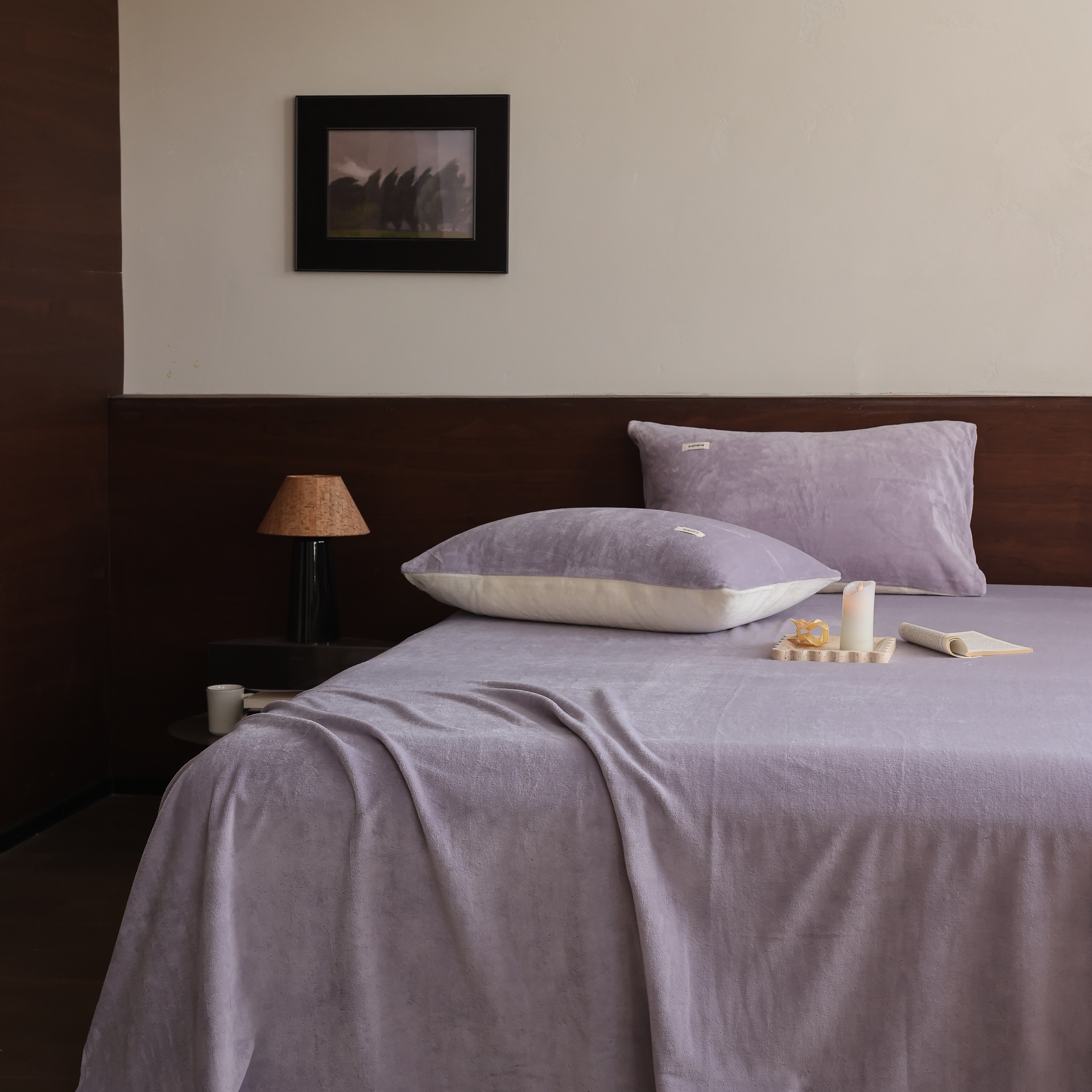 (总)时光里 2025新款230克纯色简约双拼牛奶绒四件套单品床单