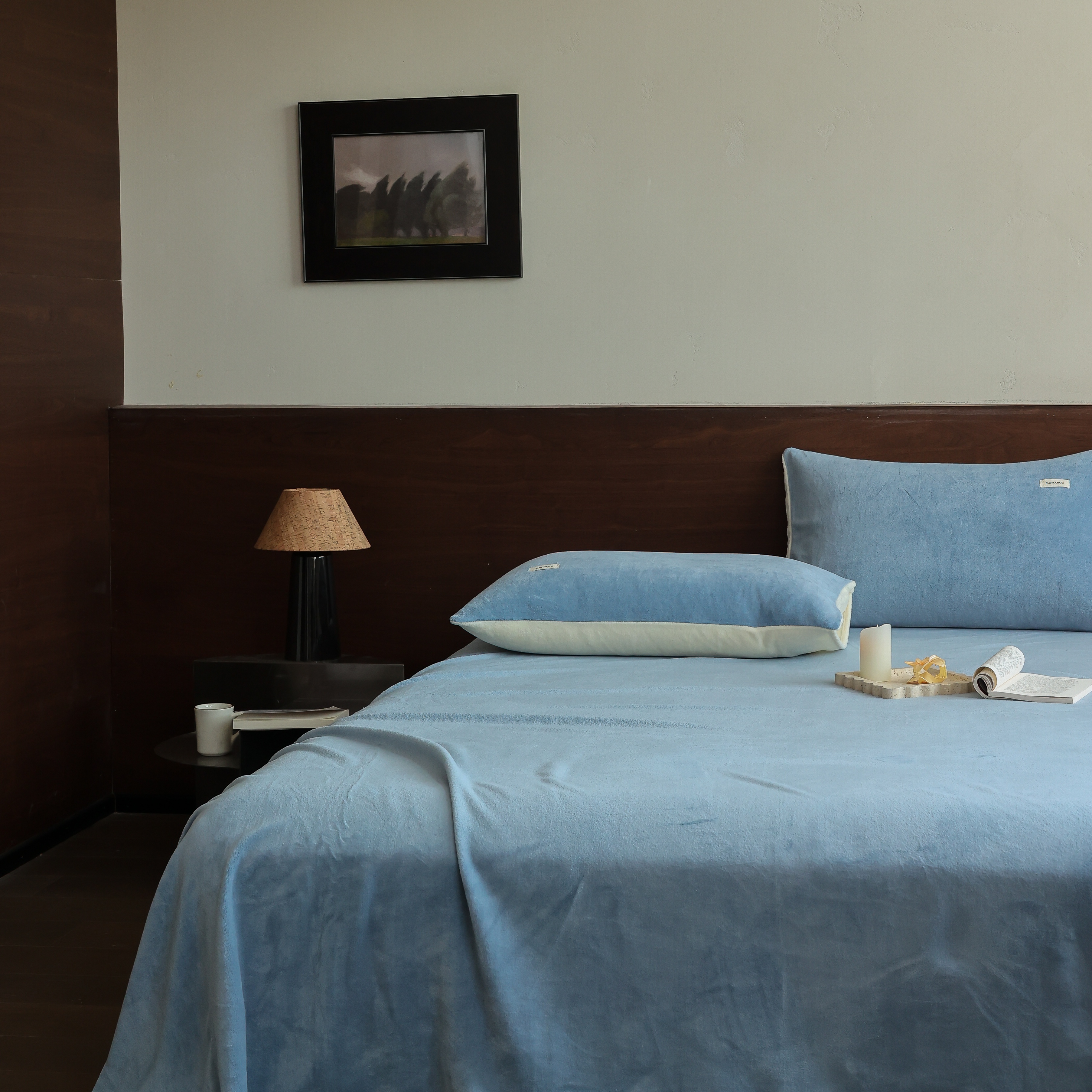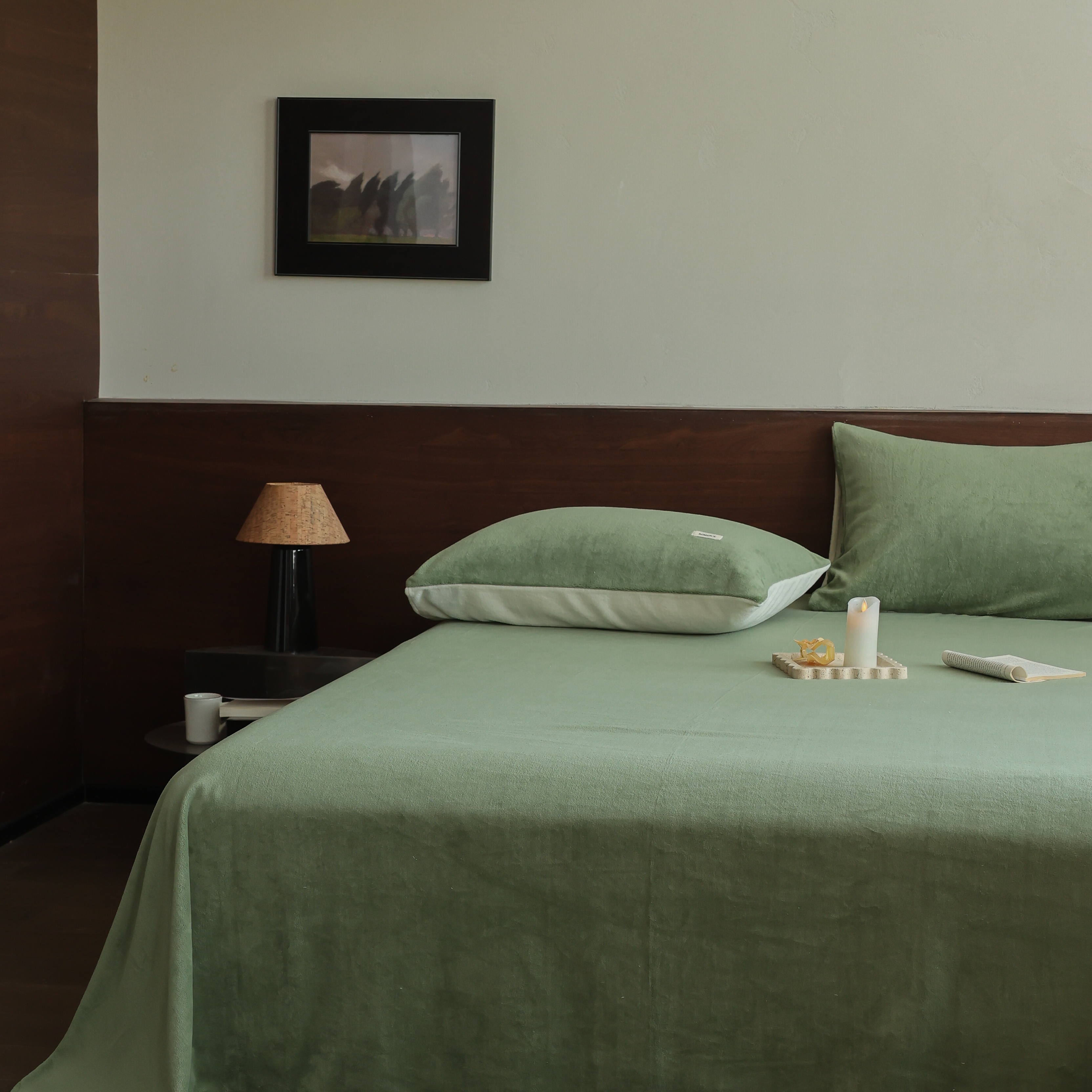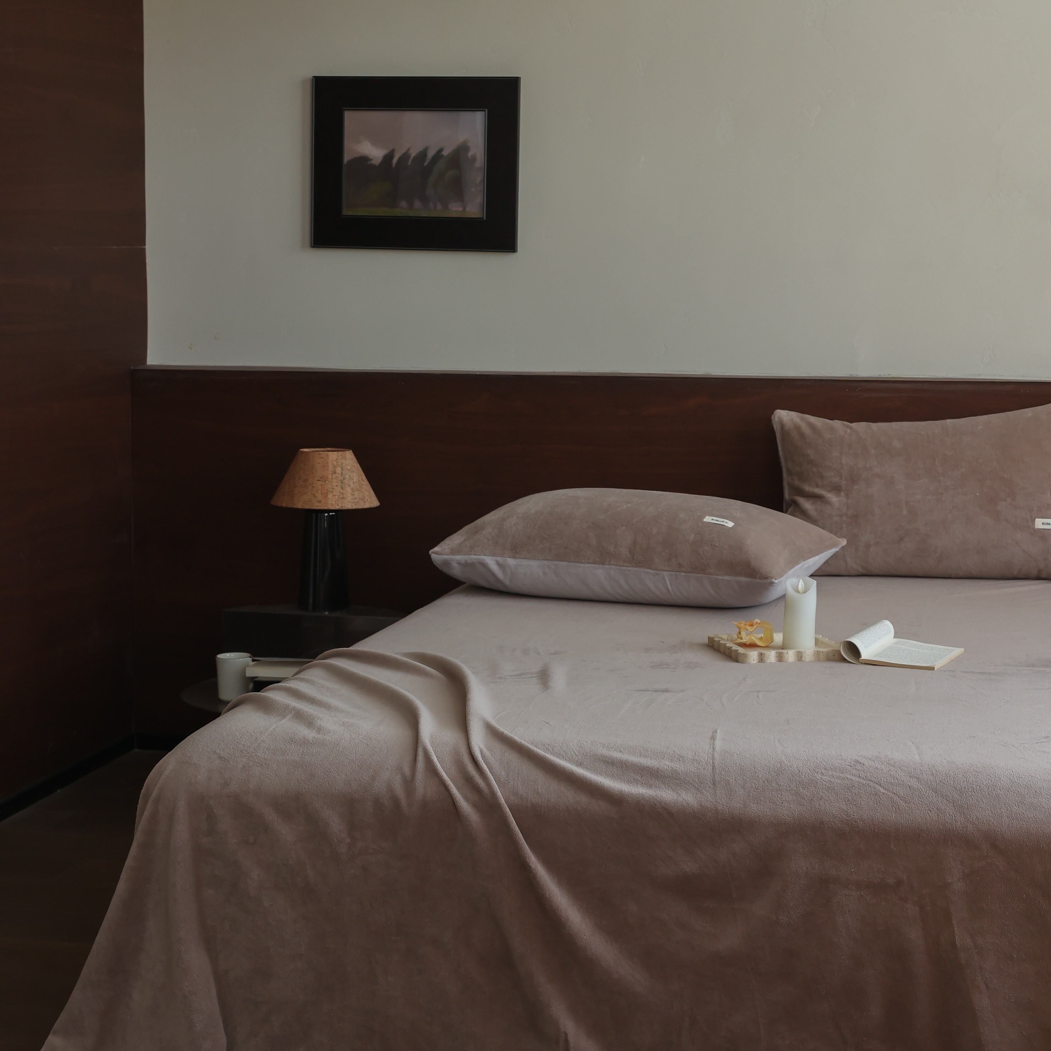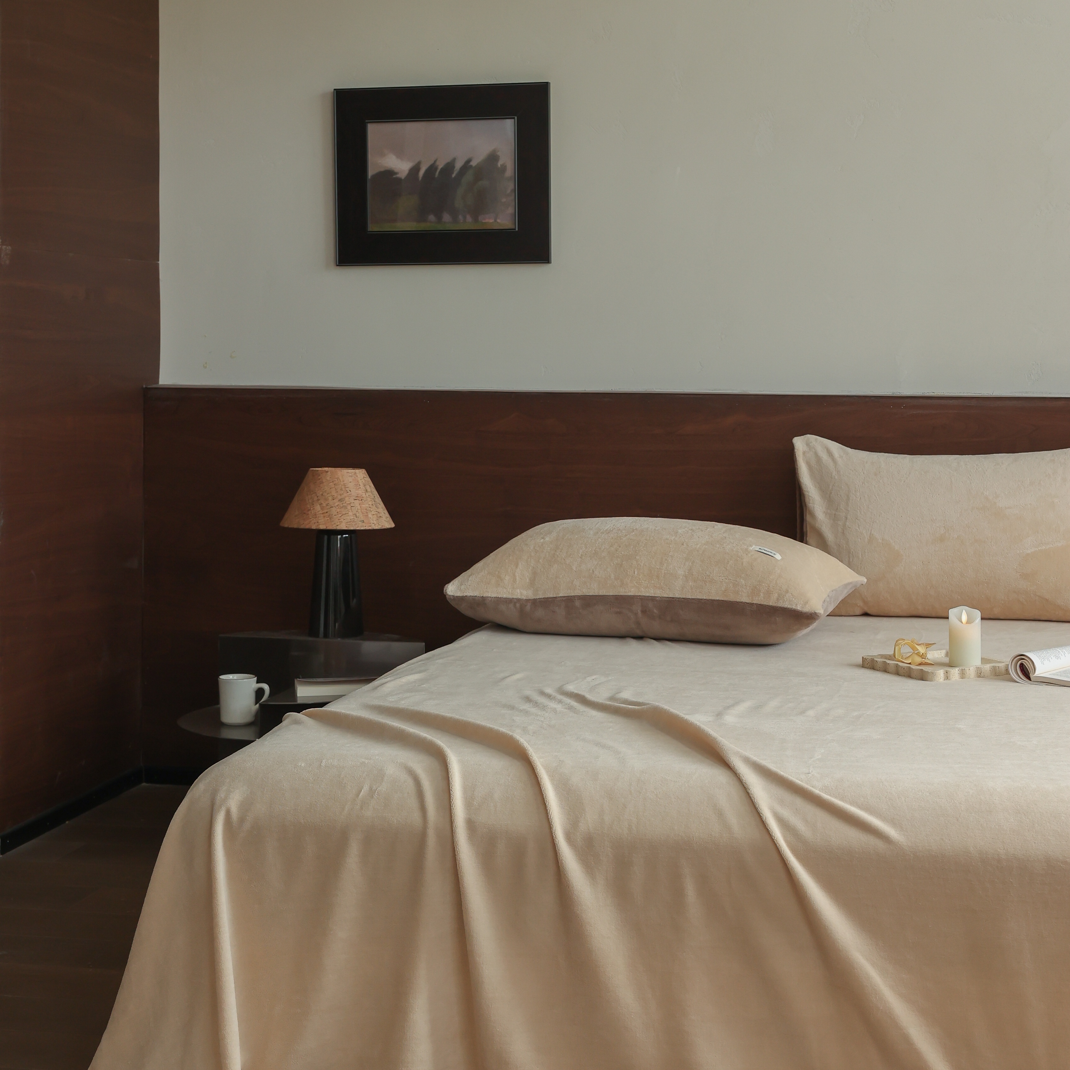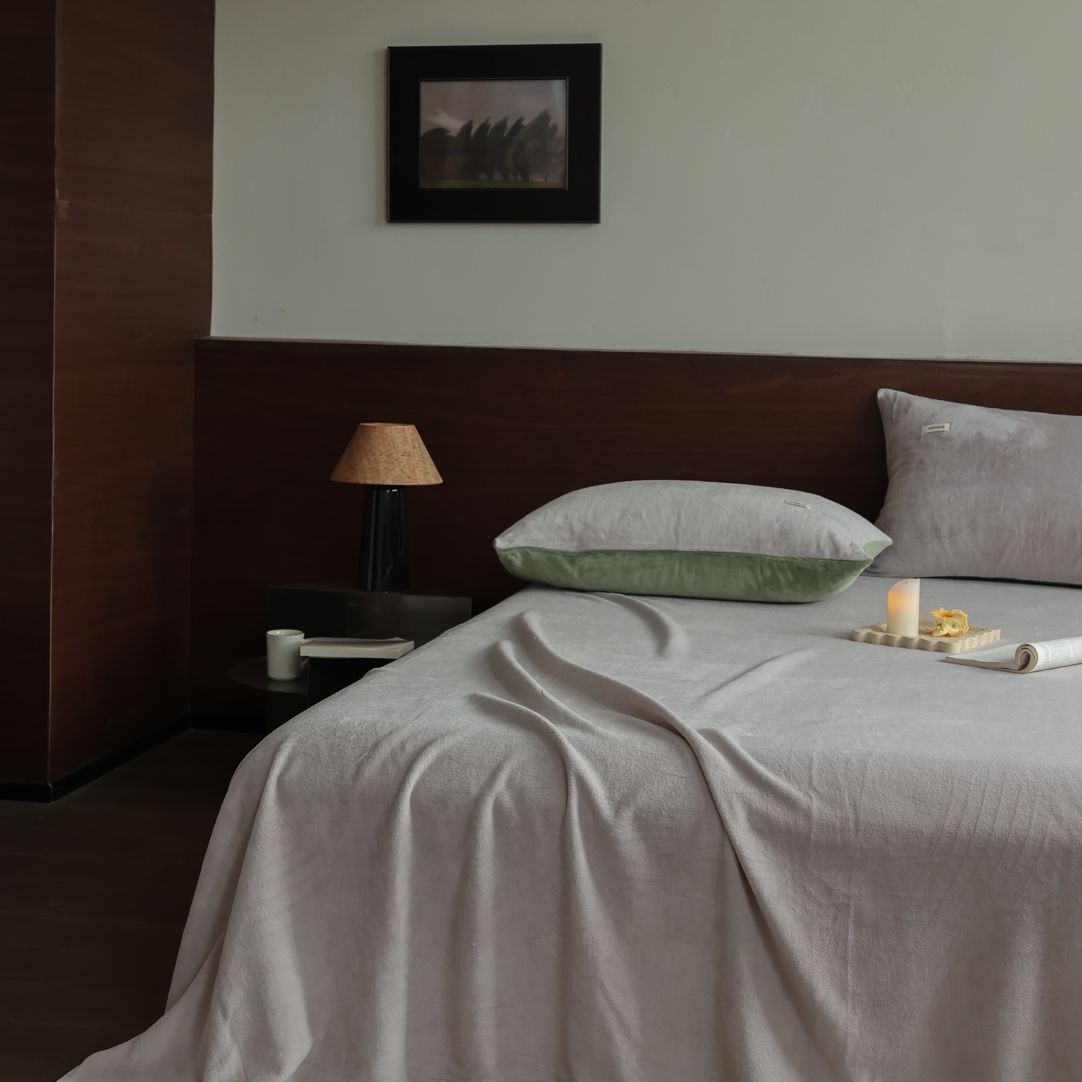 (总)时光里 2025新款230克纯色简约双拼牛奶绒四件套单品床单