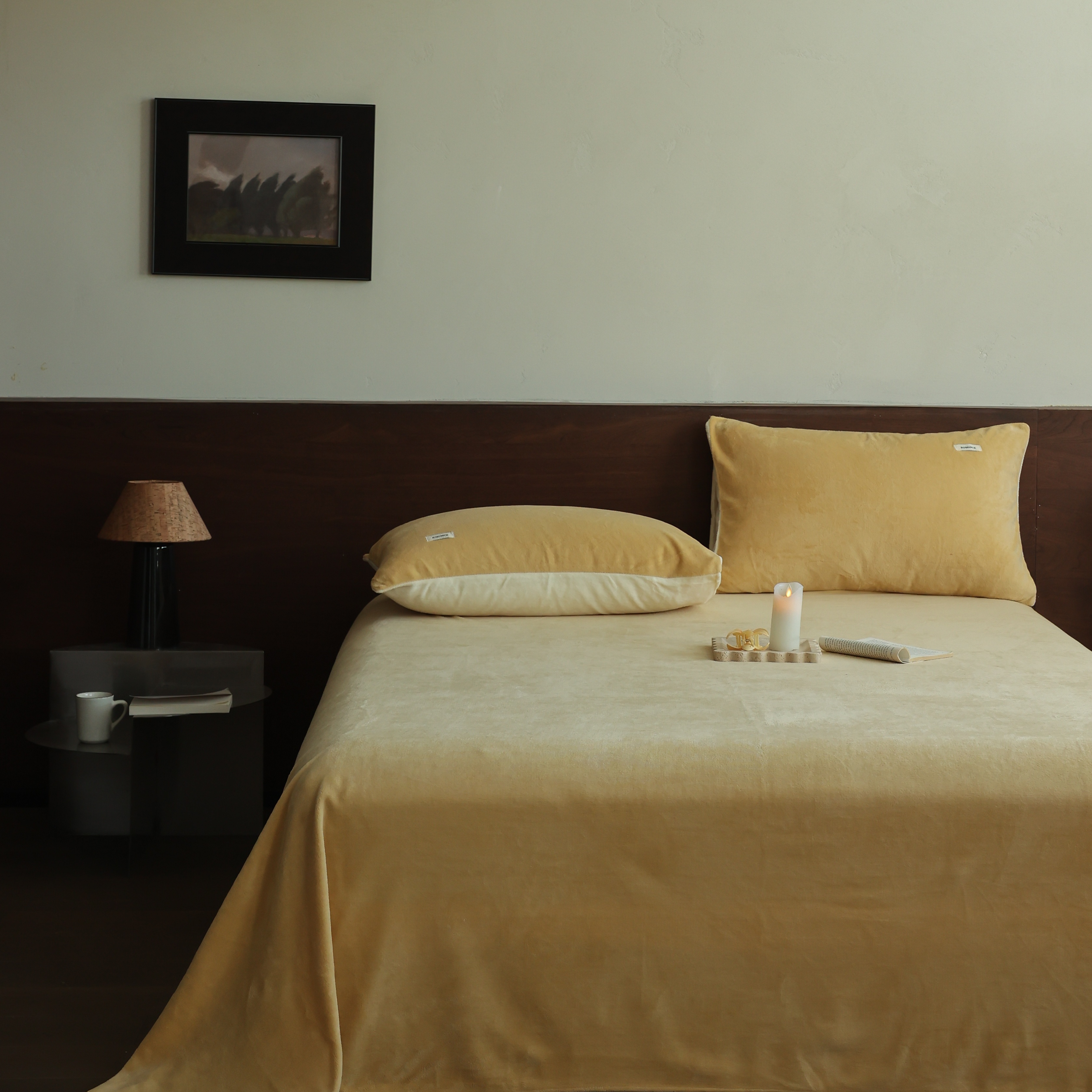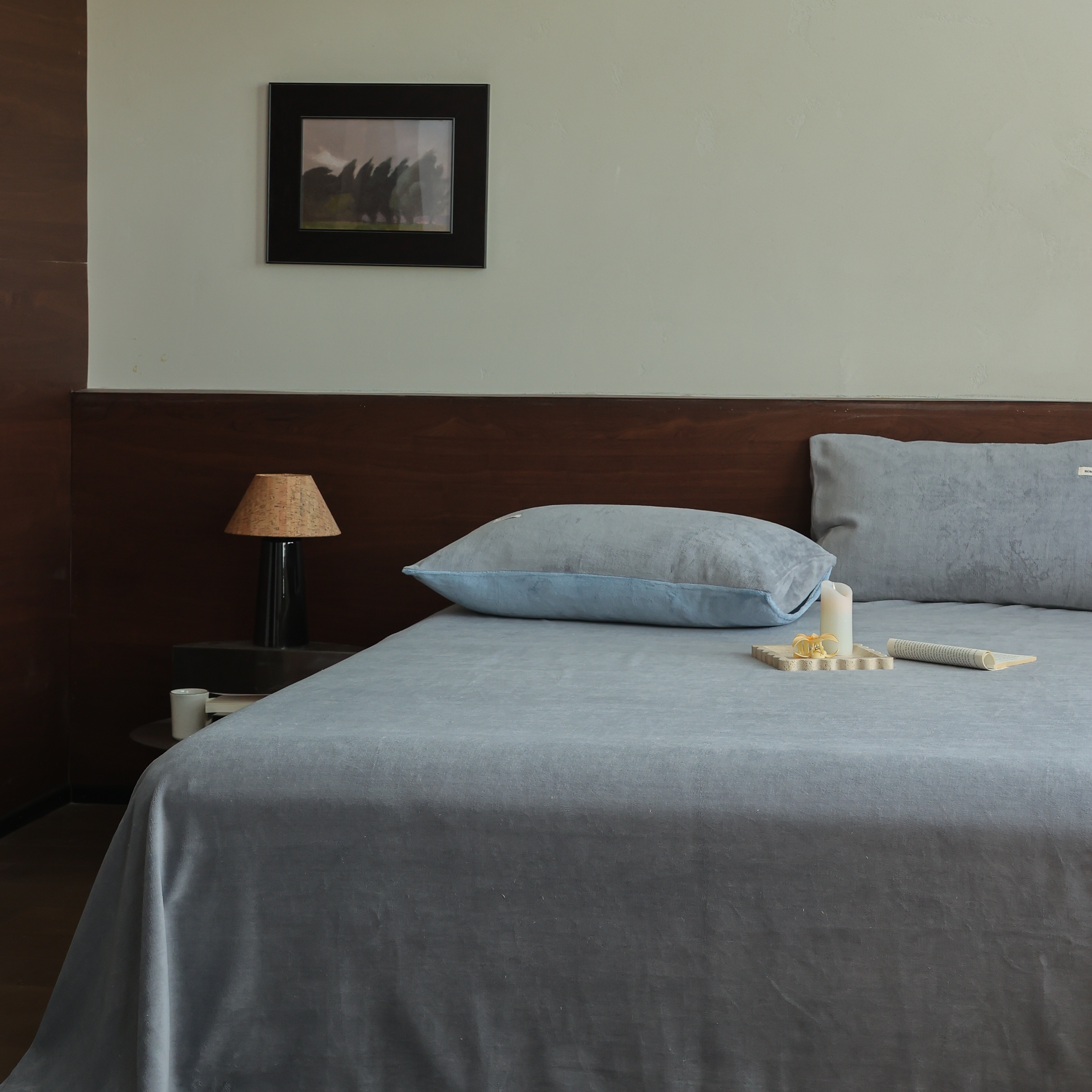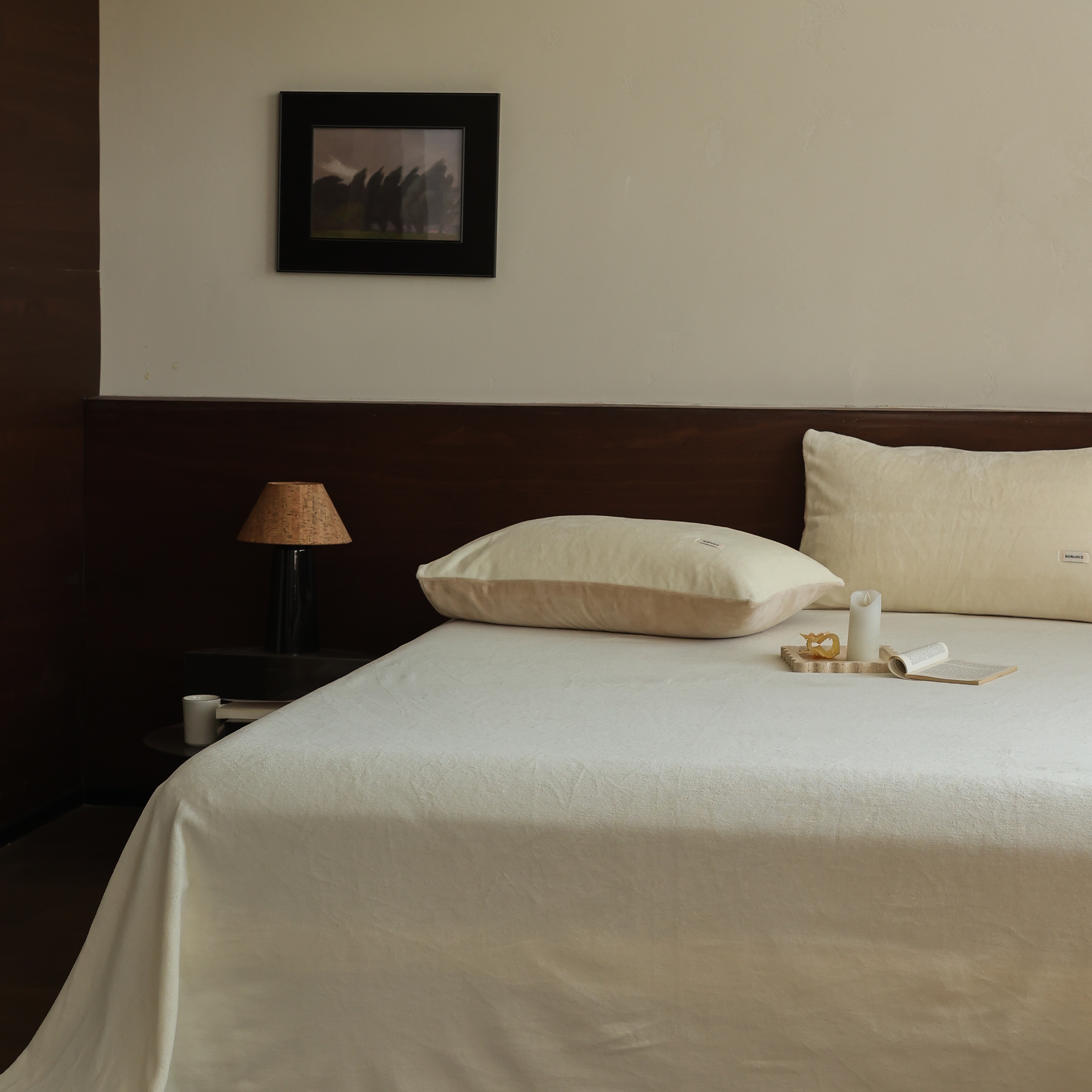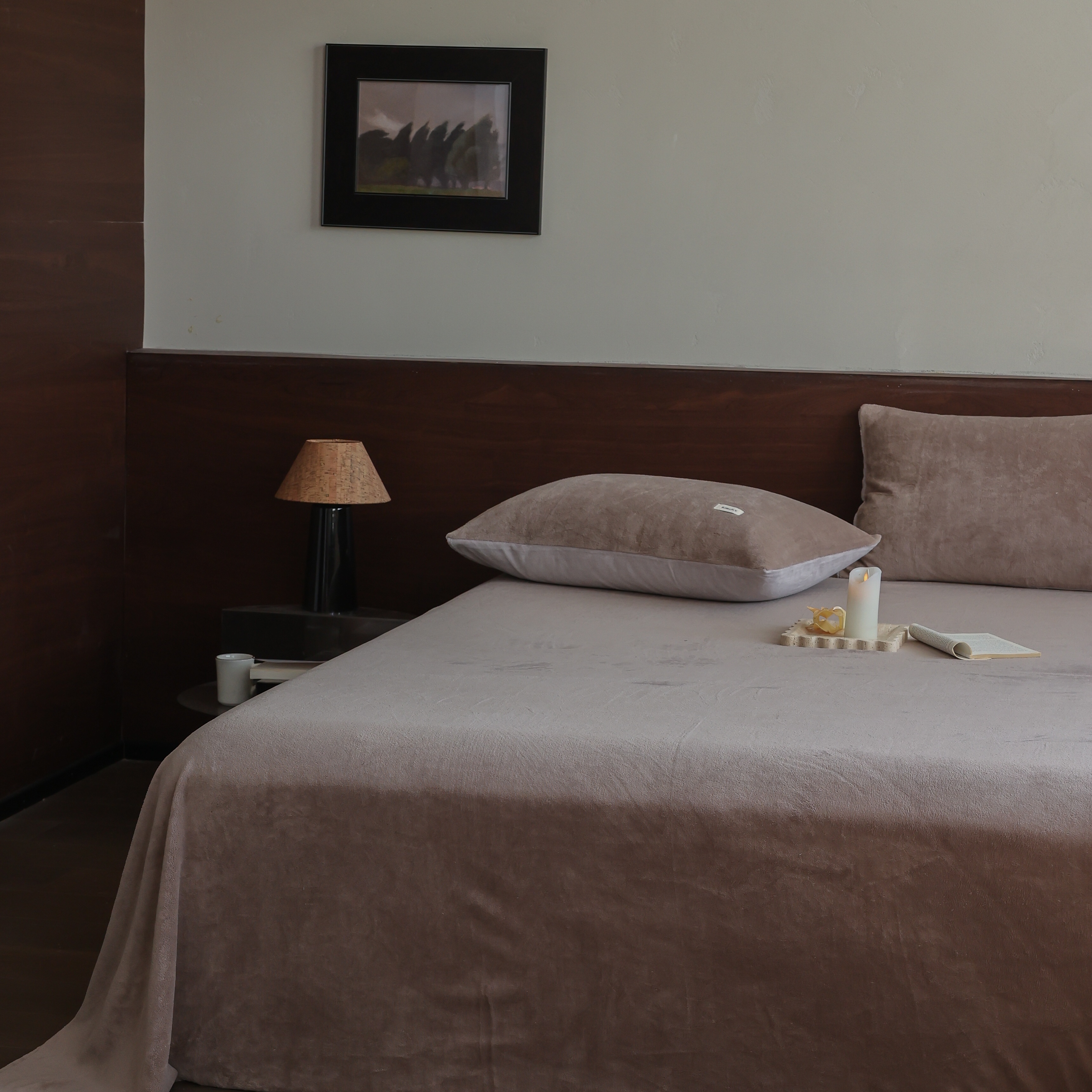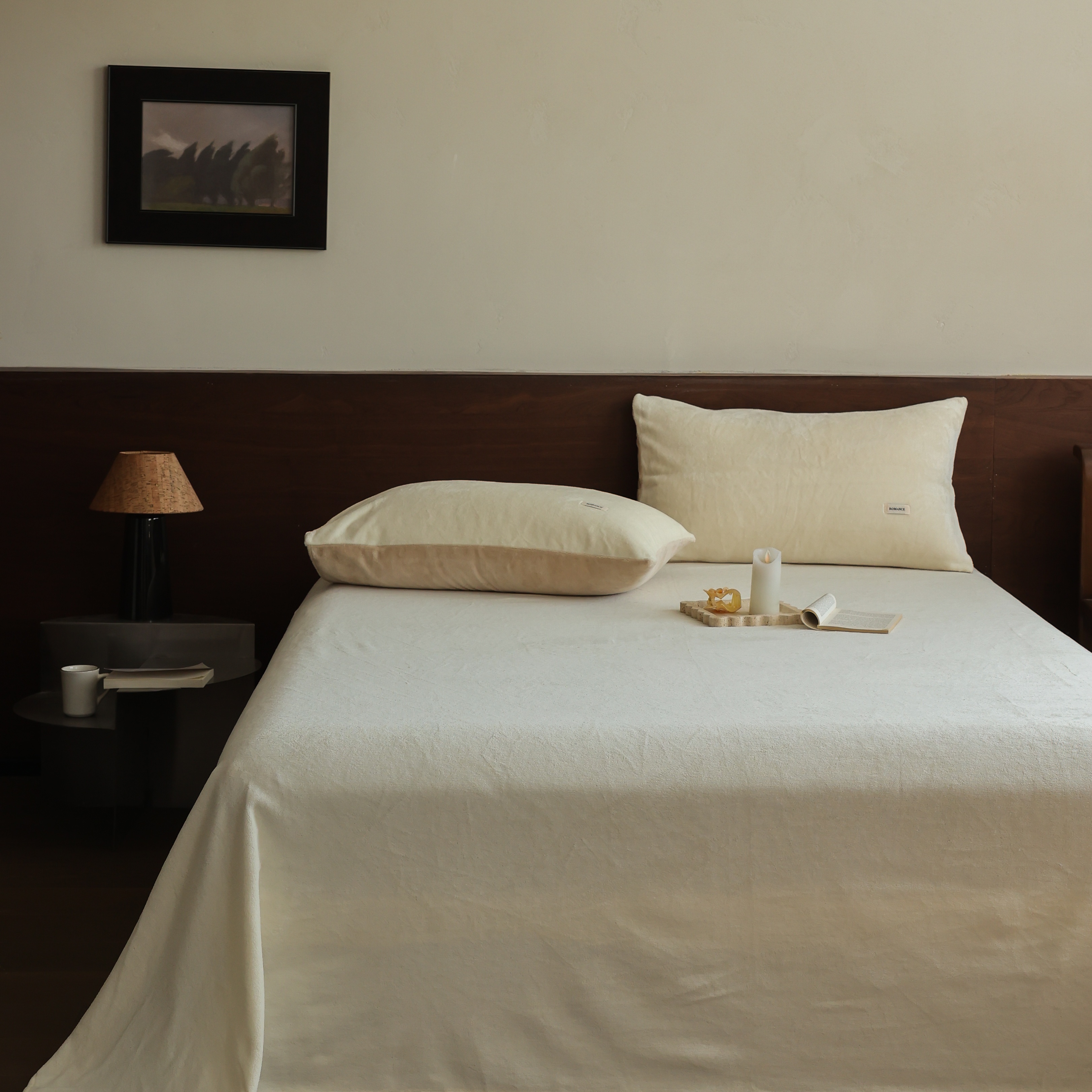 (总)时光里 2025新款230克纯色简约双拼牛奶绒四件套单品床单