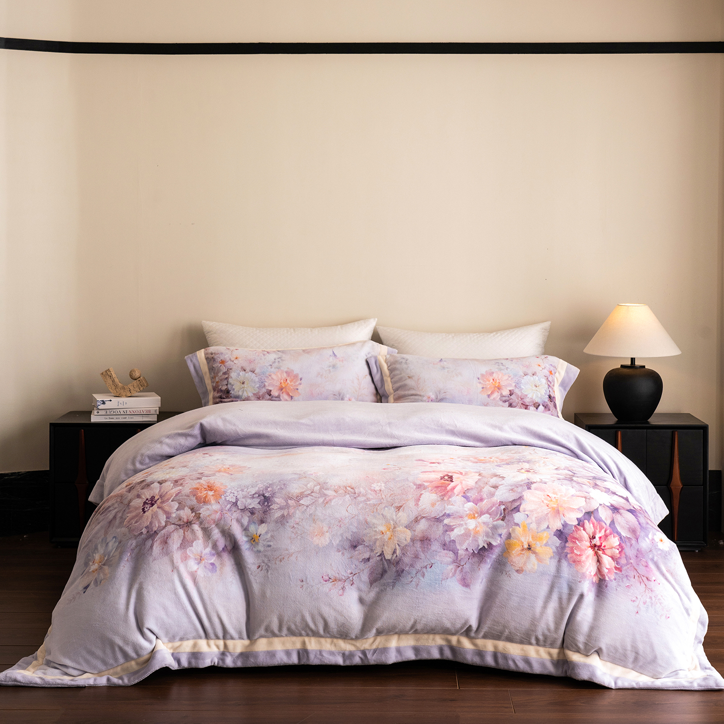 (总)佳汐蓝家纺 2025春夏新款贡缎长绒棉蝶梦花缘四件套,蝶梦花缘·粉,蝶梦花缘·紫