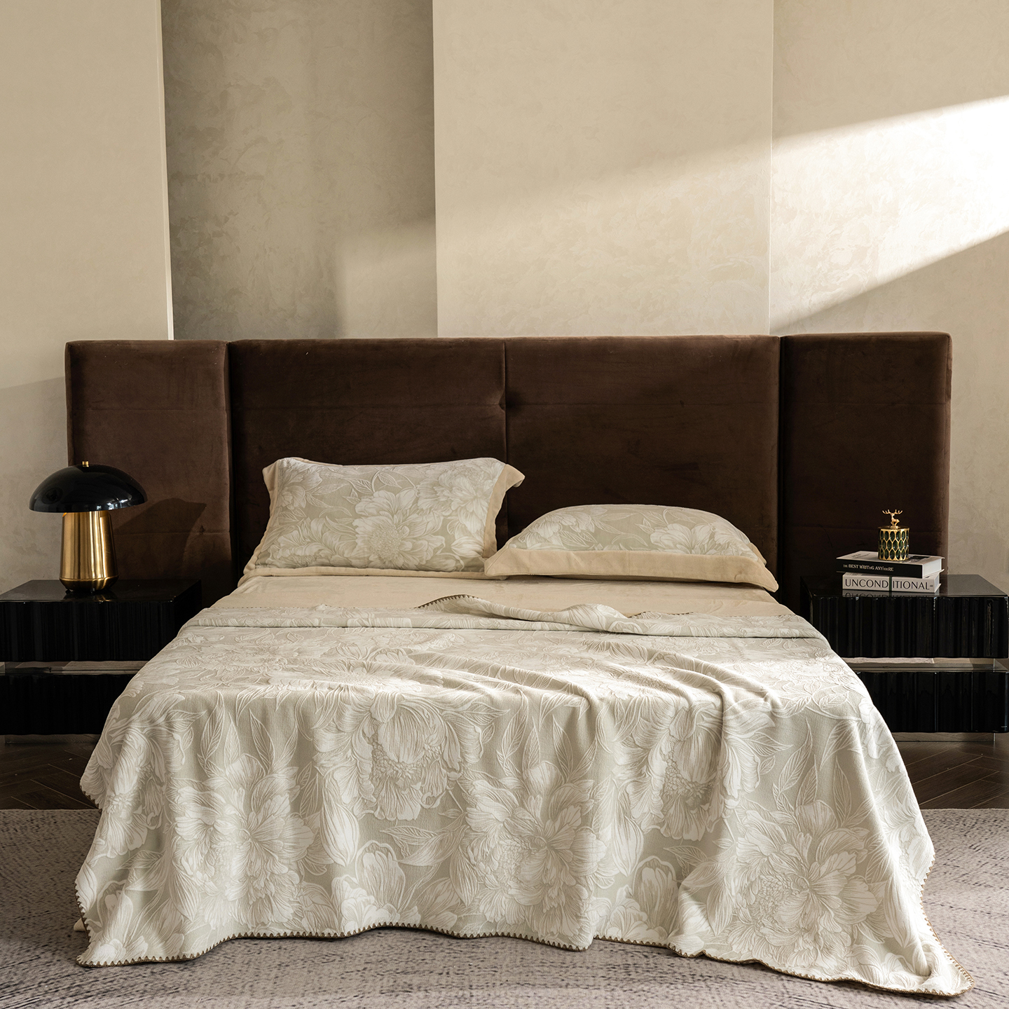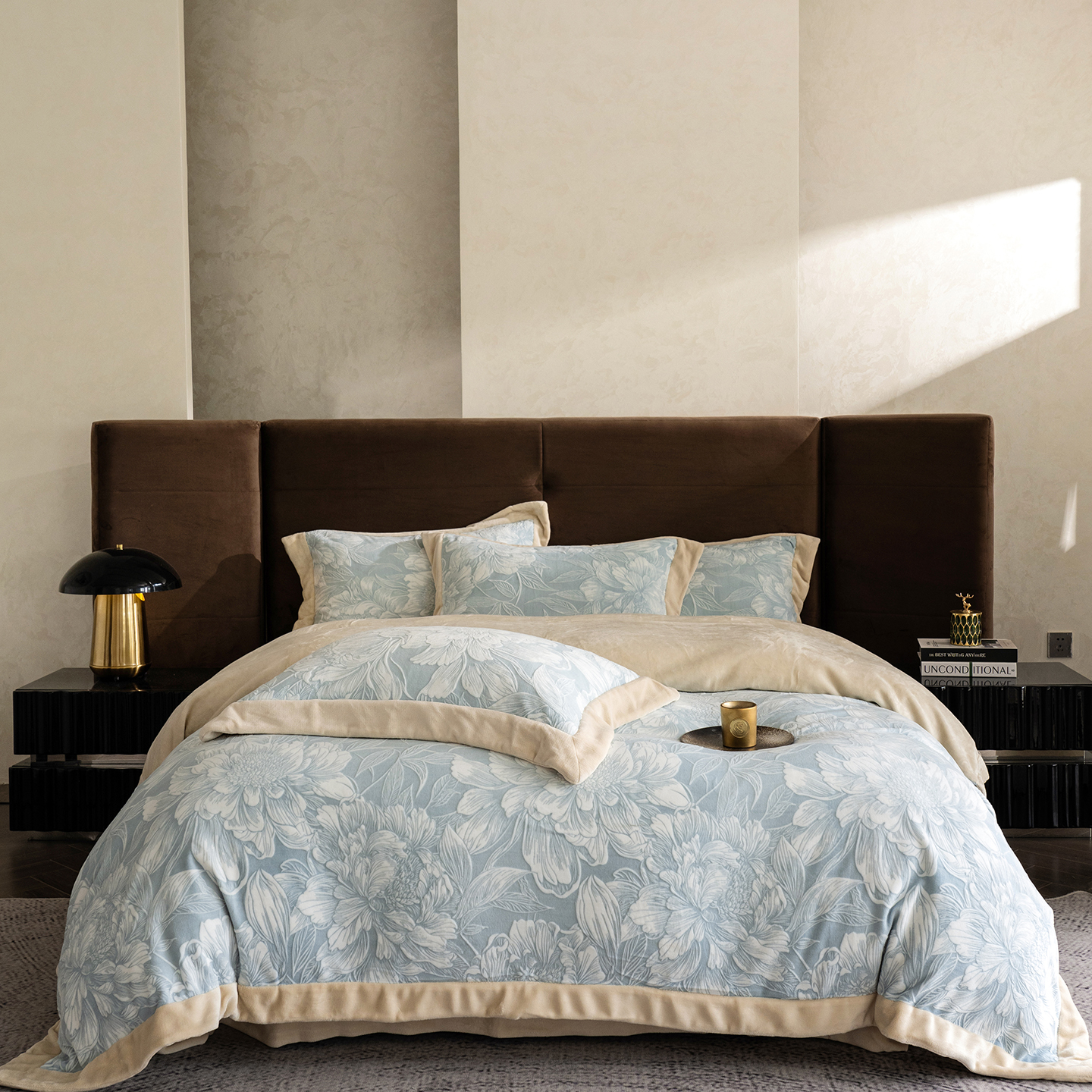 (总)佳汐蓝家纺 2026新款牛奶绒印花流光纱四件套-香奈(券后不低于328元),香奈
