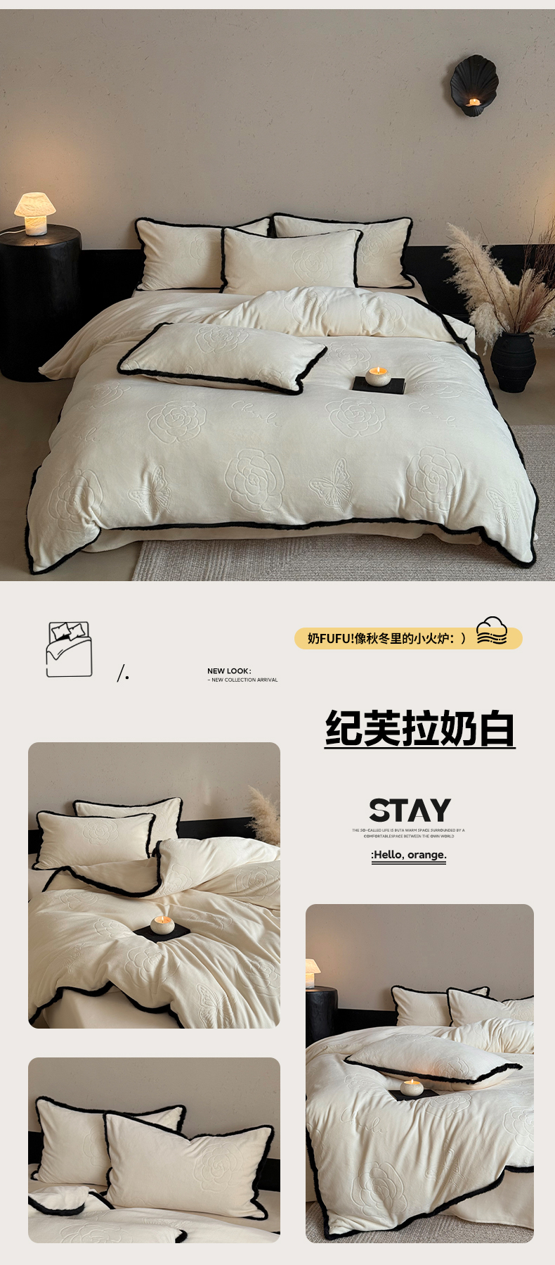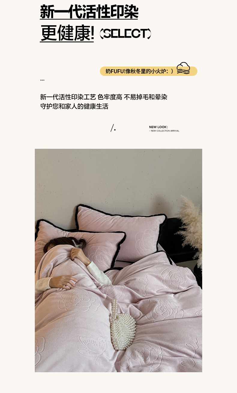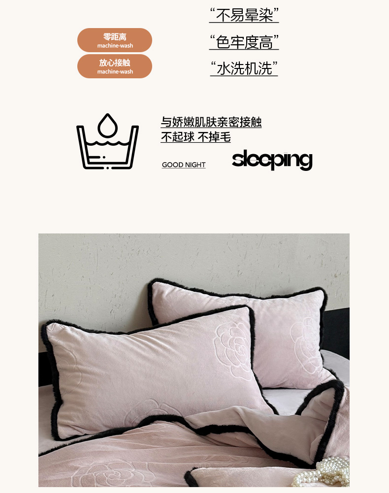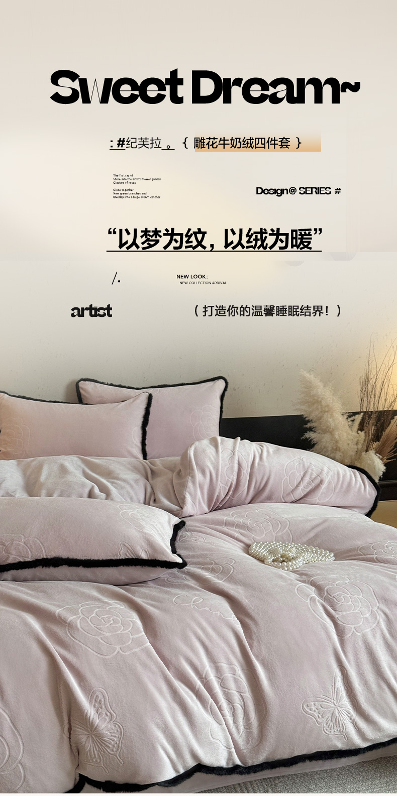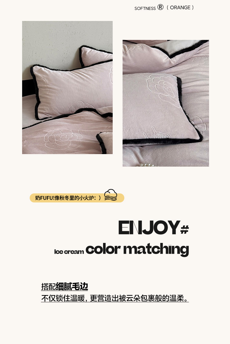 商品名称:三味舒屋 2025新款毛边雕花牛奶绒四件套-纪芙拉 纪芙-拉粉
