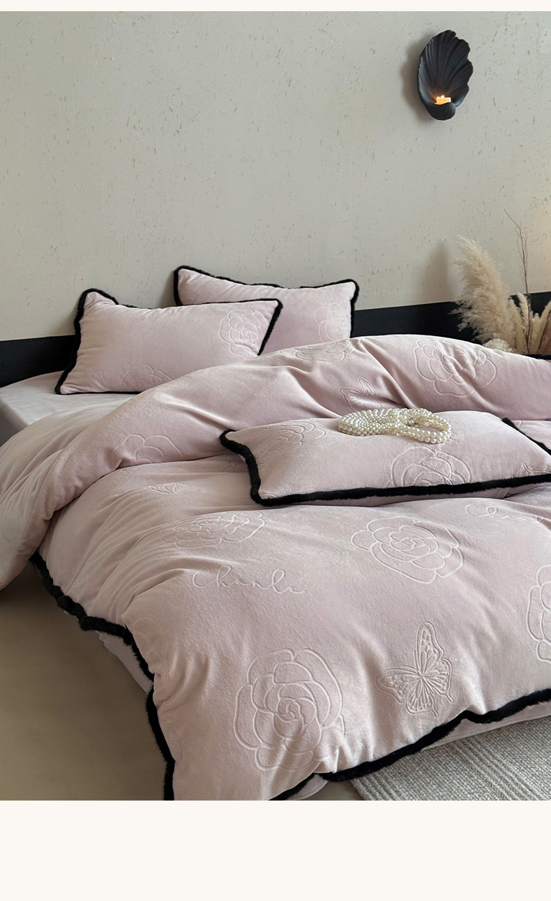 三味舒屋 2025新款毛边雕花牛奶绒四件套-纪芙拉 纪芙-拉粉