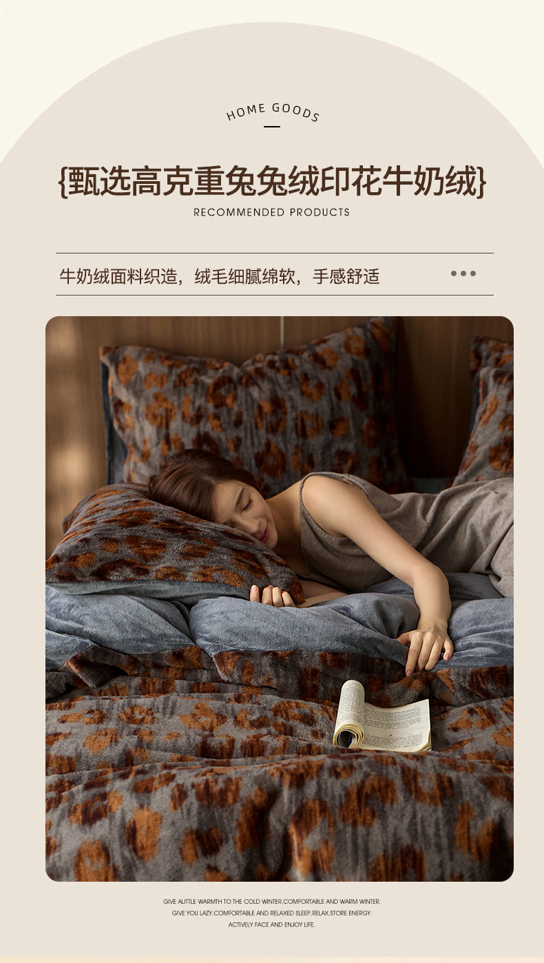 (总)眠博士 2025新款加厚兔兔绒印花牛奶绒床盖四件套