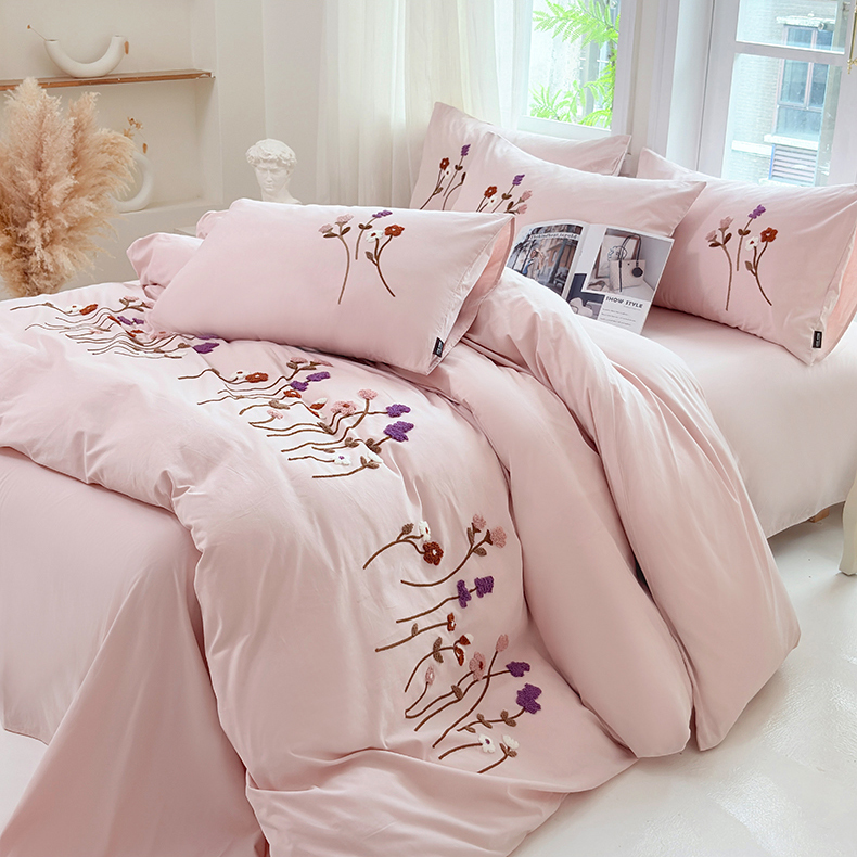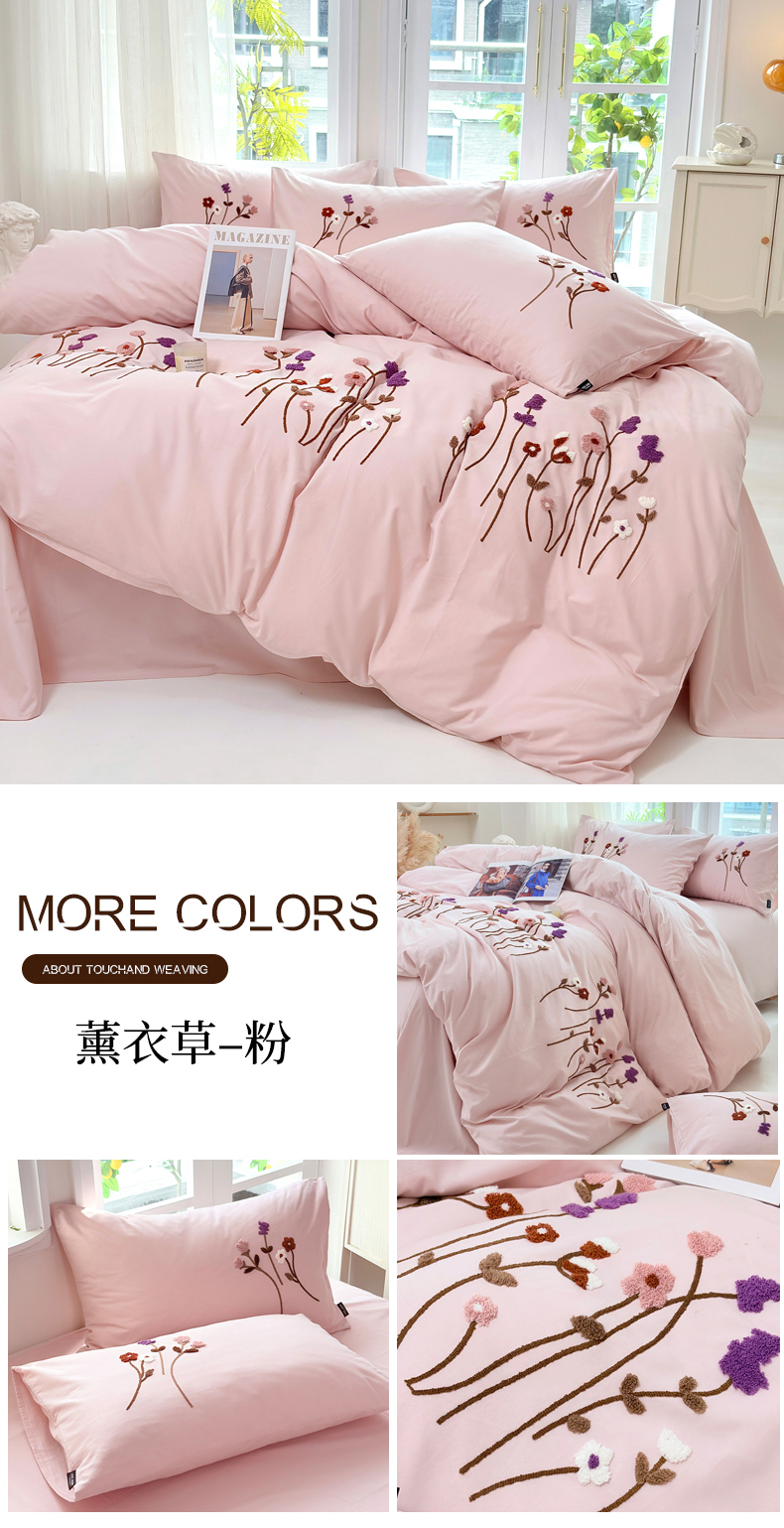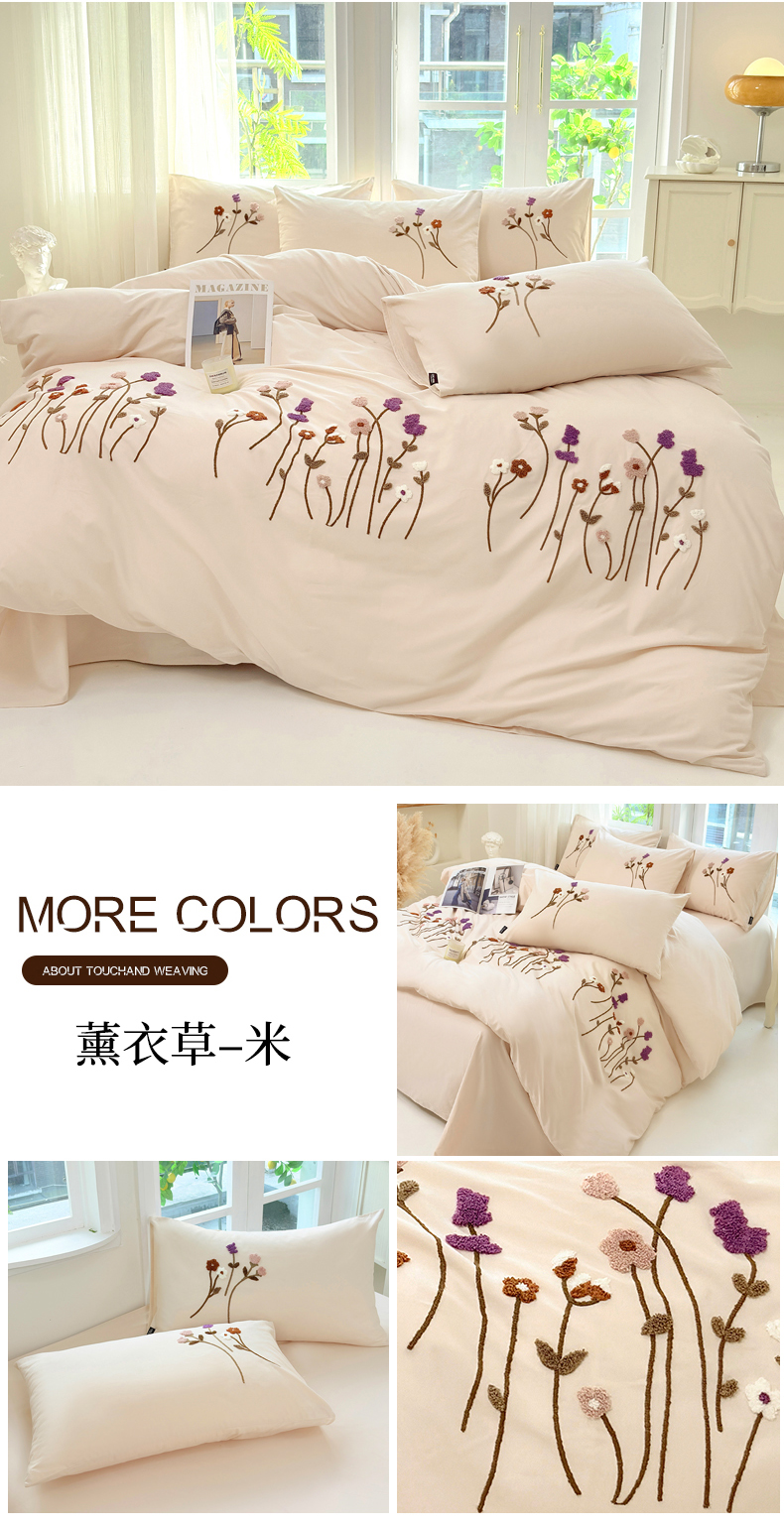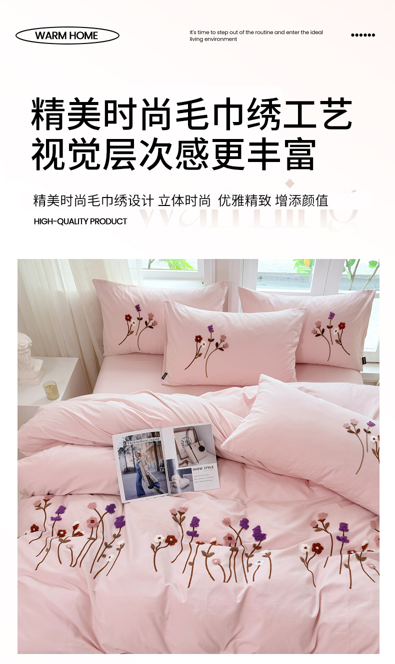 (总)未来家居 2025新款秋冬全棉加厚磨毛纯色毛巾绣花款工艺四件套