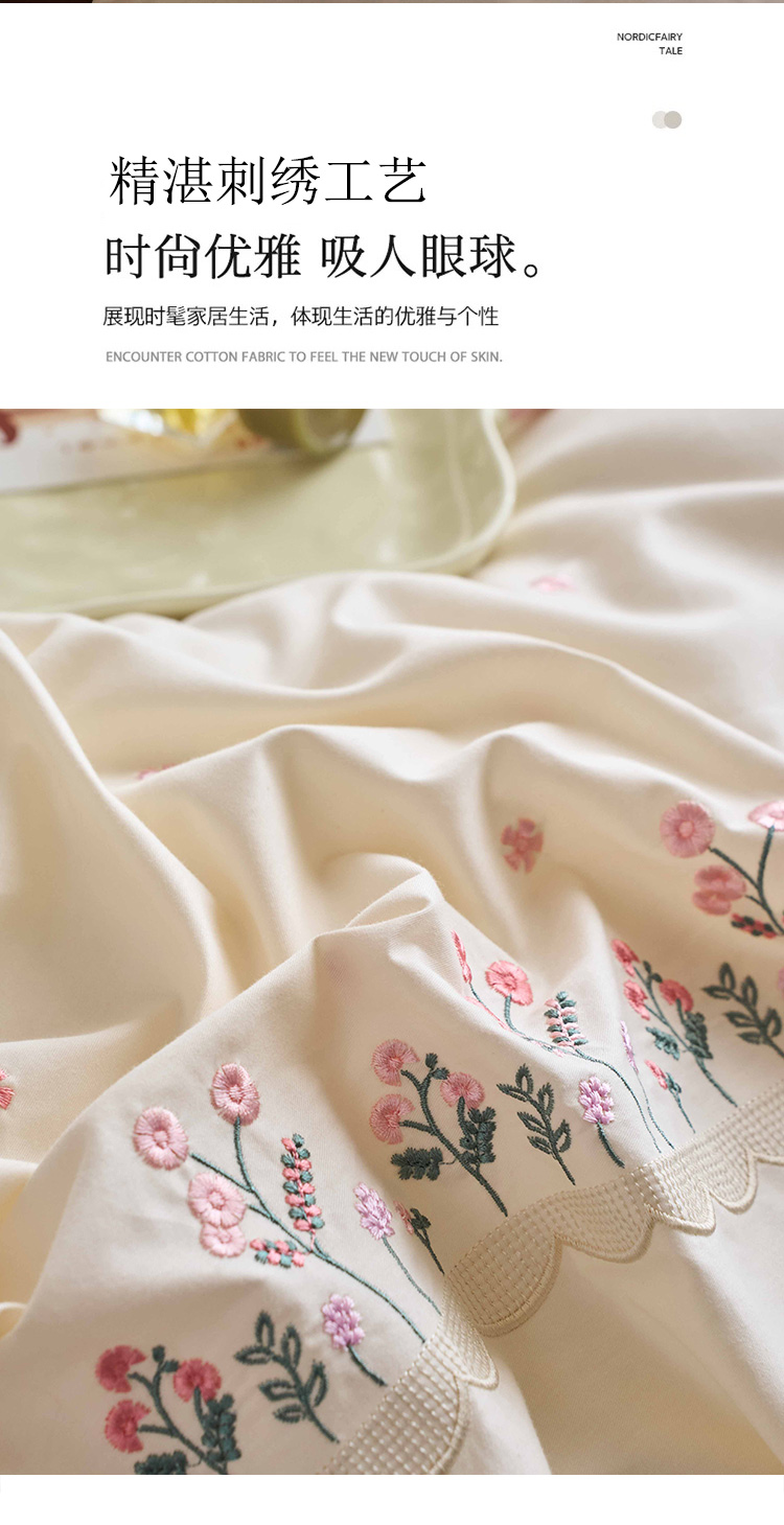 商品名称:悦然毛巾被 2025新款全棉纯棉斜纹毛巾绣四件套 春色满园米白