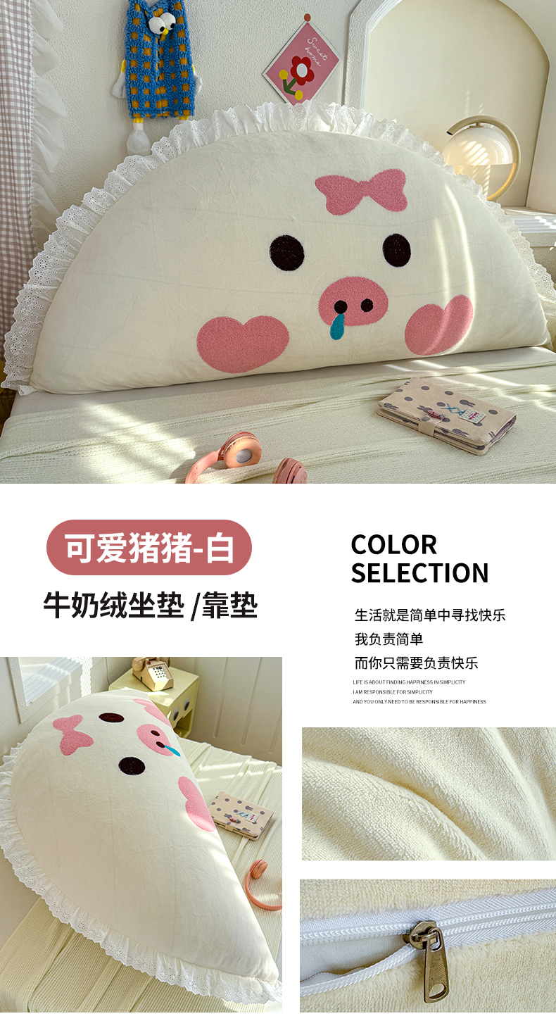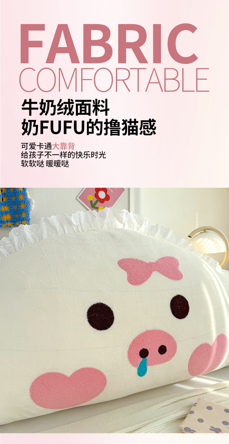 (总)乐坊 2025新款牛奶绒床头大靠背,可爱猪猪-白,可爱猪猪-粉,企鹅,甜萌仔-咖,甜萌仔-米白,晚安狗