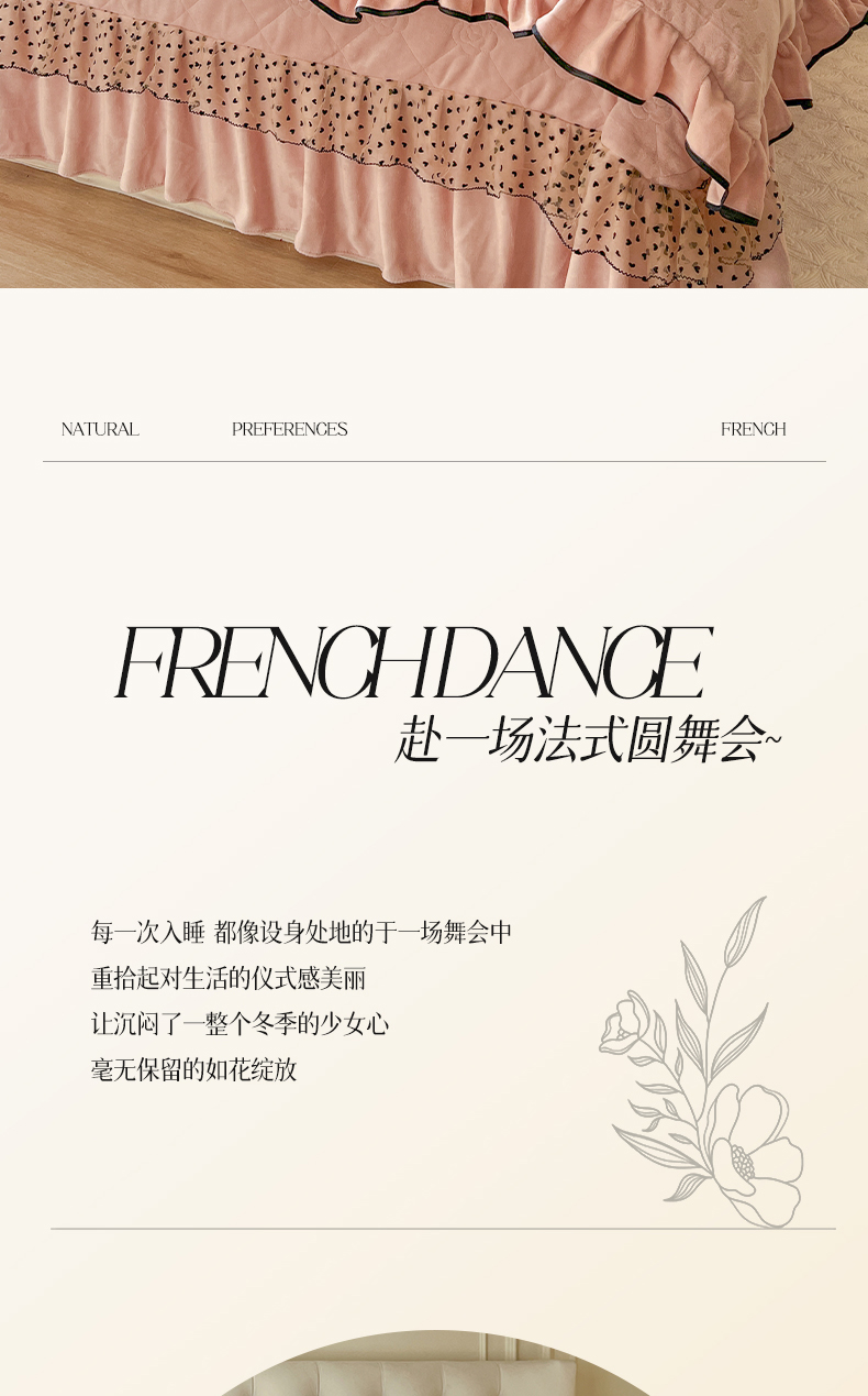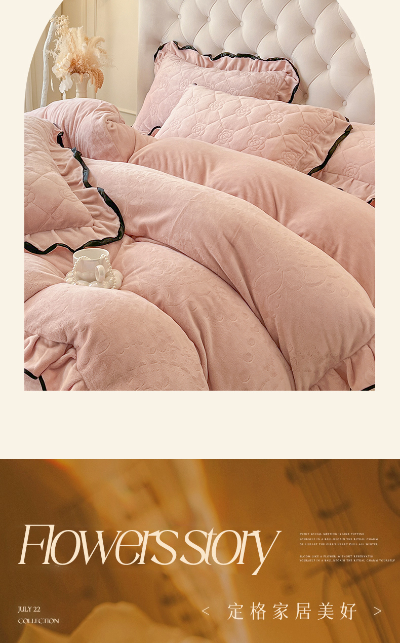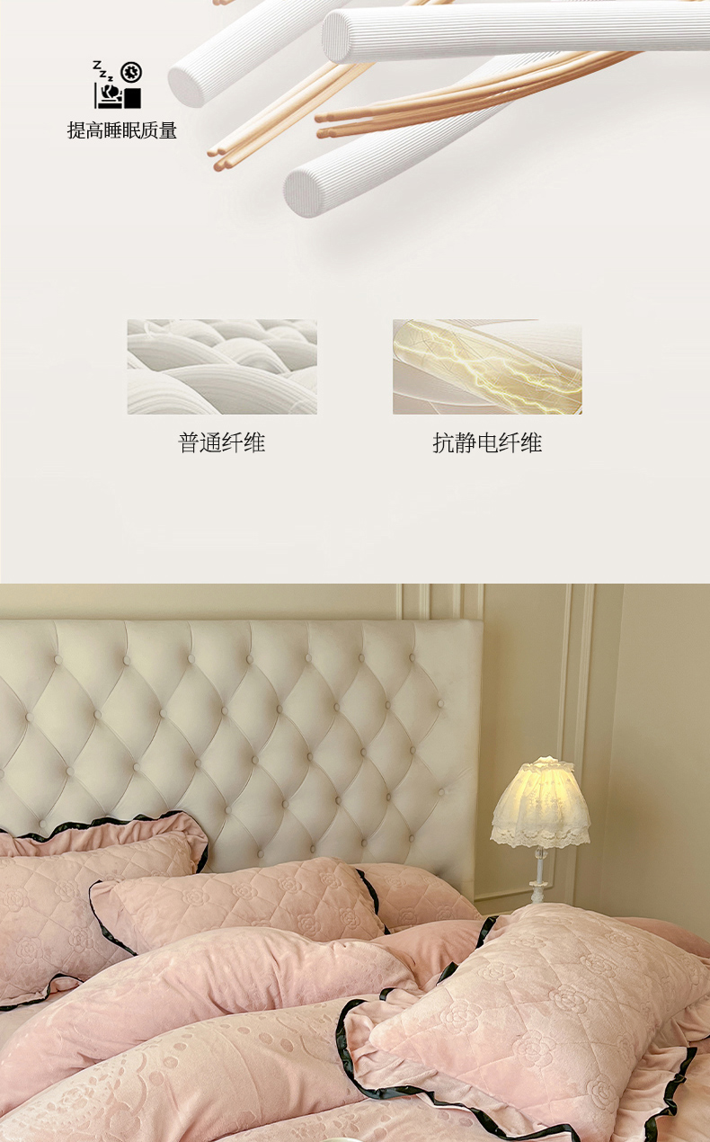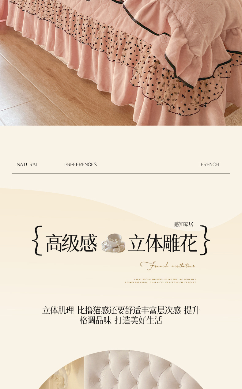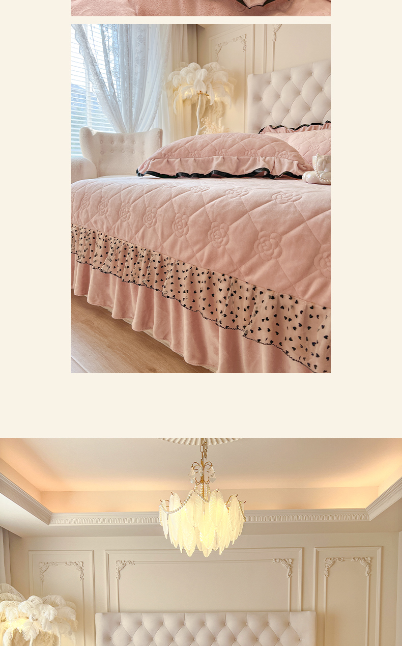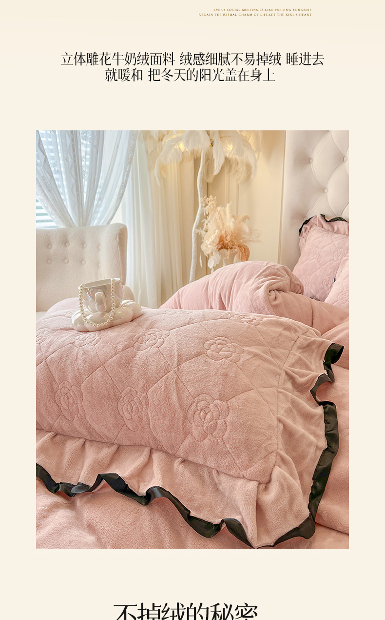 商品名称:瑞宝 2025新款雕花牛奶绒花边夹棉床盖四件套-莫妮卡 少女粉