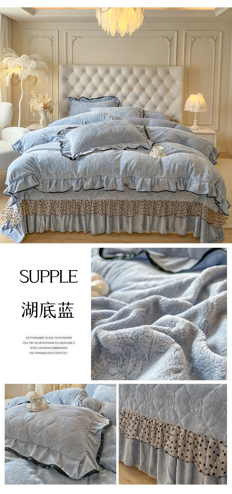 (总)瑞宝 2025新款雕花牛奶绒夹棉床裙三件套-花有约,花有约-粉玉,花有约-青柠绿,花有约-奶油白,花有约-蔚蓝,花有约-卡其,花有约-梦幻紫