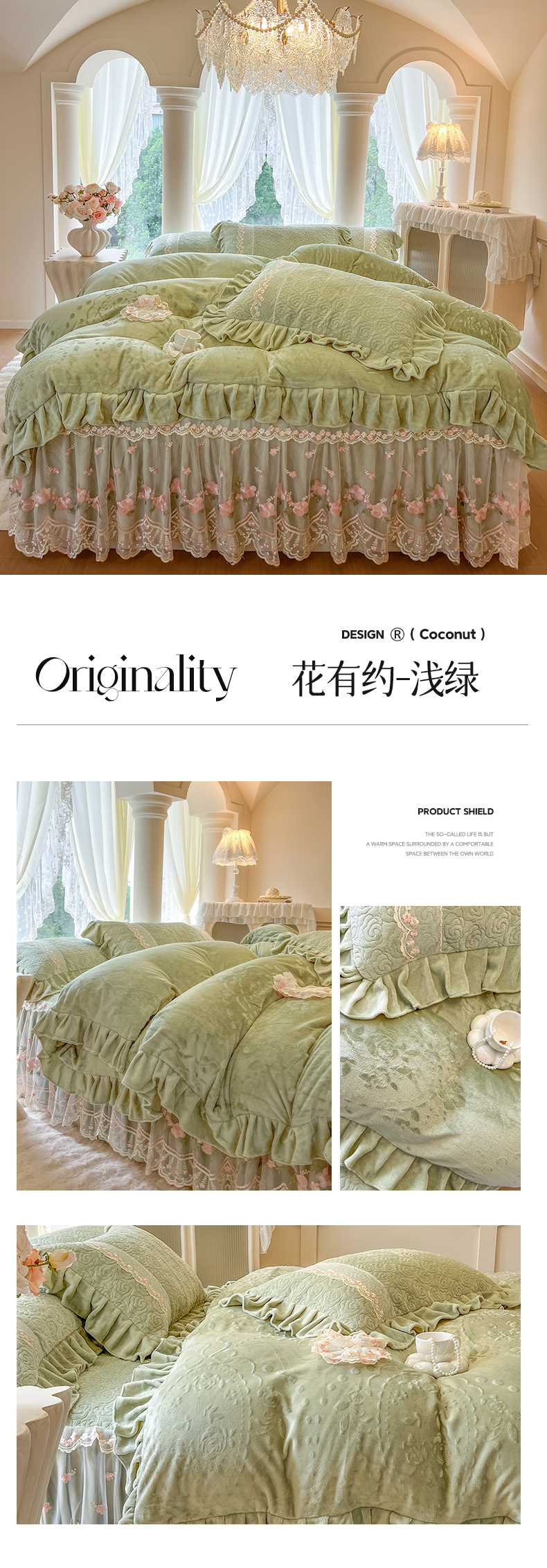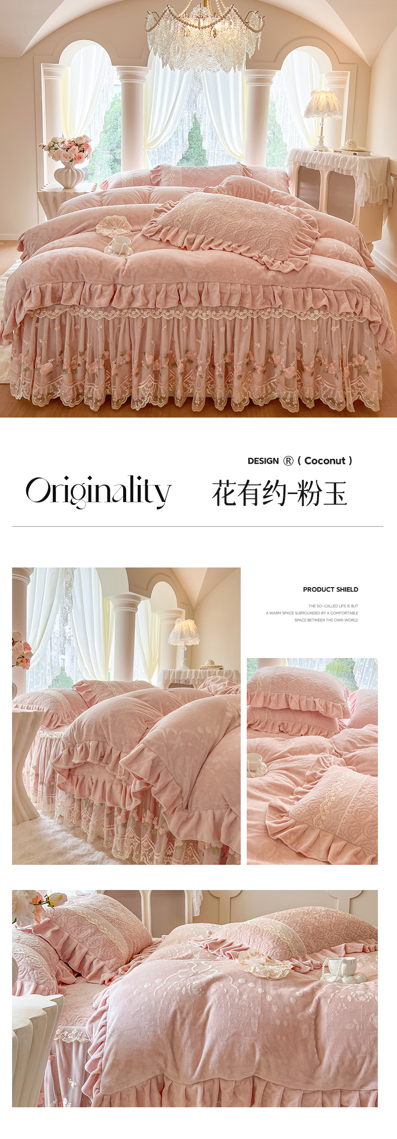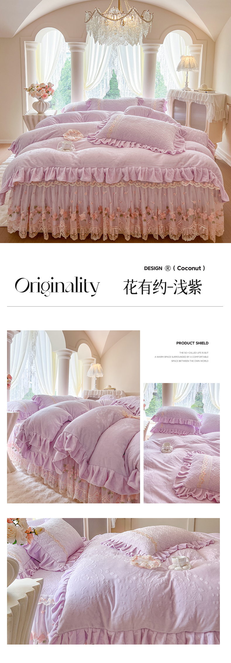 当前位置: 91家纺网 > 商品网购 > 床品套件 > 四件套 > 牛奶绒四件套 > 瑞宝 2025新款雕花牛奶绒夹棉床裙四件套-花有约 花有约-蔚蓝