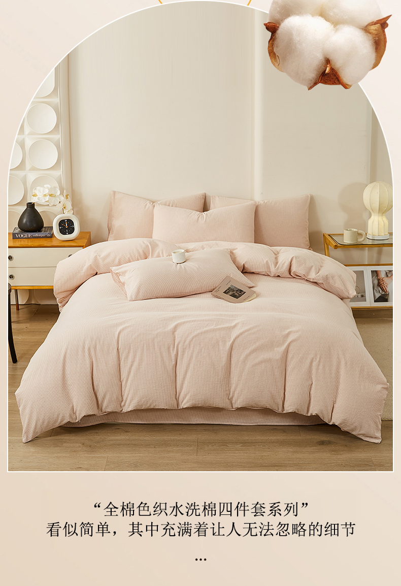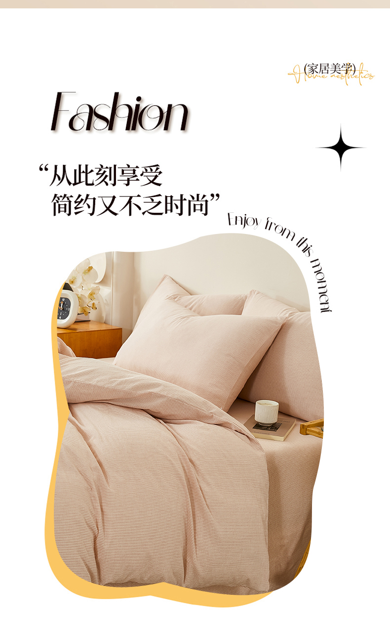 当前位置: 91家纺网 > 商品网购 > 床品套件 > 四件套 > 全棉普通四件套 > 润肤居 2025新款全棉色织水洗棉系列四件套 细条纹-豆沙