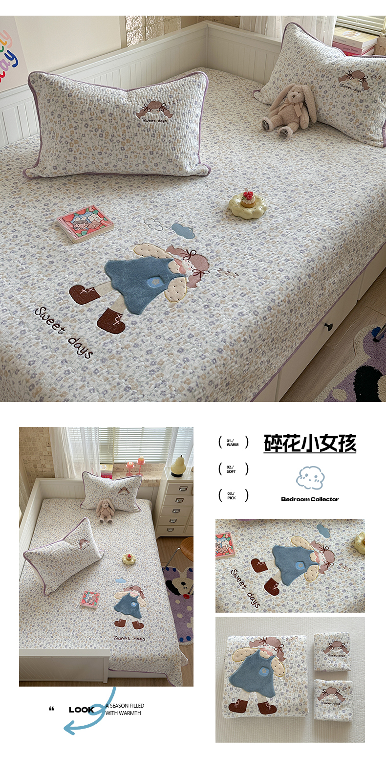 当前位置: 91家纺网 > 商品网购 > 床品套件 > 三件套 > 暖生活 2025新款A类230克加厚牛奶绒贴布绣床盖三件套 碎花小兔子