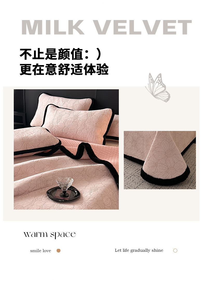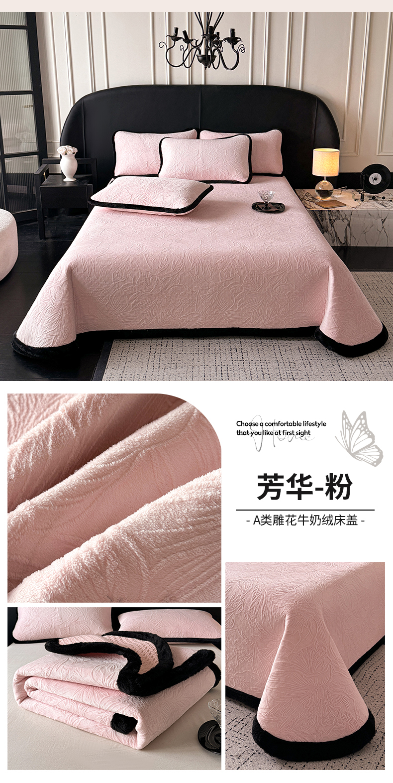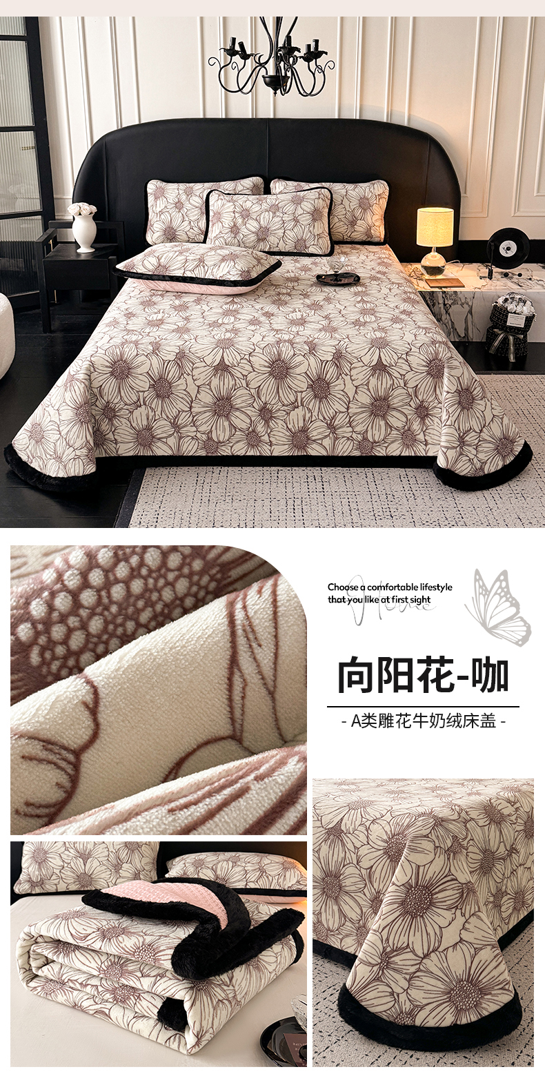 (总)卡罗兰 2025新款加绒加厚牛奶绒床盖,向阳花-粉,向阳花-蓝,向阳花-绿,滕蔓-蓝,滕蔓-咖,滕蔓-粉,滕蔓-灰,灵蝶-粉
