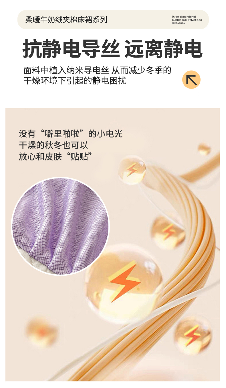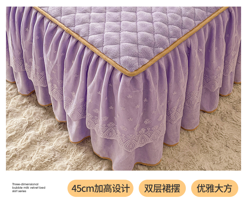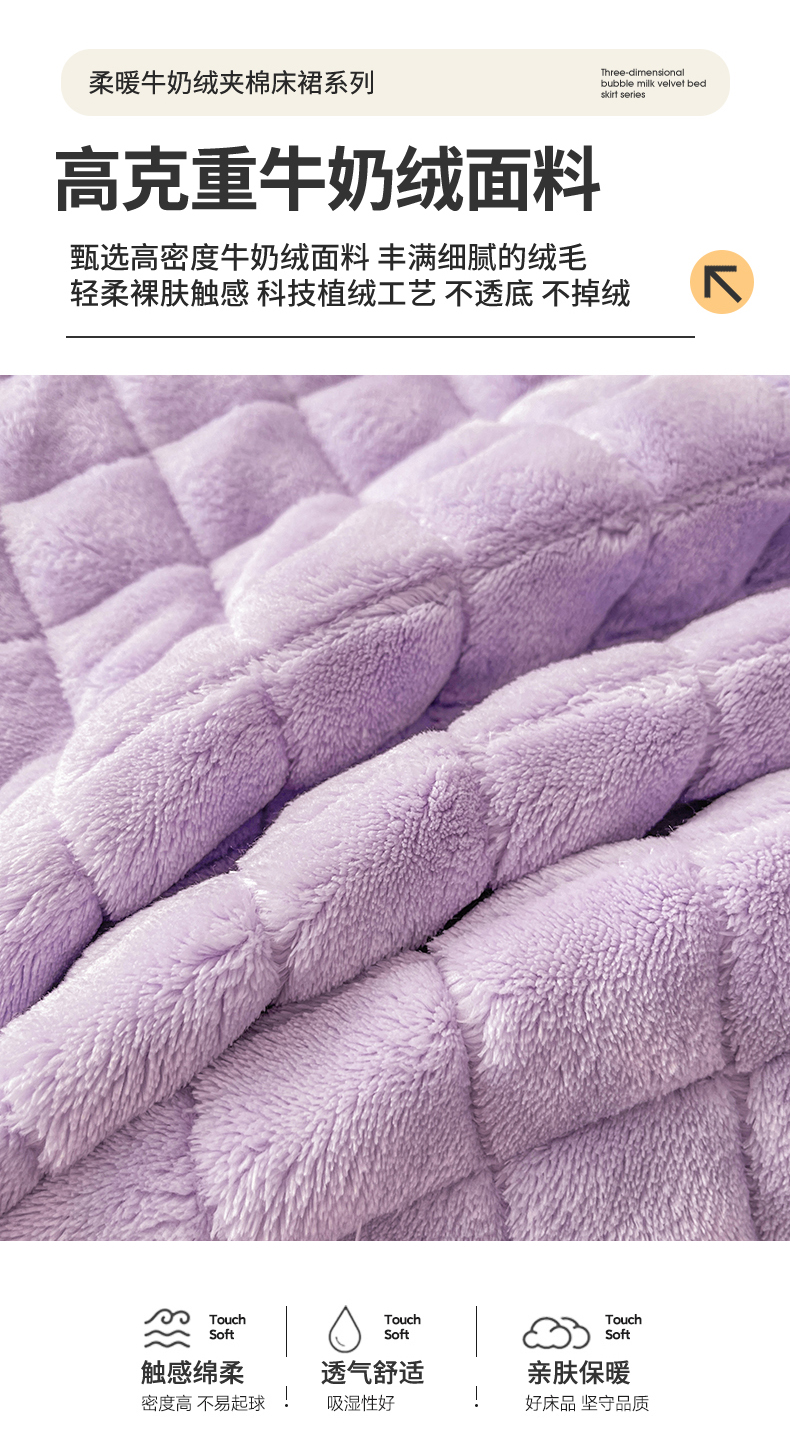 商品名称:情恒家纺 2025新款立体泡泡牛奶绒夹棉床裙三件套系列-浅语光年 浅语光年-梦紫