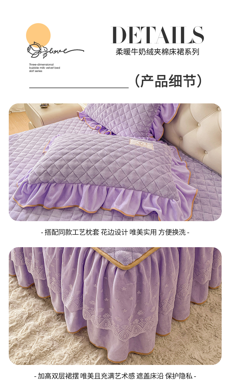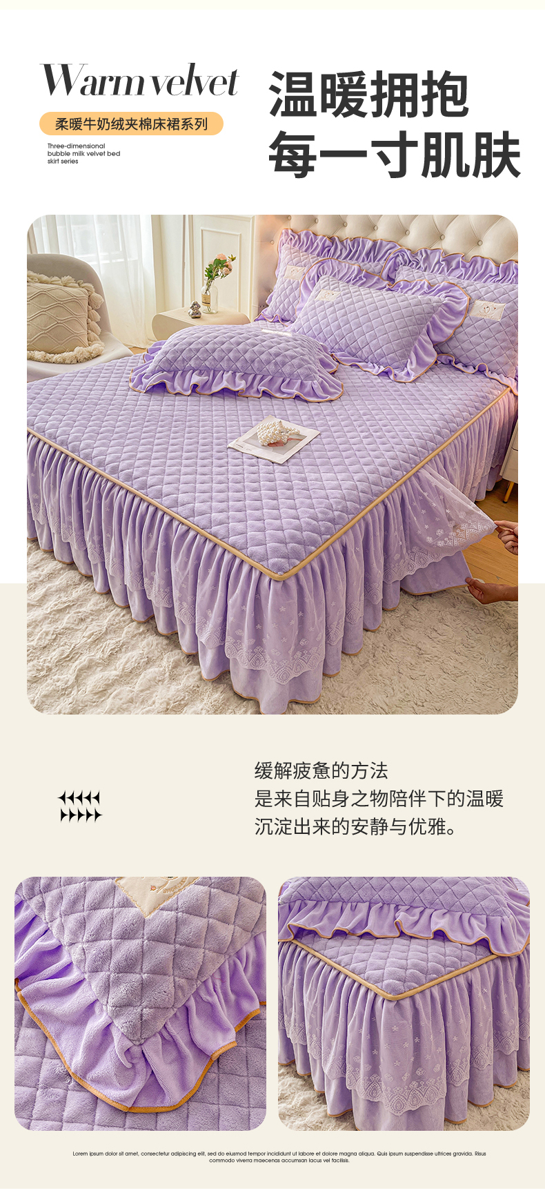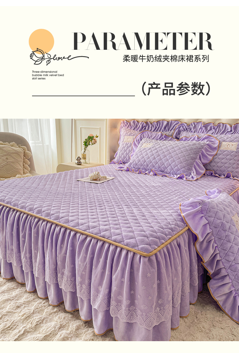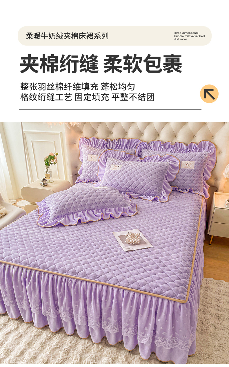 情恒家纺 2025新款立体泡泡牛奶绒夹棉床裙三件套系列-浅语光年 浅语光年-梦紫