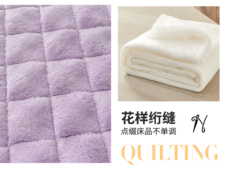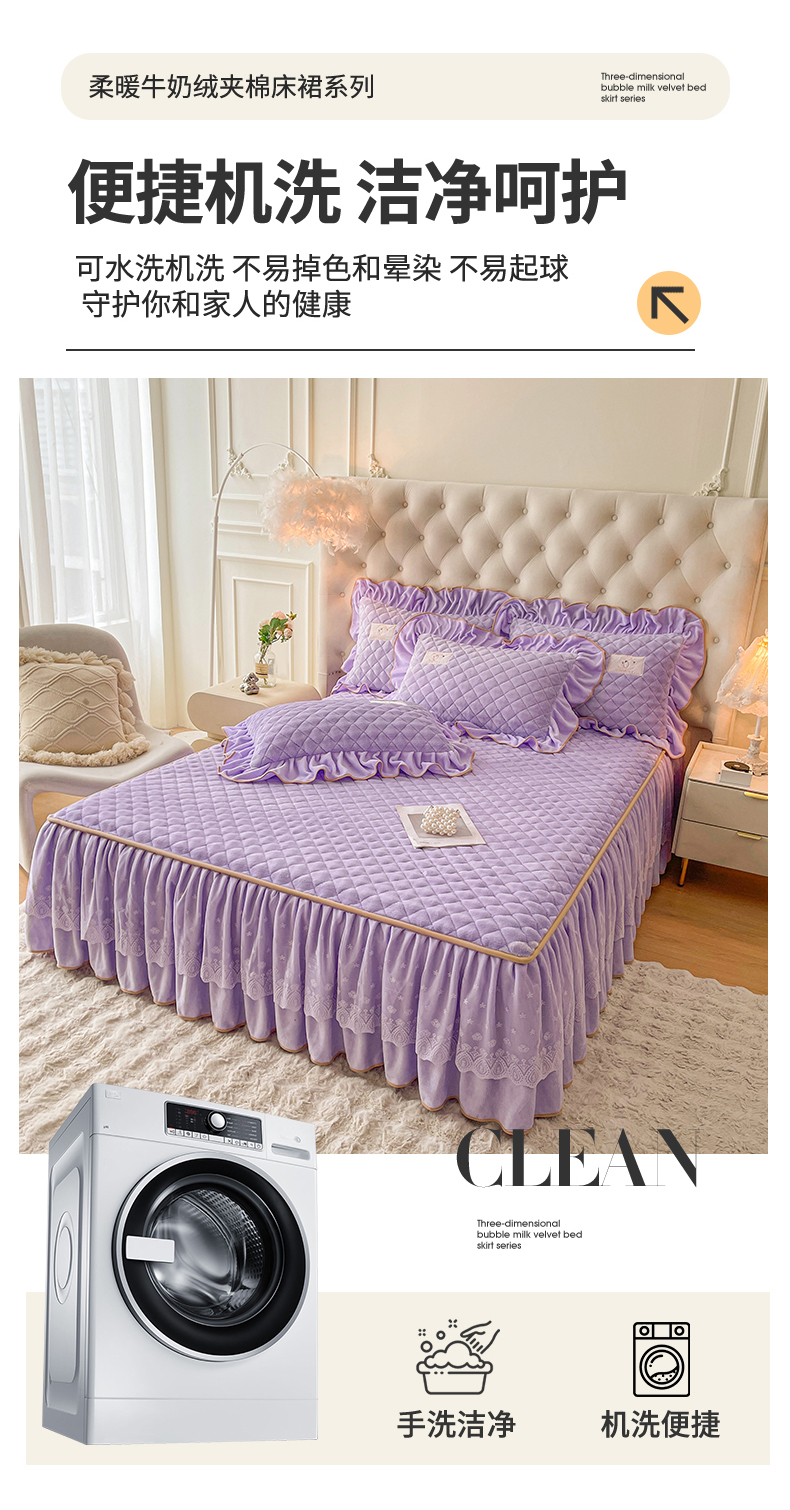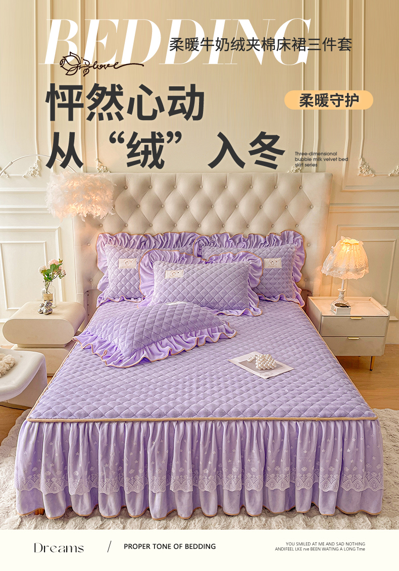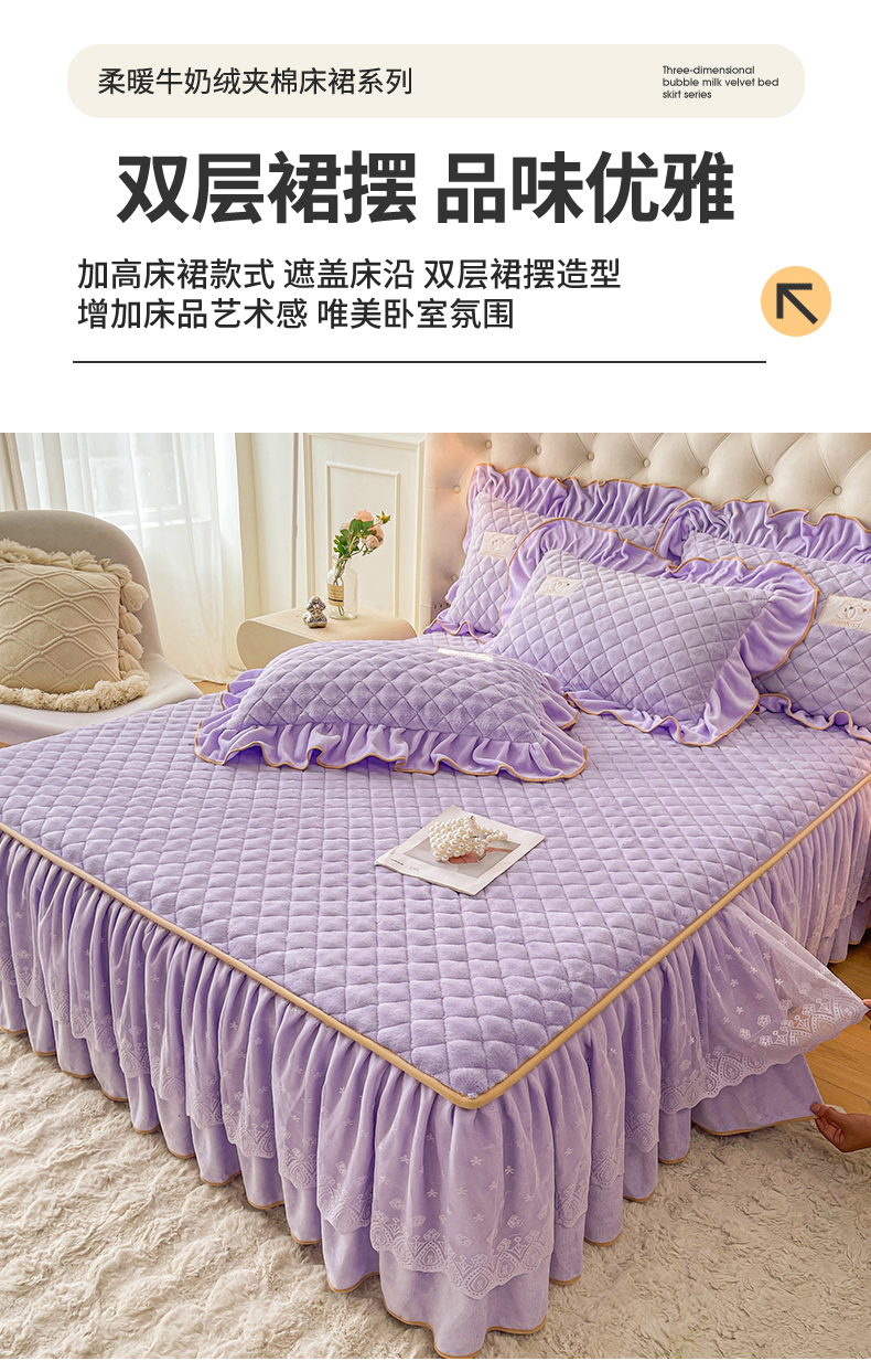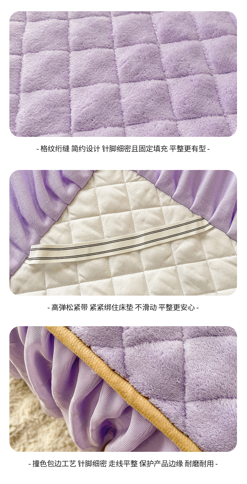 情恒家纺 2025新款立体泡泡牛奶绒夹棉床裙三件套系列-浅语光年 浅语光年-梦紫