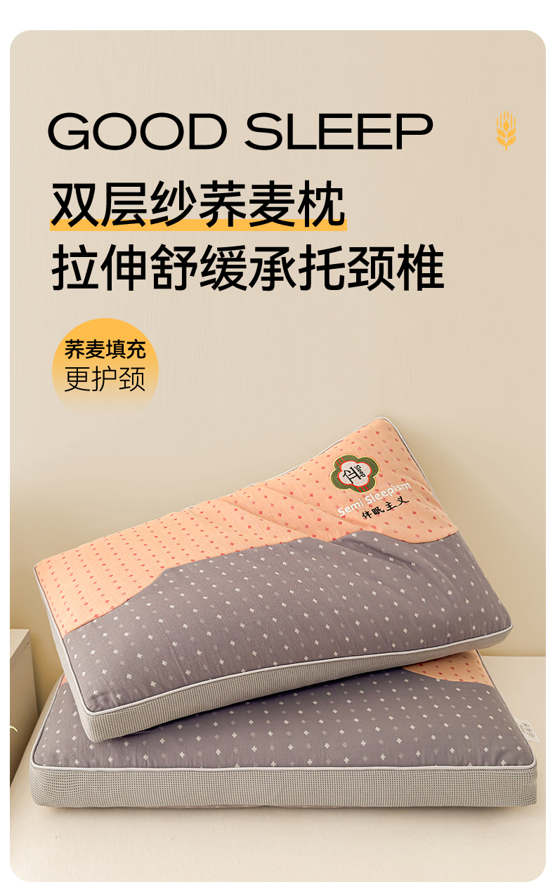 当前位置: 91家纺网 > 商品网购 > 枕头/枕芯/保健枕/颈椎枕 > 枕头枕芯 > 麦肯锡 2025新款伴眠主义双层纱纯荞麦枕 枕头枕芯 组合图仅供展示不可下单
